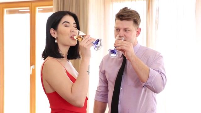 Looking fine in a dress that's meant to impress, Lady D puts the finishing touches on her makeup and then struts into the living room knowing she's looking fine. When her date, Michael Fly, arrives, he pours them each a glass of bubbly. Imagine...