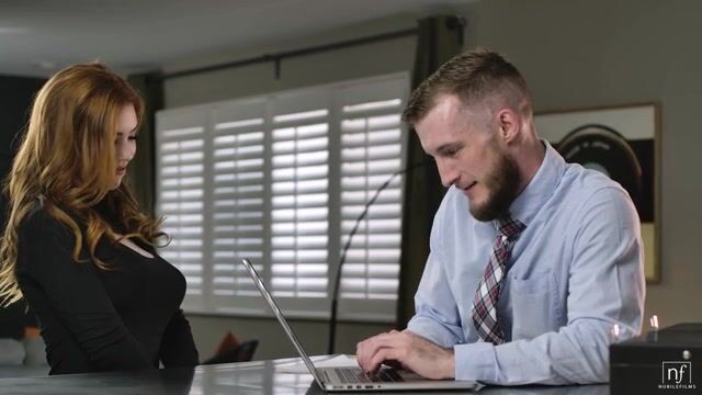 Busty beauty Nala Brooks is in search of her first big girl job out of school and she's ready to do whatever it takes to work her way up the corporate ladder. Nala knows she's a total flirt at the best of times, and she doesn't see any reason to scale that back when she interviews for an assistant position with Brick Danger. When Brick asks why he should hire Nala, she puts out there that she is willing to do anything for her job. Brick tries to keep it professional, but Nala isn't having it. She turns the charm up to an 11 and leaves all subtlety behind.Nala gets the job, but despite her best efforts she doesn't get into the sack with Brick. She gets more aggressive, outright shoving her big tits into Brick's back as she leans into him. When Nala is finally fed up with Brick's ignoring her, she waits until his back is turned and pops one of her titties out of her peekaboo collar. She acts surprised when Brick notices, but then immediately begins massaging her boss's shoulders.Brick tries to stand strong by telling Nala no. He gets to his feet with the intention of leaving, but that just makes it easy for Nala to trap him against the counter. Just as Brick is finally capitulating, his boss gives him a call. Brick knows he has to take it, so he picks up the phone as Nala takes the opportunity to unbuckle Brick's pants and start sucking him off. He does his best to keep his cool as he discusses Nala's performance with his boss while she's jacking him off with her hands and mouth, but once he's off the phone he is way too far gone to tell her to stop.In response to Brick's quip that Nala should have put on her resume that she gives a great blowjob, Nala tells him she wants to show him what else she can do. The busty redhead leads her boss to the couch, where she peels Brick and herself out of their clothes and then resumes sucking him off. She leans in to deliver a titty fuck between those large boobies, then climbs into Brick's lap so she can slide down and start riding him with low mewls of delight.Turning around, Nala plants her feet on the ground so that she can ride her boss's fuck stick with total abandon. Brick's hands are everywhere, exploring all those curves that have been taunting him since the first time they met. With Brick holding her in place to help maintain her balance, Nala can reach down to rub her clit as she works towards a big climax.Falling to her side, Nala lets Brick take the lead for a spooning style fuck. Then Nala gets on her knees so she can enjoy Brick's big dick properly in doggy. He gives in to her begging and pistons in and out of that greedy puss, filing her up again and again as he hits all the right spots to make Nala moan.Nala winds up on her back with her busty jugs jiggling as Brick reenters her. Their hardcore coupling is fast and furious as Brick delivers the hardcore pounding she craves. Pulling out, Brick blows his load all over Nala's big boobs as she props them up for him and opens her mouth to catch part of the salty treat she's worked so hard to earn.