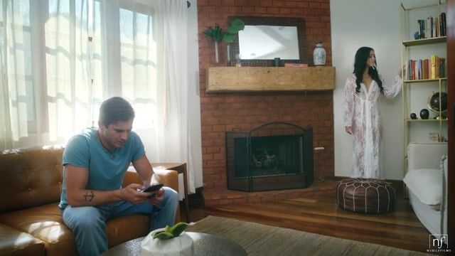 The spooky season is officially here, and Alina Lopez has a fantasy that fits the vibe. Playing the part of a sexy ghost, Alina is haunting the property that Nathan Bronson has just rented for a getaway. When she sees her sexy new unwitting roommate, Alina knows she has to find a way to have him.Over time, Alina graduates from watching Nathan to following him around and disappearing any time he might lay eyes on her. Alina is always there, watching. She even winds up in bed, rubbing her breasts through her sheer robe and masturbating, as soon as Nathan leaves the room.Nathan is definitely feeling the effects of Alina's haunting, especially as things get more physical. Alina knocks a book off the shelf, then goes on to control his phone and play some porn while he's using it. She manages to make the TV turn on with video of herself once again going at it in his bed right upstairs. Alina hams it up, dropping Nathan's name and begging him to come touch her. Obviously, this is an invitation he can't ignore.Nathan rushes up to find the bed empty. When he turns around, though, Alina finally manifests just for him as a corporeal lady who is horny as hell. Nathan is terrified at first, falling onto his back on the bed. Alina is quick on the draw, climbing on top of Nathan and affirming that she's as real as she needs to be as she gives him eager kisses and then pops his hardon out of his pants. By the time Alina has satisfied her need to devour Nathan's cock in an enthusiastic BJ, he's certainly convinced that she is, indeed, real enough.Shedding her robe, Alina climbs on top of Nathan and sinks down onto his erection. She's dripping wet and her pussy hugs him like a velvet glove. Throwing her head back in delight, Alina rocks her hips and bounces away. Nathan finally breaks his paralysis enough to reach up and caress her incredible tits. Alina is delighted; she's been waiting so long for a man to satisfy her ghostly needs.Getting on her hands and knees, Alina is an irresistible sight to Nathan. He knees on the bed behind her and shoves himself nice and deep into her creamy center. Thrusting hard, he squeezes Alina's ass as he pounds away at her puss. Her moans fill the room, guiding him into a harder, faster pussy pounding.When Alina falls onto her side and lifts one leg, Nathan cuddles up behind her and reenters fuck hole. The position lets them enjoy some intimacy through deep kisses even as Nathan continues to dive deep with long, firm strokes. Alina can't get enough as she rolls onto her back and welcomes Nathan back inside for one last journey towards a big climax. Obedient to Alina's needs, he brings her off. A moment later, he pulls out to take his own delight on Alina's stomach. Nathan tries to ask Alina if she's really a ghost, but she refuses to commit either way.