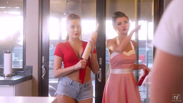 Sexy 50s housewife Maya Woulfe puts on a record as she waits for her husband, Nathan Bronson, to come home. It's Valentine's Day, and Maya really wants to set the scene for a sexy time with Nathan. As Nathan arrives, he is followed inside by Vanna Bardot, a hot girl who is Maya's opposite in so many ways.Taking charge immediately, Vanna pushes Nathan into a chair and then turns to Maya. Maya doesn't quite know what to do. She knows she should be upset that there's another woman in her house, but to be honest, she really likes it as Vanna comes closer and spins her around to get a good look at her. When Vanna comes in for some up close and personal contact, Maya doesn't stop her at all. Nathan tries to intervene, but Vanna is having none of it. Instead, Vanna continues to seduce Maya with hot kisses and searing caresses that let Maya know how badly she wants another woman's touch. By the time Maya has begun participating instead of merely allowing things to happen to her, Nathan has also come around to the idea of a threesome.Now that Maya is into it, she becomes an equally aggressive participant. She can't wait to get Nathan to bed so she can share him with another woman, especially one as hot as Vanna. The girls peel Nathan out of his clothes, leaving him all too ready for an evening of fun. They demonstrate how in sync they are as they share Nathan's hardon. Sucking him off together, they get him all ready for something a lot more hardcore.Vanna gets to take the first turn enjoying Nathan's cock as Maya caresses her tight body and enjoys the delight of her ass. Leaning back, Maya watches another woman fuck her husband. The sight is so fucking hot that she can't help but reach down to start masturbating to the tune of Vanna's moans.When Vanna climbs off the D and helps Maya to mount Nathan in reverse cowgirl, she gets an opportunity to watch as well. An active participant, Vanna licks and nibbles at Maya's titties while rubbing her clit. She's enjoying the hell out of helping this housewife let her hair down and enjoy herself in the bedroom.Getting on her hands and knees, Vanna takes Nathan's fuck stick from behind. Arranging Maya in front of her, Vanna dips her head and lets her tongue explore some new territory. Nathan keeps on pumping her full of the D as she feasts on Maya's creamy center.Now that Maya has experienced another woman eating her out, it's her turn. She gets on her back so Nathan can settle himself between her thighs. Once Maya has gotten cozy, Vanna straddles her face and puts her twat in the perfect licking position. Maya is a quick study, and soon she's happily eating her new friend out.Knowing he has satisfied two ladies, Nathan finally pulls out to finish. He busts his nut all over Maya's tight chest, covering her with his jizz. Basking in the afterglow of their victory over Nathan, the girls share a final moment of sensual bliss.