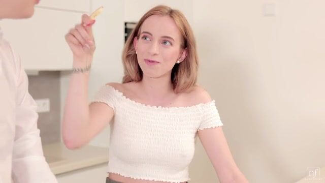 Lily Steele enjoys wearing clothes that are fashionable, but that flatter her slim and petite body. If they make it easy to get access to her tight body for her boyfriend Jamie Dion, all the better. She gets herself dressed and then goes to join Jamie where he's reading for school.Lily isn't interested in watching Jamie work. She tries to get his attention by massaging his shoulders and nibbling at his ear, but to no avail. Later, she finds Jamie in the kitchen preparing a snack. Snagging the treat right from Jamie's hands, Lily gets extra flirty with her love. When Jamie tries to drink some water, Lily takes the cup and dumps it down her front to turn her white shirt translucent.The sight of Lily's nipples through her sheer shirt is the ultimate enticement. Jamie can't say no to an invitation like that. He helps her out of the wet shirt between kisses, then moves down to take those plump titties into his hands and mouth. Helping Lily onto the counter, Jamie enjoys a boobie feast before he takes them to the bedroom.Laying on her belly in bed, Lily takes Jamie's dick in hand. Pulling him nice and close, she opens her mouth to begin sucking. She takes her time, making sure to play with and slurp the balls before she turns around to offer her pussy for a doggy style start to their coupling.Falling to their sides, the young lovers go for it in spooning. Jamie lifts Lily's leg nice and high to accommodate him deep inside. She throws her head back in delight as he gives it to her nice and deep.When Jamie lays down on his back, Lily climbs on top so that her pussy is riding his tongue. She rocks her hips back and forth, indulging in the sensation of that magical tongue slipping and sliding through her slit. Then she leans forward for a hot 69. The position makes it easy for Lily to slide down and ride the salami in reverse cowgirl.On her back, Lily spreads her thighs to accommodate Jaimie between them. He takes her slowly, keeping intimate eye contact as he makes her moan one last time. Pulling out, Jaimie nuts on Lily's stomach and chest, leaving her a salty treat to enjoy.
