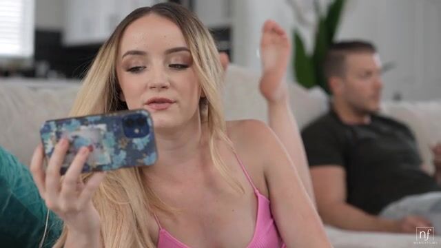 Maria Kazi and Codey Steele are hanging out on the couch together. Maria uses her phone to pull up some porn while Codey watches TV. She sneaks quick peeks back at Codey as her passion ignites. Too bad for her that Codey is totally distracted by...