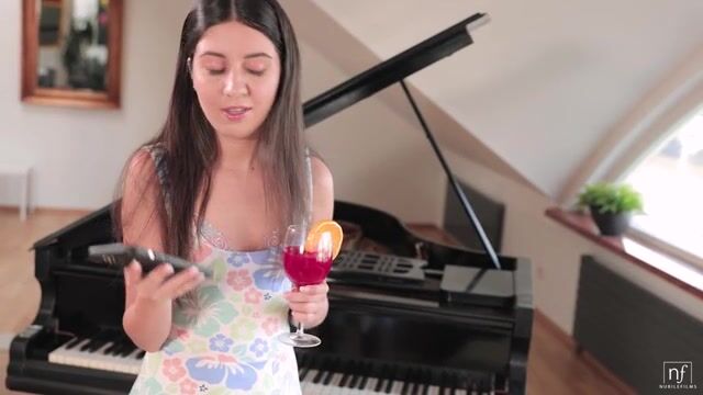 Katty West is ready for her date with Don Diego. While she waits for him, she sips some wine and plays the piano. Don arrives as he said he would, and the couple instantly comes together in a kiss that turns into much more.It's not long before Don has begun to let his hands roam. Moving low on Katty's body, he squeezes her ass and kneads the cheeks. In response, Katty gets Don on his butt on the couch so she can crawl into his lap and continue pressing her lips to his. Kissing her way down Don's body, Katty pulls his hardon out to lick and suck in a lusty BJ.Getting back to her feet, Katty resumes her position in Don's lap. This time, there's nothing stopping her from adjusting her hips to slide down onto her beau's fuck stick. Rocking slowly, she rides in cowgirl before turning around for a faster ride in reverse cowgirl.When Katty gets on her knees, Don is there for her pleasure. He dives nice and deep until his balls slap with every stroke in doggy. Katty falls to her side for some spooning sex. Then she lets Don finish her as she lays on her back with her ankle propped over his shoulder. Moments later, Don pulls out to give Katty a facial that leaves her sated and smiling.