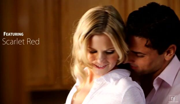 Blonde babe Scarlet Red is in the kitchen doing dishes when her man Ryan Driller comes up behind her and makes his sensual intentions known. Scarlet is totally willing, allowing her beau to pull her full tits out of her shirt and then to hike up her miniskirt so that he can slide his hand beneath her thong. Propping Scarlet up on the counter, Ryan kneels down and buries his face in the softness of her bald pussy to lick her into juicy wetness and then pulls his pants down so that he can drive his hard cock deep into her tight twat. Meanwhile, Scarlet reaches behind her back and turns the faucet on so that she can enjoy the added dimension of splashing warm water all over her heated breasts. The water-pay gets Scarlet hotter than ever, so she turns around and bends down for her beau to take her doggy style against the counter as she continues to wet her shaking breasts down in a frenzied fuck fest. Next, the couple slows things down when Scarlet gets down on her knees and eagerly wraps her warm wet lips around Ryan's rigid cock so that she can lick her essence from his dick. The pair moves to the bedroom, where Ryan settles Scarlet on the bed for a long luxurious pussy licking. He starts off with just light laps of his tongue, but soon with the help of two fingers he drives his woman wild with pleasure until her first climax breaks through her with a long moan.With Scarlet's body still throbbing in ecstasy, Ryan slides back home deep in her velvet fuck hole. He rocks gently as they hold hands and stare into each other's eyes. As things continue to heat up, Scarlet climbs on top and takes charge of her own pleasure.Rocking her hips, she takes a moment to get used to the new position and then starts writing her man like her own personal stud. Her tits shake and shimmy as she kicks the speed up another notch, riding until she is right on the edge of cumming.Pulling back, the blonde delivers a long loving blowjob where she deep throats her man's cock in her eagerness to bring him right to the brink of orgasm. Wanting to reach that peak together, the two come together for one more frantic coupling that leaves Scarlet gasping and moaning. Seconds later, Ryan pulls out and jizzes his load all over her flat waiting belly and breasts, leaving his woman satisfied and smiling.