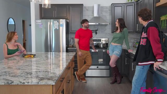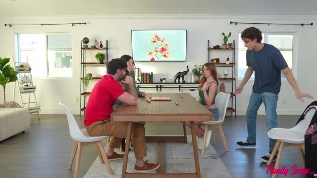 What would happen if four families each contributed one member to create a new family? In this episode of Family Swap, the swap fam decides to do a pizza and games night. Scarlett Mae asks swap siblings Parker Ambrose and Myra Moans about how their day was. She interrupts the conversation to give her swap hubby Ken Feels a BJ. They pick up chatting again as Ken feels up Scarlett's tits, much to the Parker and Myra's confusion.Later, Parker is still feeling confused as the swap family plays a game. He lifts Myra up and mimes fucking her from behind to see if he can get a reaction from anyone. When it doesn't happen, he keeps escalating. Instead of saying anything, Scarlett just peels her clothes off and sits down on swap dad's fuck stick to ride him while Peter fucks his swap sis from behind.Now everyone gets in on it, with Myra and Scarlett hopping onto the table to enjoy a pussy pounding from their respective partners. The girls each enjoy a BJ, and then Myra rides Parker's fuck stick in reverse cowgirl and Scarlett takes it in doggy. Ken gets a taste of Myra as he gets his dick wet in her pussy while Peter dicks down his swap mom. The guys each enjoy a creampie, with Scarlett's coming from Parker and Myra's courtesy of Ken.