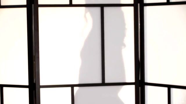 Juicy hottie Alaina Kristar enjoys a leisurely strip tease behind the semi-transparent room divider, offering a lovely silhouette for her waiting lover Ryan Driller until she struts out dressed only in a thong and sheer thigh high stockings with...