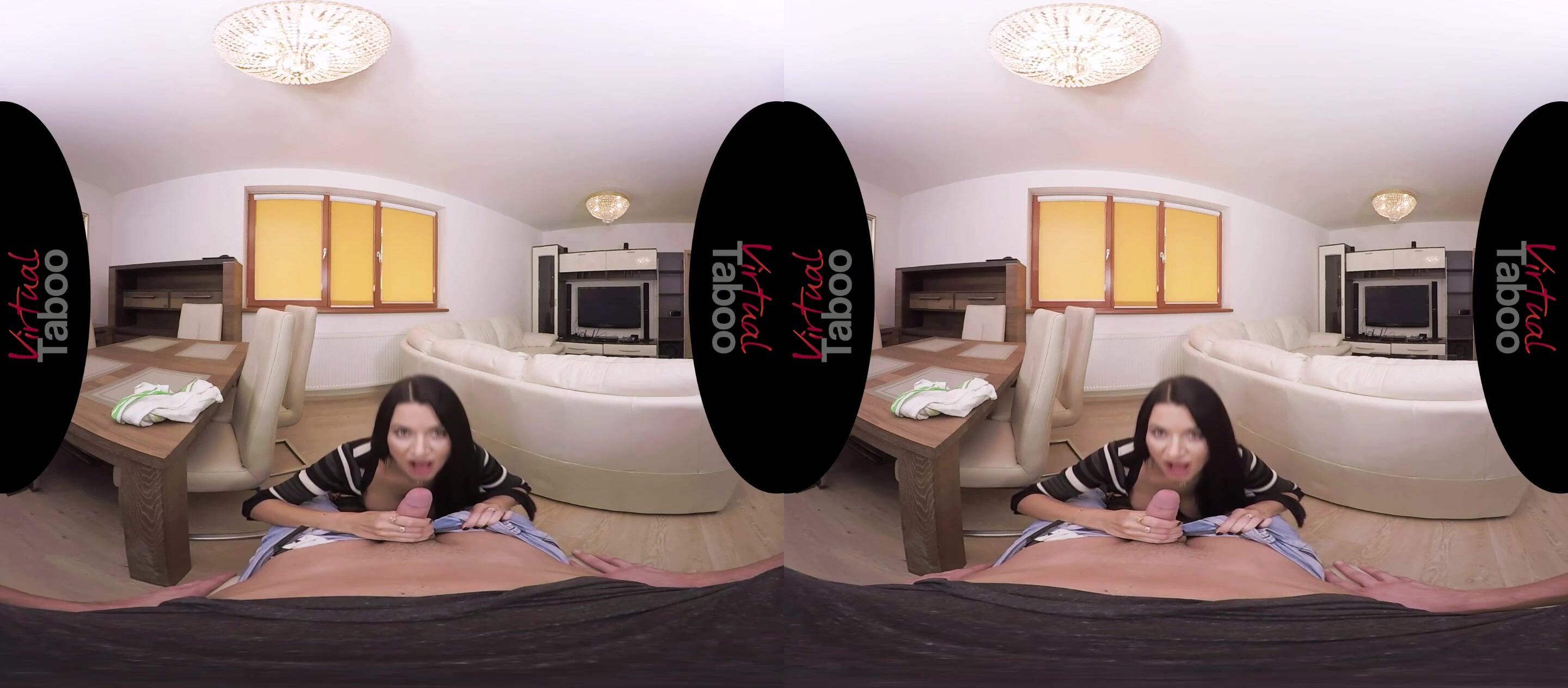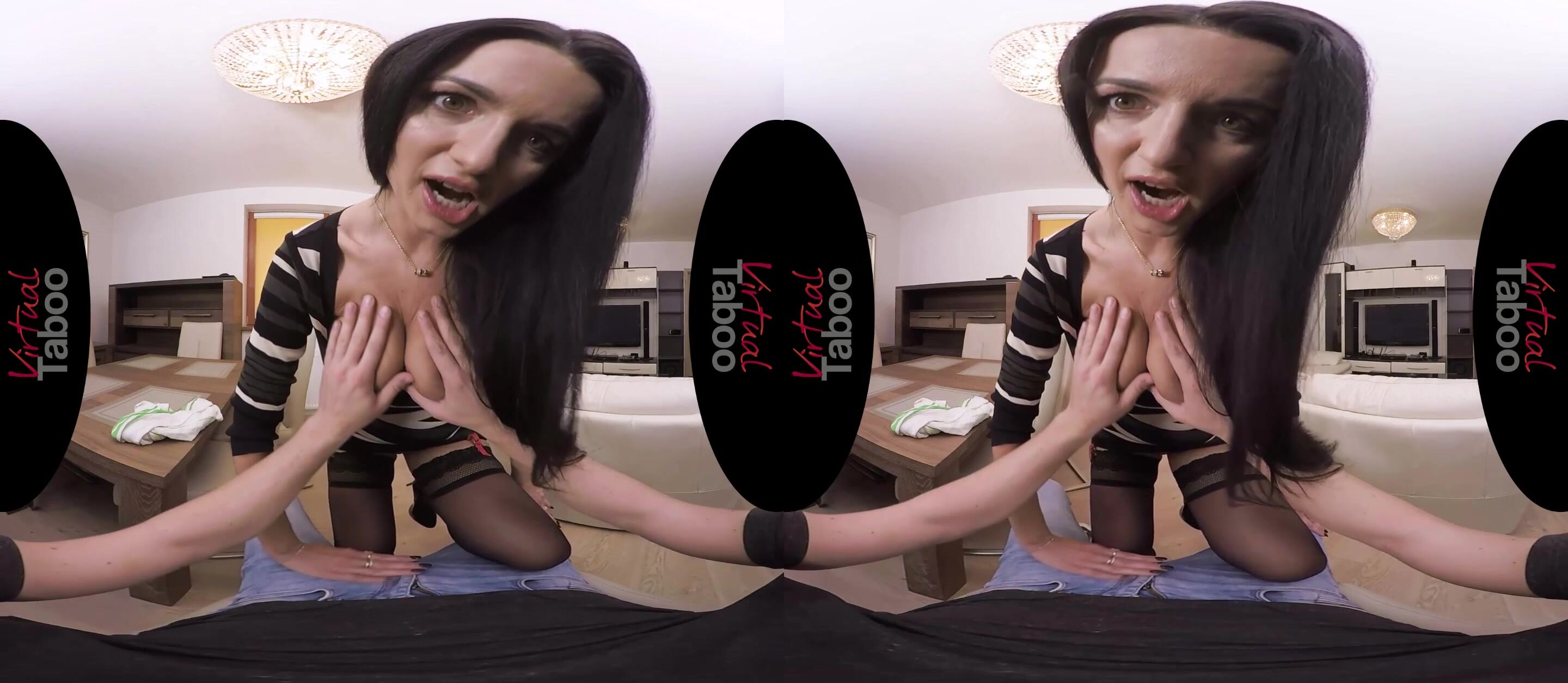 As the luscious raven-haired step mom with big tits Ania Kinski was cleaning the table, her pervy stepson was taking compromising pictures of her. Noticing that something was going on behind her back, hot MILF Ania caught her husband's son redhanded and upon inspecting his phone found many naughty pictures of her. This, naturally, made her very angry and she decided that enough is enough, so she went on to pull out her massive boobs and start sucking on her step son's large cock. But, soon her daughter came barging in looking for her laptop. Luckily, sexy Ania was able to hide what she was doing. As soon as her daughter was gone, this ravishing cougar went back to the job at hand and rode her stepson’s hard member until it covered her pretty face in sticky cum. That ought to teach this little pervert a valuable lesson!
