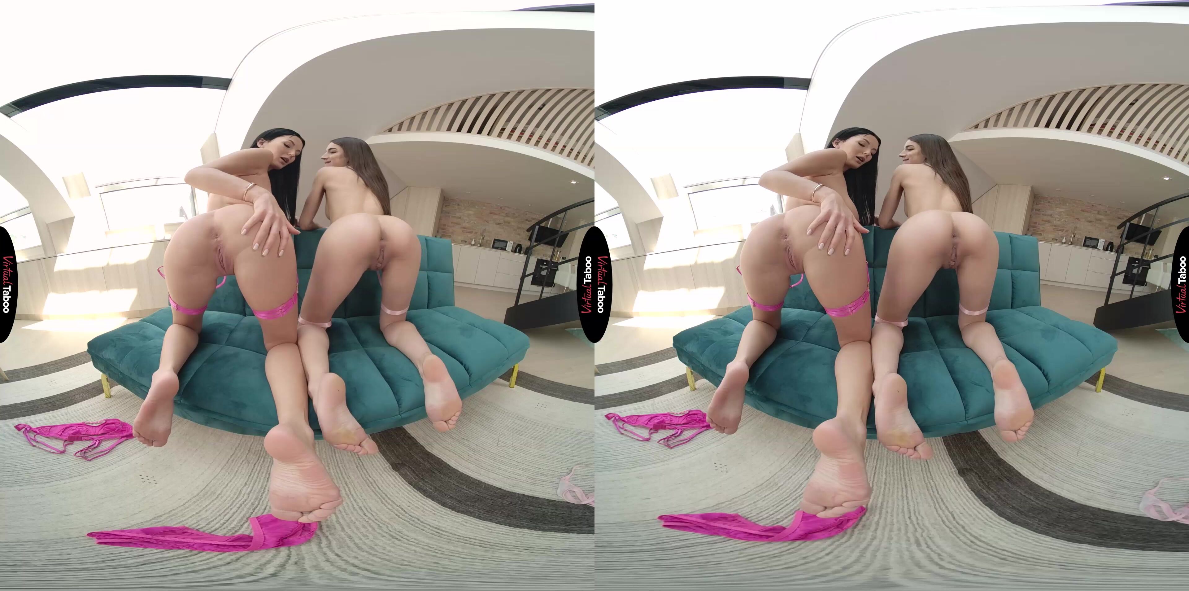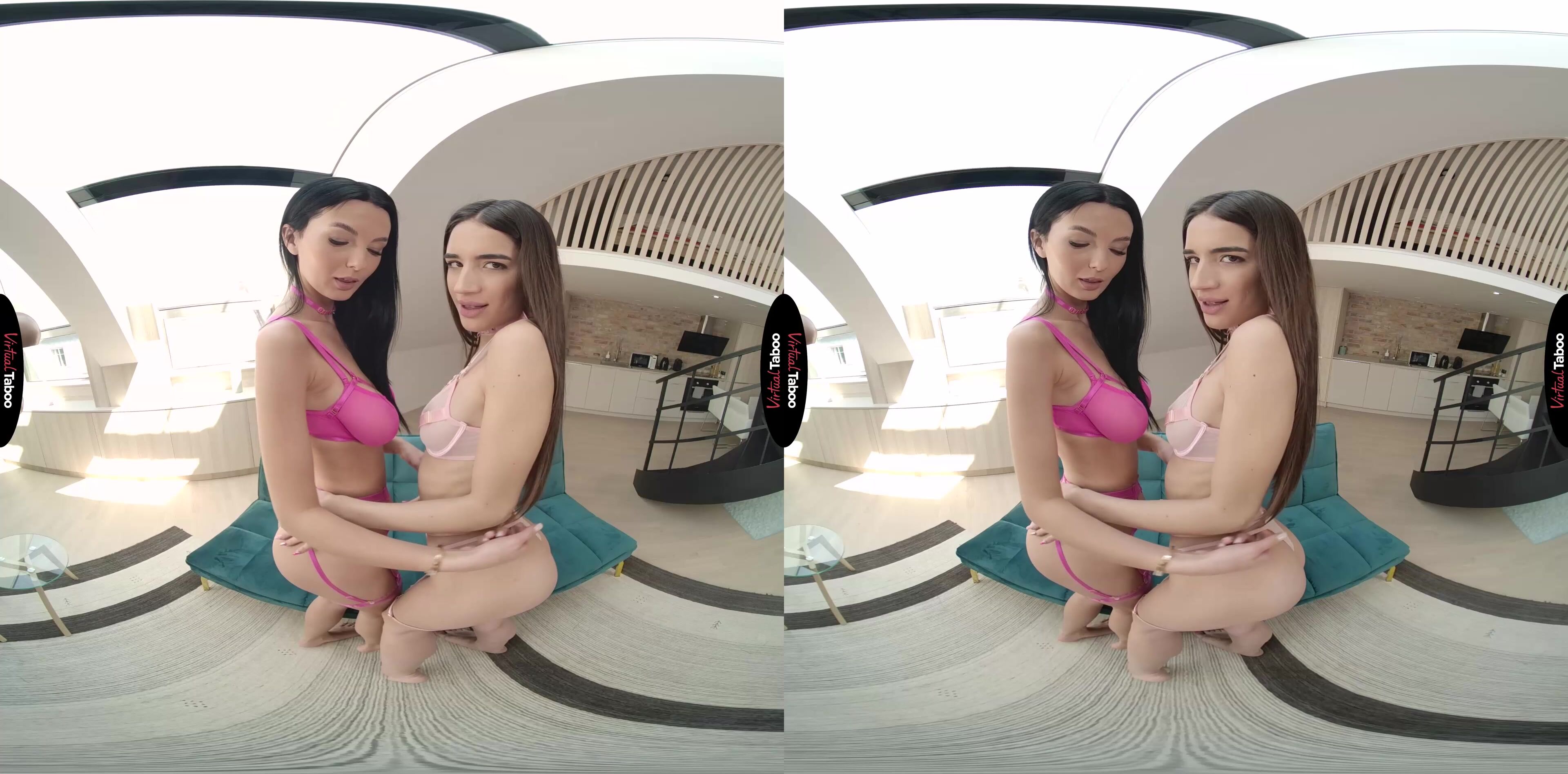 For your birthday, your girlfriend Simon Kitty usually makes you a nice meal, picks out a good movie to watch, and takes you to the bedroom afterward. Nothing bad about any of that, but it has become a little predictable. Lately, she has been spending a lot of time with a friend from work named Candie Luciani. They seem to get along well and Simon is always in a good mood when she comes home from spending time with her new friend. When you come home on your birthday you find Simon waiting there with Candie. They are both dressed in matching lingerie and smiling at you. This year, you are getting something a little different for your special day. Just sit down and relax. No touching of course, but you get to watch them play. You will find your favorite drink waiting by your chair. All you have to do is enjoy the VR porn show. If you get turned on and want to take out your cock, they both agree that it will be just fine. They begin to strip, starting with their bras which are tossed aside to expose their lovely breasts. How about some ass? Would you like to get a good look at Simon’s ass? Candie assures you that it is spectacular, making you wonder what they get up to on their girl’s nights out. With just garter belts left on, they spread their legs and start to play. That is more than you can resist and you begin to pump your cock up and down while they watch you. Their fingers fuck their pussy, your hand pumps your cock. No matter who cums first, a very special time is guaranteed for all.