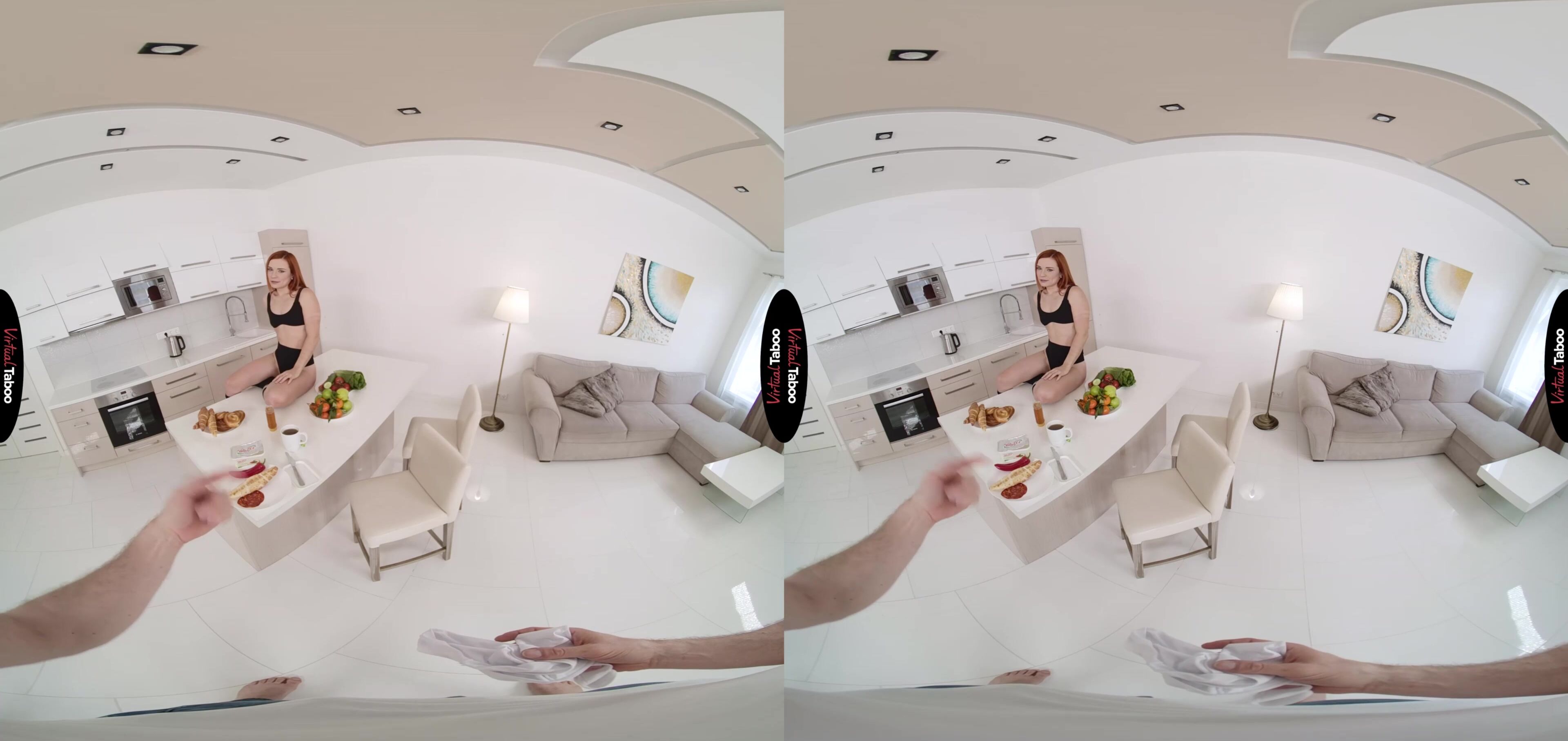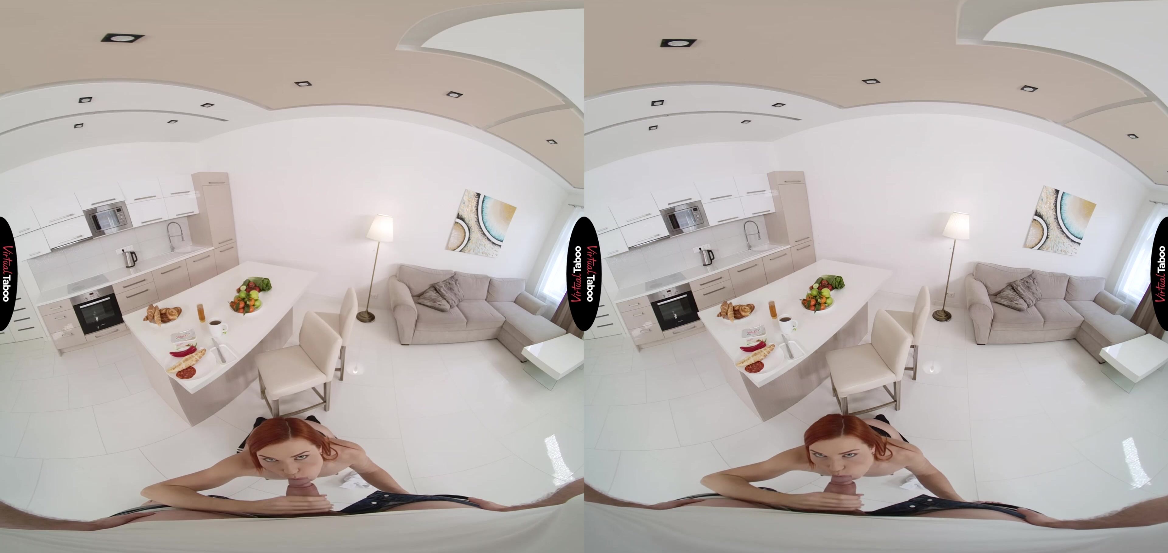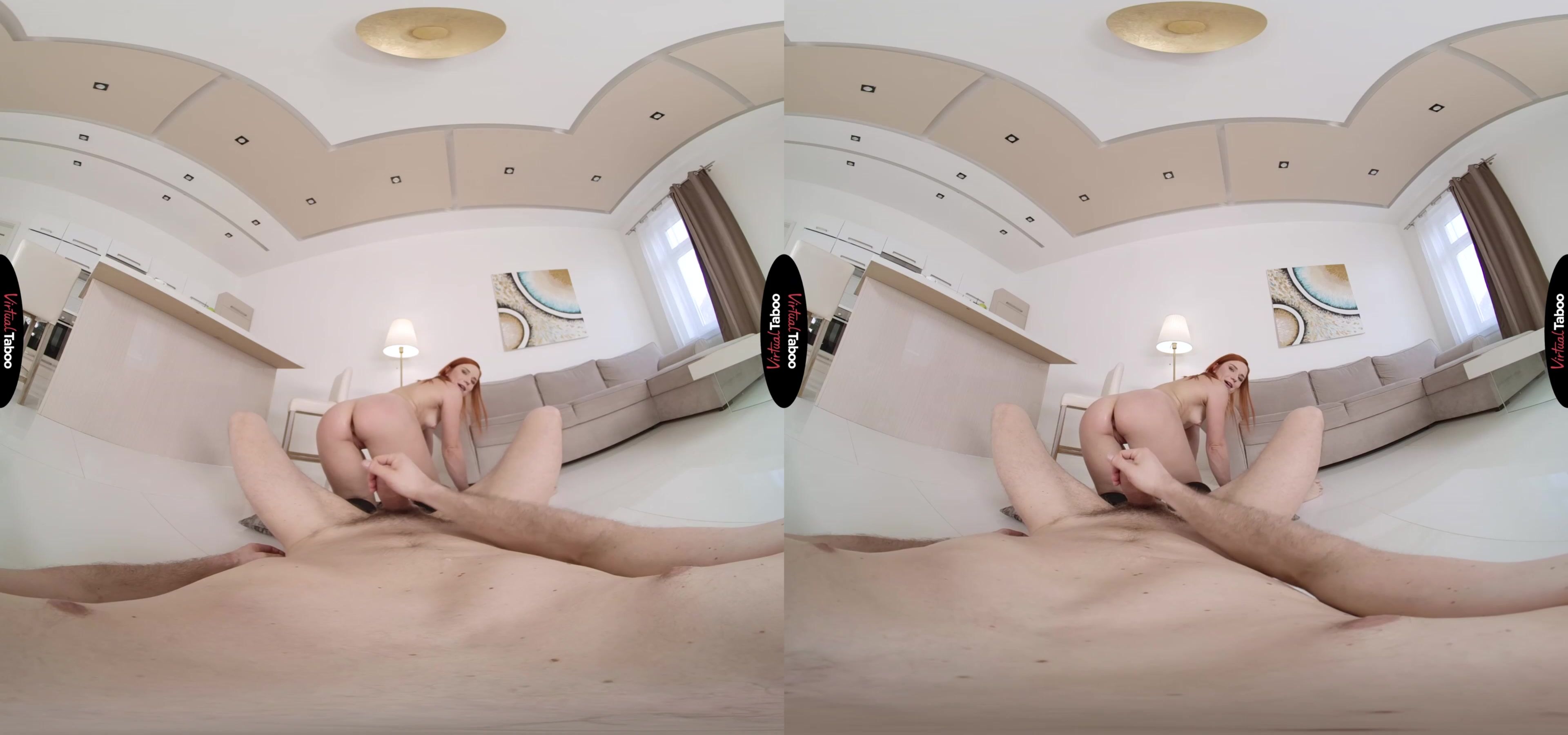 Clemence Audiard VR has been left alone with her stepbrother for the weekend. Her mom has left her in charge and wants to make sure that she fixes her younger step-brother a good breakfast. The pretty redhead is more than happy to do the task. She has had a crush on you ever since you both started college. You try to ignore the way she is dressed and thank her for the breakfast. When you find a pair of her panties where the butter should be, you are shocked and upset. Clemence laughs and tells you not to be so uptight. You stuff her panties in her mouth to shut her up, but that does nothing to deter her desire to do more than make you breakfast. She pulls off her top, showing her body and watching as your attitude changes rapidly. Since you clearly like what you see, Clemence drops to her knees to seal the deal with a kiss, right on the tip of your dick. Your big sausage fits right into her throat as you finally figure out just how much she likes you. In this taboo porn episode, you have to do what she says and she says for you to fuck her tight little asshole. You get behind her and stuff her between the cheeks, marveling at just what a nasty slut your stepsister is. She knows it is a special treat for you and also knows that you are dying to bang her sweet, wet pussy. After you make her cum, you want back in her ass so she happily bounces on your dick until you are ready to explode. Not one to let things go to waste, she gets on her knees and takes your load all over her face and mouth. That is the kind of breakfast she wants every morning.