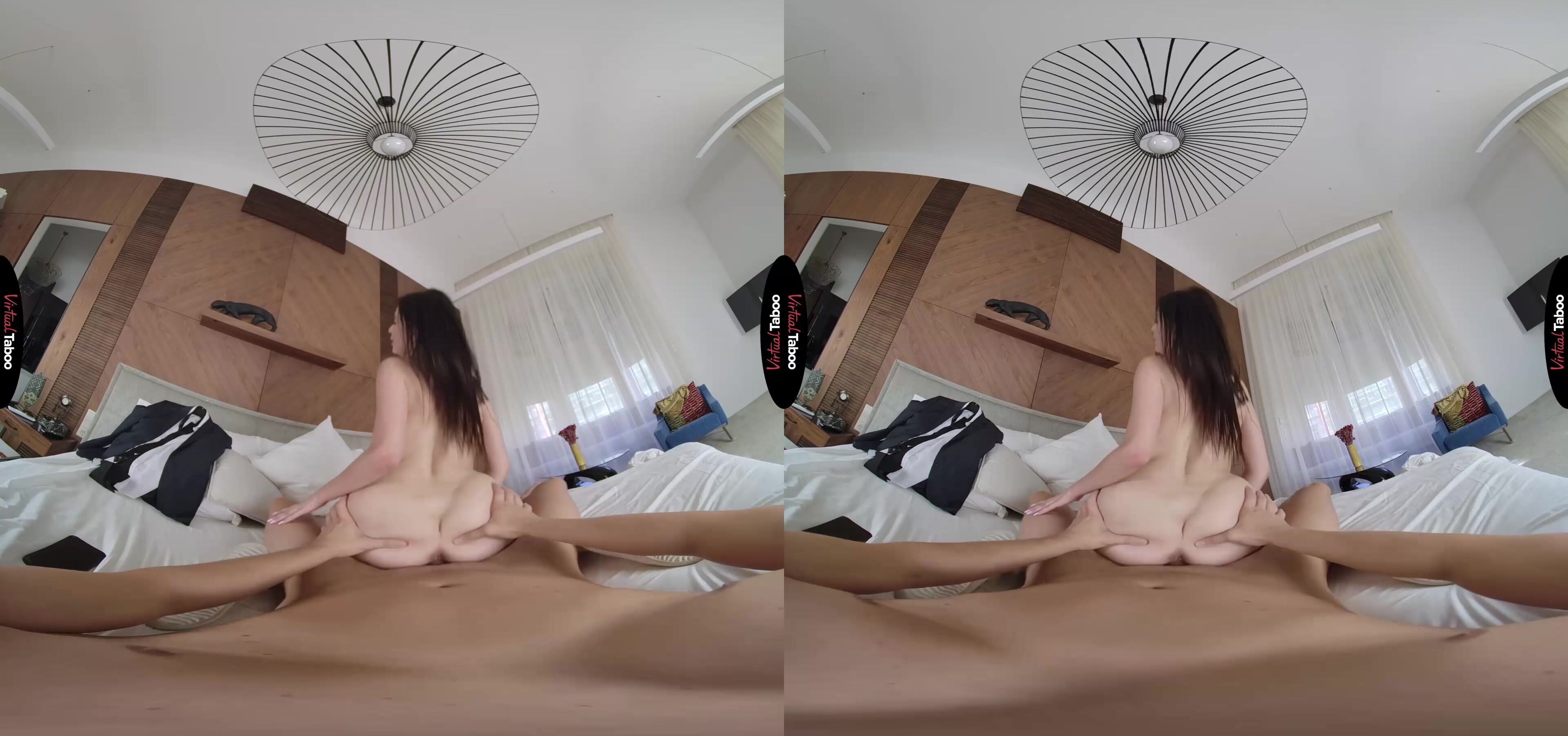 Milena Ray has had a crush on her stepbrother for a long time but has never found the courage to act on it. When they both move away to college, she fears she has lost the chance. However, with both of them home for a weekend to celebrate their parents’ anniversary, she decides to see if he feels the same way. She sneaks into your room while you are showering and finds your phone. Finding messages between her stepbrother and other girls, she is excited to see that you have sent dick pics to other college girls. She is also quite excited to see just how big your dick is in the pictures you have sent. Deciding that she needs to take a chance, Milena films a short VR porn video of herself masturbating on your phone and hides under the blankets to see what you will do. You take a look at the video right away and can’t help but pull out your cock and start stroking. Seeing how much her video turns you on, Milena jumps out and surprises you. Before you can object, she has her hungry mouth around your throbbing cock and is busy giving you the best BJ of your life. Her secret crush has been revealed and you are more than happy to bend her over to make her Vr taboo fantasy come true. Your dick fits perfectly into her wet little pussy and she squeals with pure delight at every stroke. It is even better than Milena dreamed it would be and she never wants to stop riding your meat. You are having fun too, but have your limits, and when you can take no more, blast a big load all over your stepsister’s smiling slutty face. She lets you know that the next video she shoots will star you and her virgin backdoor.