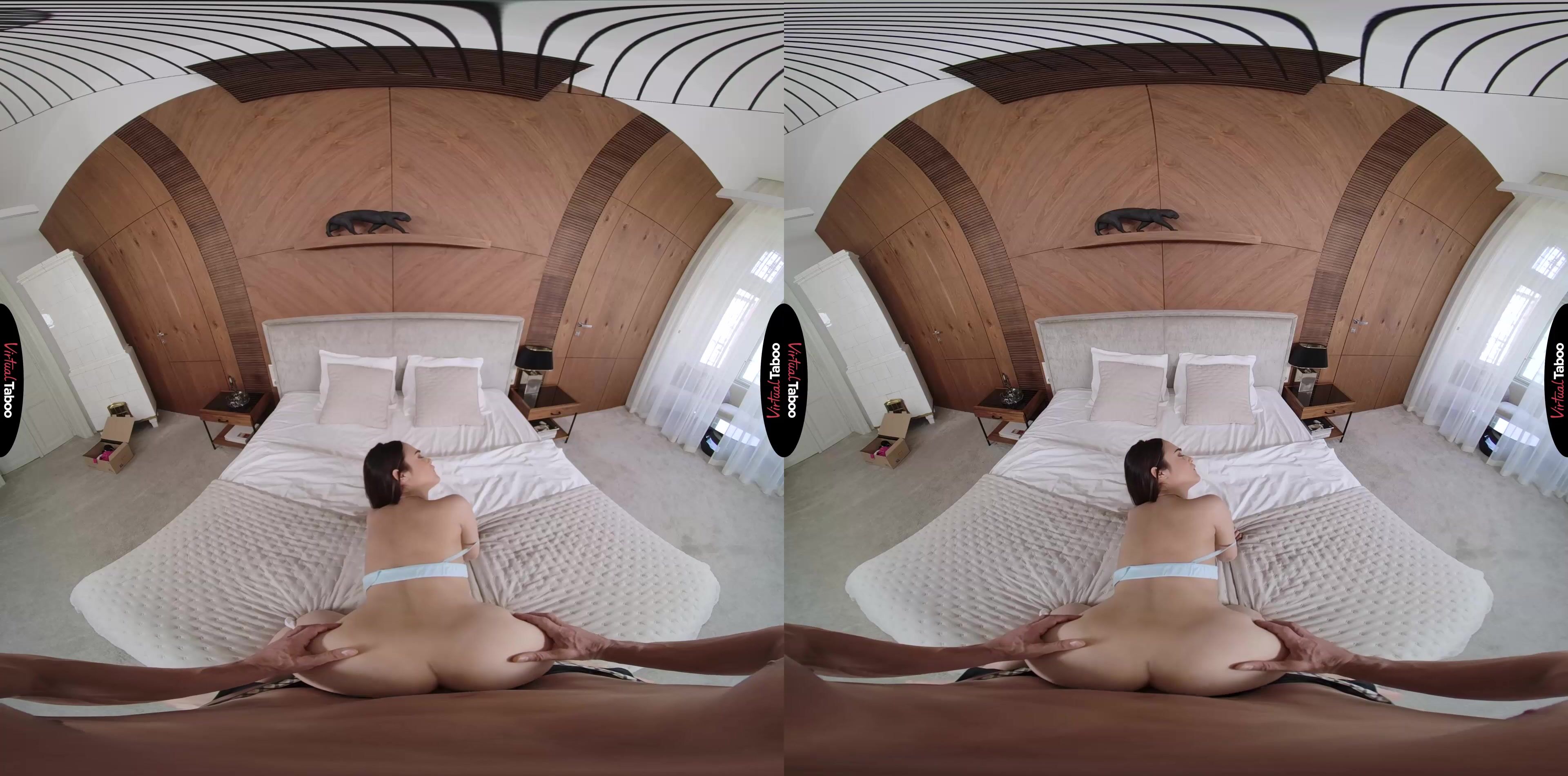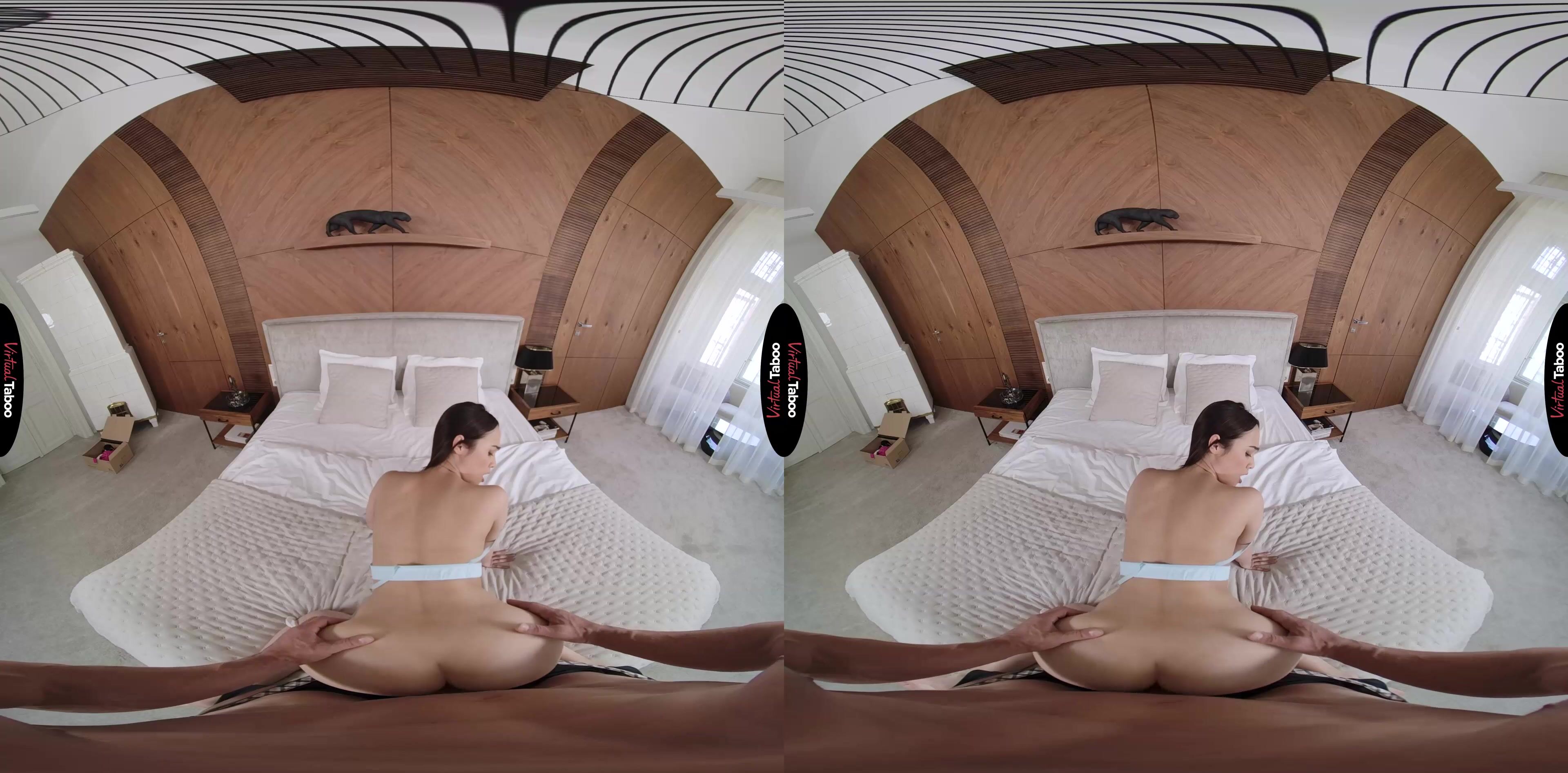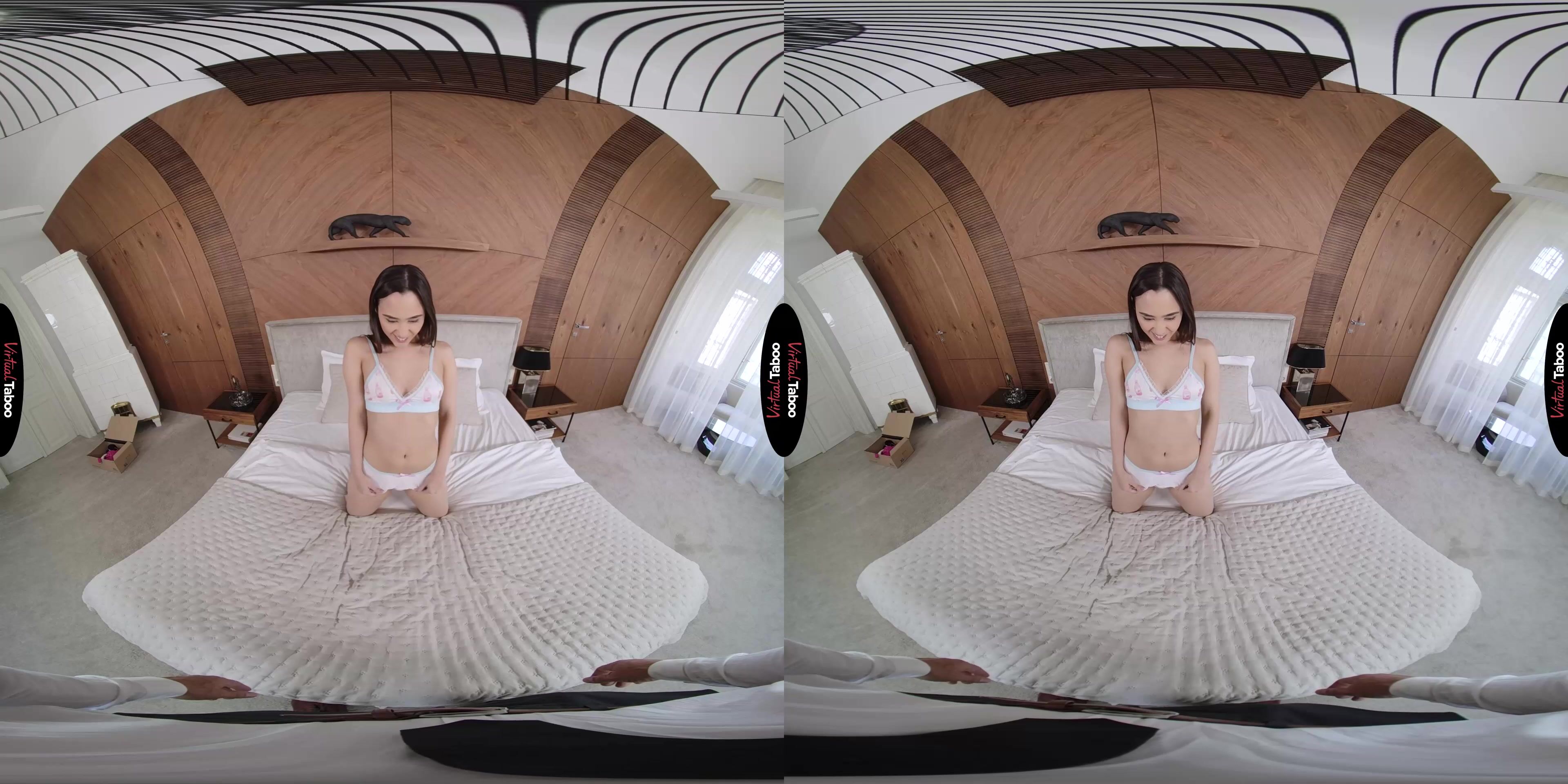 Alice Hernandez, the young VR porn model from Japan, is very excited about a package she has been waiting for. She has ordered some sexy new outfits that she can’t wait to wear for her boyfriend. When her stepfather knocks on her door and hands her the parcel she is anxious to try the clothes on so that she doesn’t notice that he is still at her door and can see her. Alice notices you staring and can’t miss the bulge in your pants. Deciding to try on her sexy dress in front of her stepdaddy, she wiggles her ass and teases you. Now that she has your full attention, she changes into another outfit without even trying to cover up. She asks you if you think her boyfriend will want to fuck her when he sees her in this outfit. Instead of answering, you pull out your cock and show her how big and hard it is. That is all the hint she needs and Alice starts giving you the best blowjob of your life. Your dick feels so good in her mouth that she can’t wait to have it in her tight pussy. The VR taboo factor has you throbbing and ready for her other holes. You grab her hips and thrust into her from behind, filling her with your fat meat. Her pussy is so much tighter than your wife’s that you are ready to cum in moments. She turns around, thinking that you fuck her better than any of her boyfriends ever has. You know you need to pull out, but she feels too good and doesn’t slow down when she feels you shaking. your load shoots into her pussy. Who cares that you aren't wearing a condom? Who cares that she has a date with her boyfriend later? This is the way things are going to be from now on