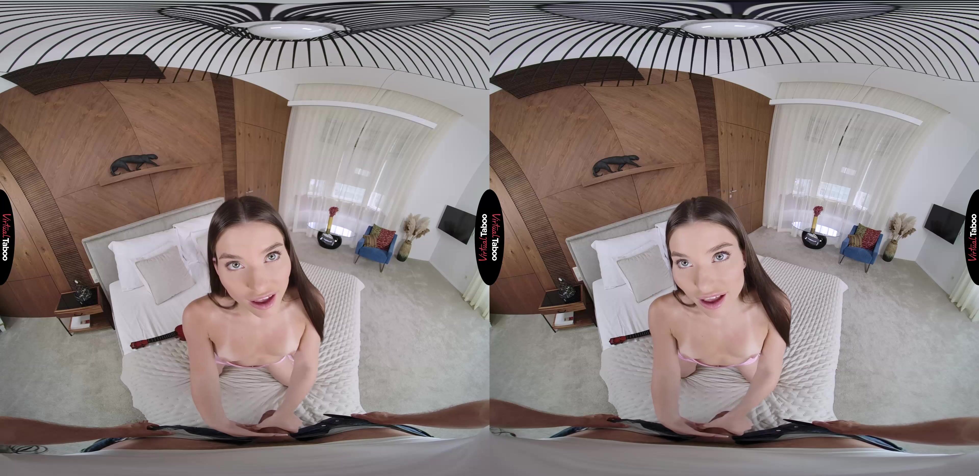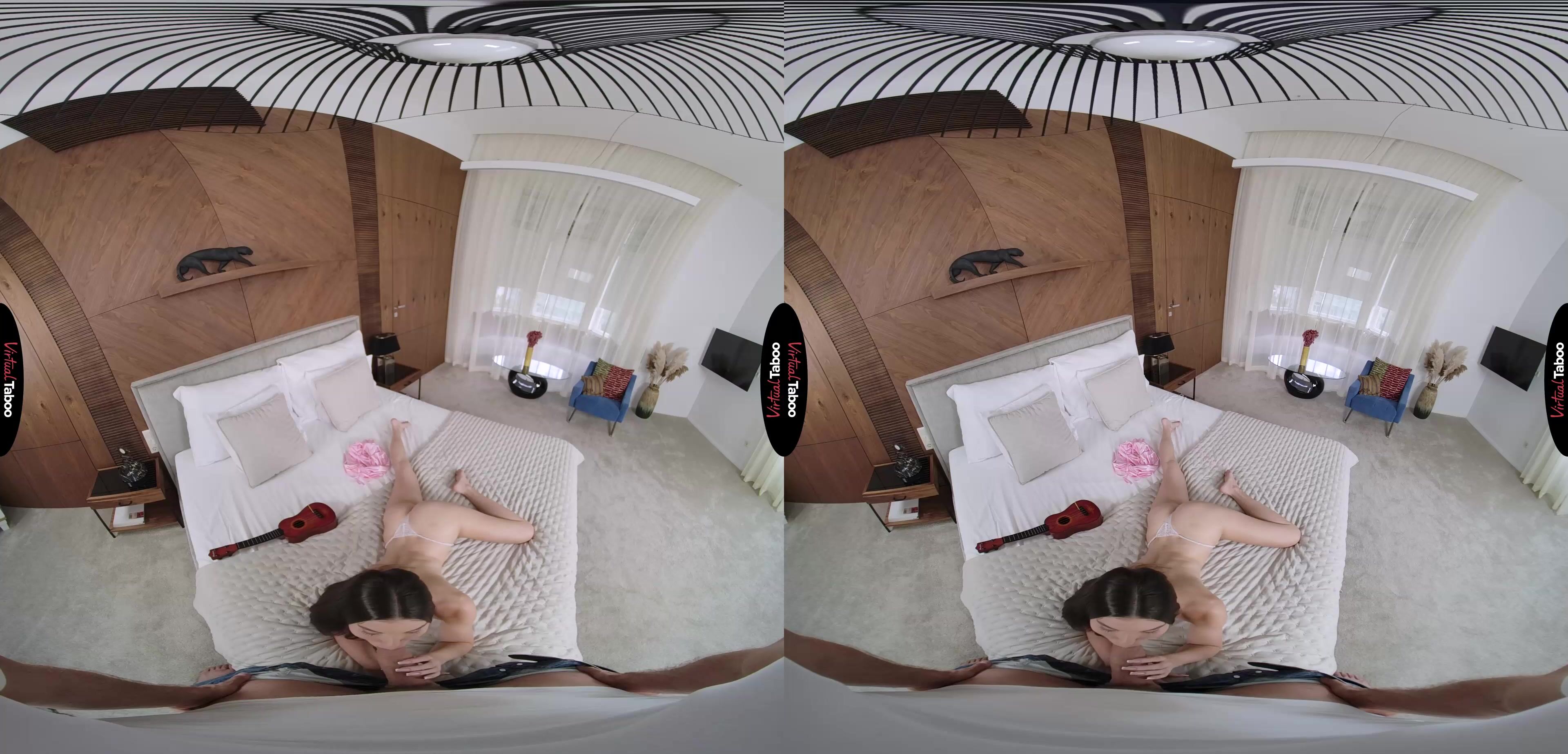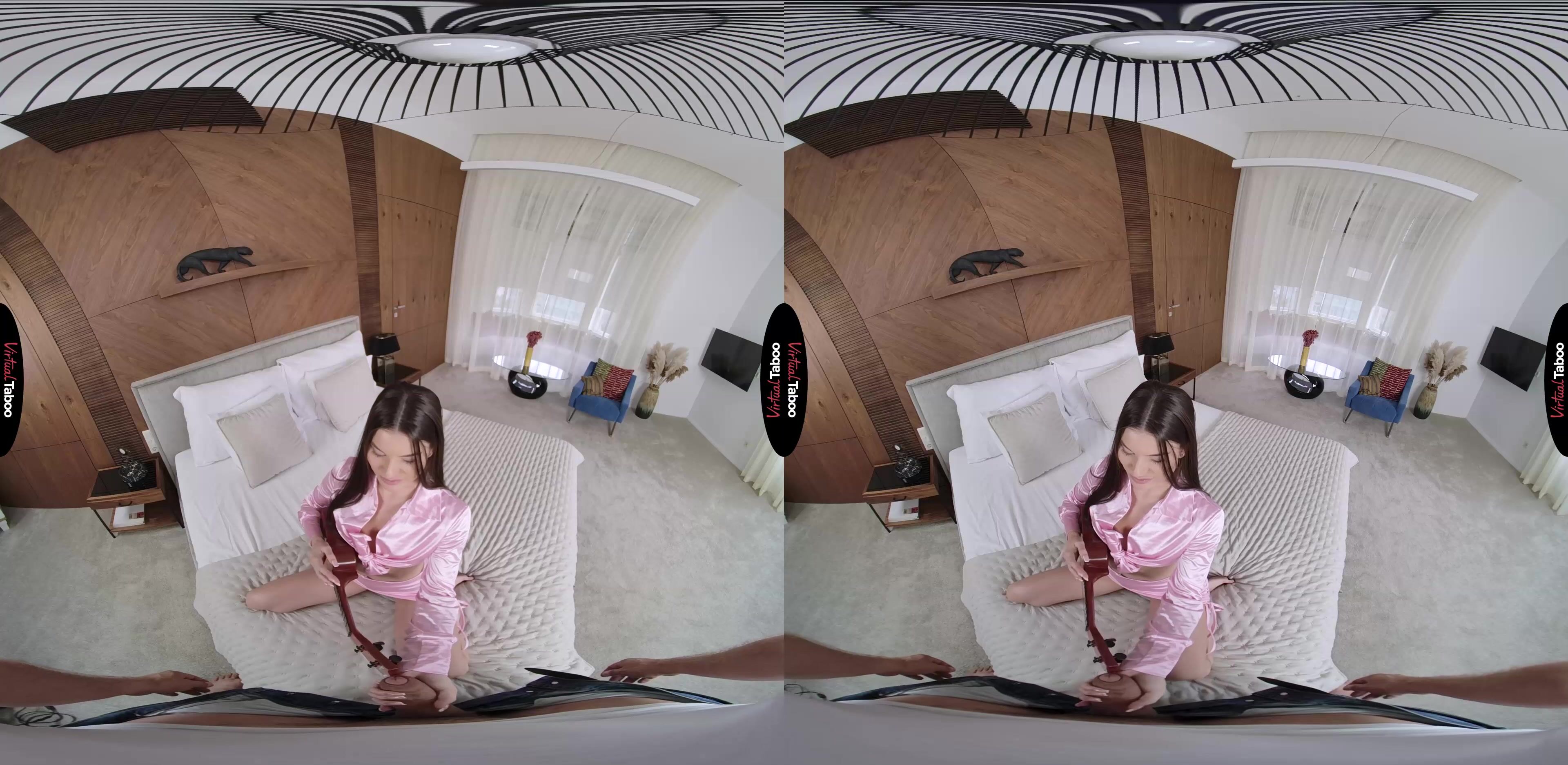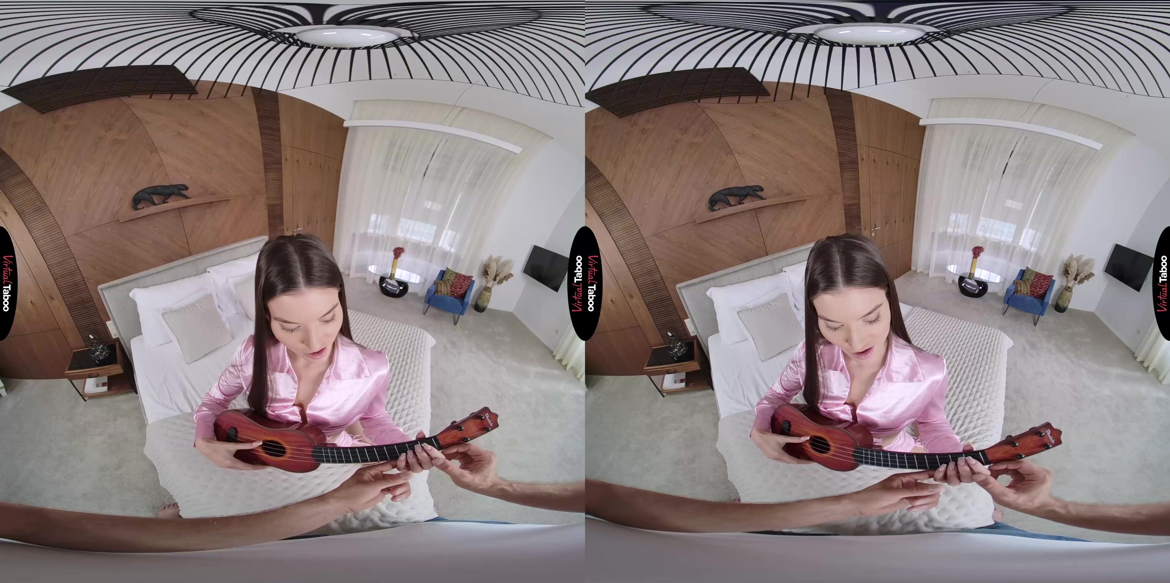 Stefany Kyler has a huge crush on a young man she met at college. He is a musician and she desperately wants to have some excuse to spend time with him. Deciding that she should learn to play the ukulele, she learns quickly that it is a lot more difficult than she expected. Luckily, Stefany has some help right under the same roof. Her older stepbrother is a music major at their college and gives lessons on the weekends for extra money. In this VR porn episode, she waits in your room to ask for your help. Though you are very busy with your new VR headset, you agree to help. You give her some tips and show her how to hold the instrument. Being so close to her brings out feelings you have held for a while and you can’t help but get hard. Ignoring it at first, Stefany thinks she is just imagining it, but as your dick grows to full size she realizes that you want her. She decides that maybe the best way to pay you for the lessons is with her pussy instead of money. You love that idea and watch her get naked while pumping your dick to full throbbing length. One look at that huge dick and Stefany forgets all about the guy she has a crush on. She wants her big stepbrother’s big cock and is happy to show you why she has always been so popular in school. Her mouth gets you so wet and throbbing hard that you slide easily into her tight, wet pussy. You give it to her hard and deep, pushing every inch inside until you are ready to explode. When you do, she pumps it into her mouth, letting you cover her face. Based on your reaction, Stefany thinks that maybe she doesn’t have to learn to play an instrument to get her crush’s attention.