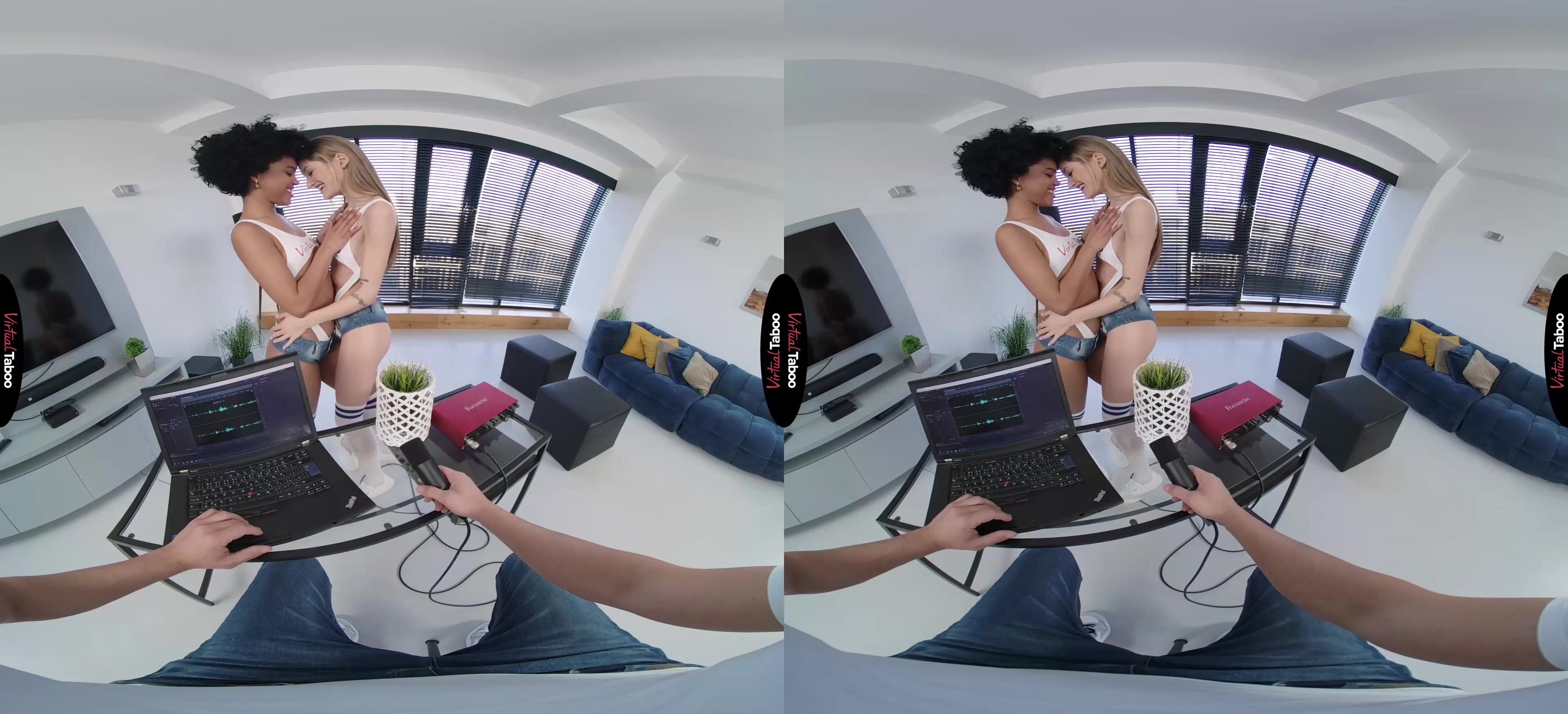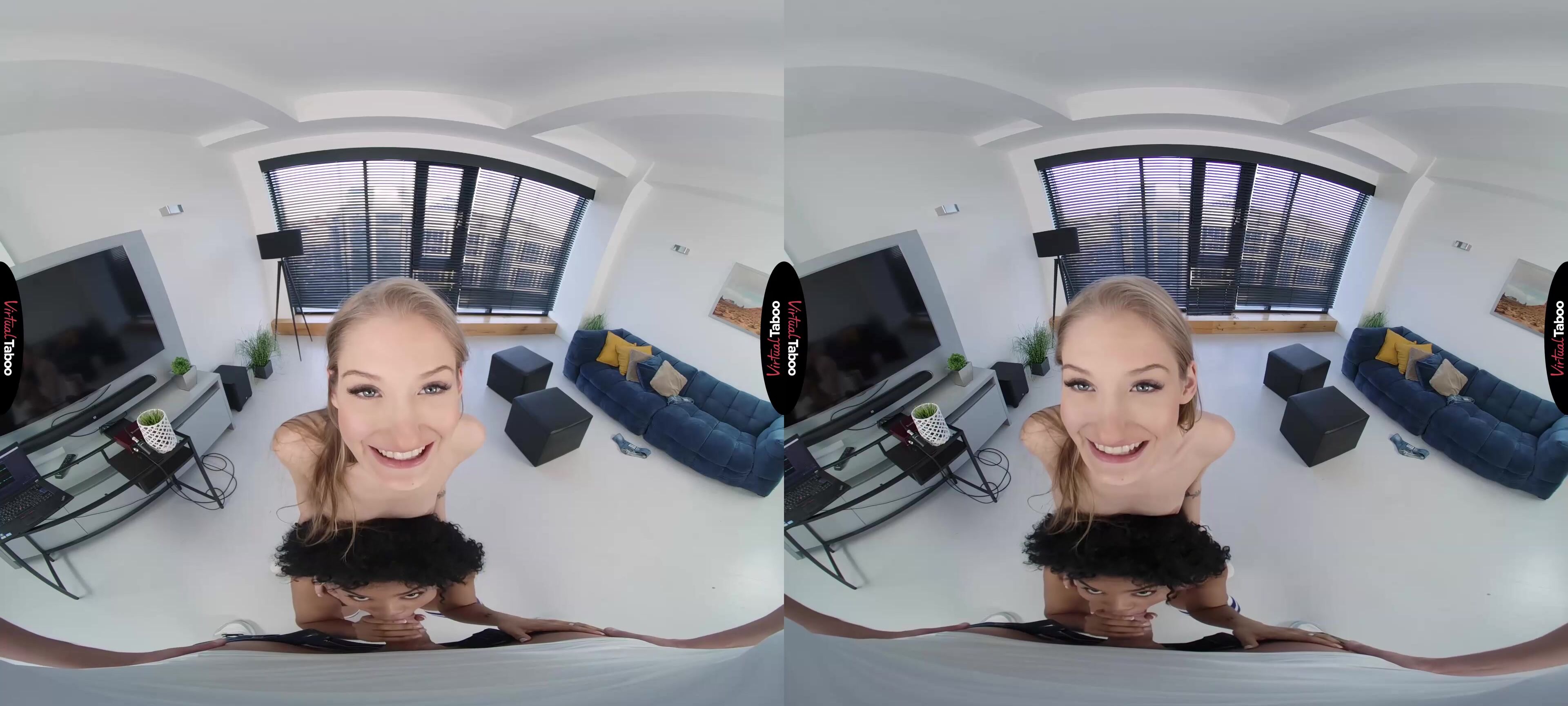 Tiffany Tatum is really enjoying her life. Ever since her mom remarried, things have been great. They live in a big house with a pool, she has made a great friend with Selva Lapiedra and to top it off she is living with a sexy stepbrother who also happens to be dating her new bestie. Selva knows that Tiffany has a crush on her boyfriend and encourages them to tempt him to see just how far he will go for a VR taboo threesome. They get dressed up in sexy matching outfits and try to distract you while you are recording your new virtual reality podcast. You finally take notice when they simulate a double blowjob on your microphone. It sinks in further when the girls start to undress and play with each other. They like the girl-on-girl play, but really want to share your hard dick. Tiffany marvels at how big your dick is and watches her best friend bend over and take the full length inside of her tight wet pussy. When it is finally her turn, Tiffany can’t believe how good it feels to have you inside of her. Selva is completely turned on by how hot it is to watch her boyfriend bang his own stepsister. The kinky trio picks up the pace as the girls take turns riding your pole. These two horny best friends love sharing the same dick and when you blast your load, they share your cum with the same passion. Now that the taboo barrier has been broken, Tiffany knows that her life just got even better thanks to her big dicked stepbrother.