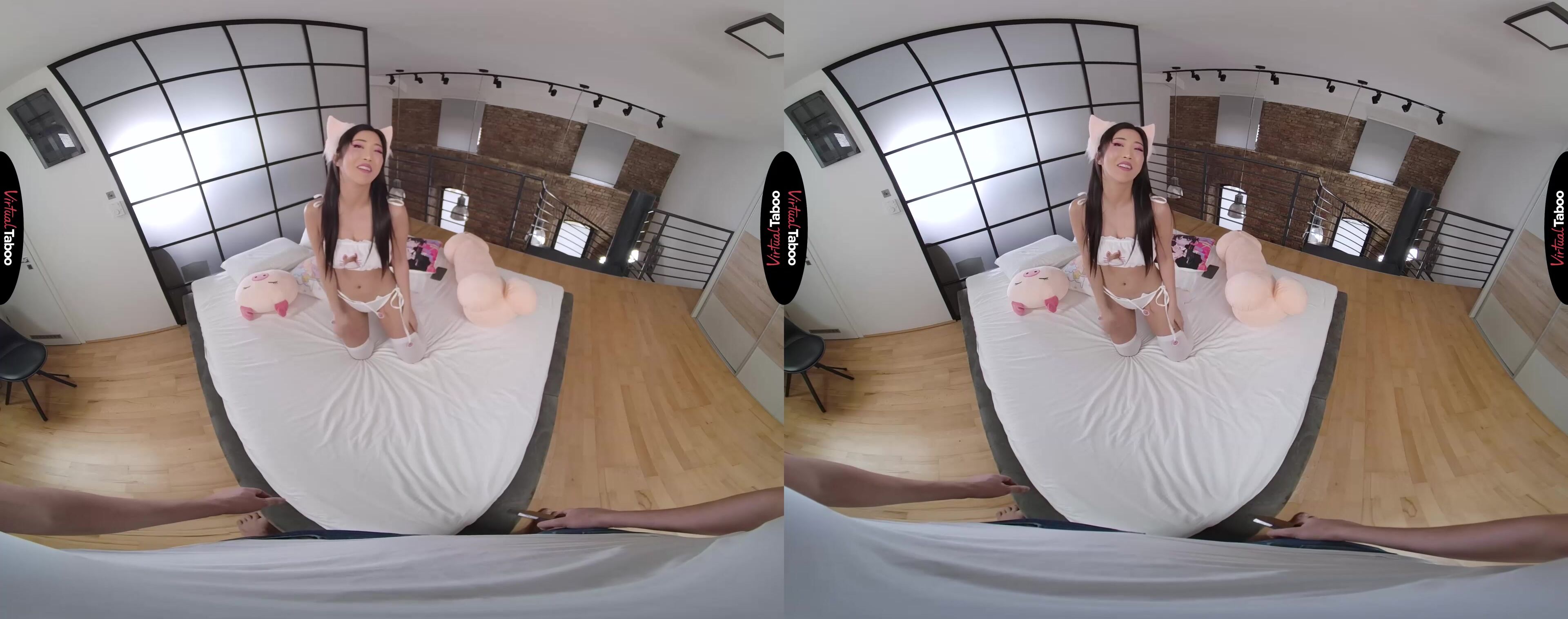 Your father has moved his new wife and her daughter Sumire Mikzukawa (aka Emiri Momota VR) into the house. It is a big adjustment for everyone, but especially for Sumire who has no friends yet. To make it easier, they give her money to decorate it any way she likes. Doing her best to make it feel like her room back home in Japan, she is very pleased with the results. She is happy with her room and wants to show it to her friend who stays in Japan. Sumire is new and doesn’t have many friends, but she is quite sexy and seems to be flirting a bit. You also can’t help but notice how sexy she is. She is new at school and doesn’t have many friends, but wants to be friends with you. You can’t believe your luck and aren’t about to turn her down when she flashes her naked, perky boobs. She wants to see your cock and smiles when she sees how hard you are. Watching her suck your cock, you can’t believe how lucky you are. She looks like a VR Porn star going to town with her talented mouth. The reality of her pussy is better than anything you could watch on screen though. Her tight slit grips your shaft on every stroke. It feels great as she looks on her back with her tits shaking and her eyes rolling back as she cums around your thrusting prick. She thanks you and then puts you back in her mouth, not stopping until you have shot a huge load all over her pretty face. Sumire will make a lot of friends at school, but she will always have time for her big stepbrother and his big cock.