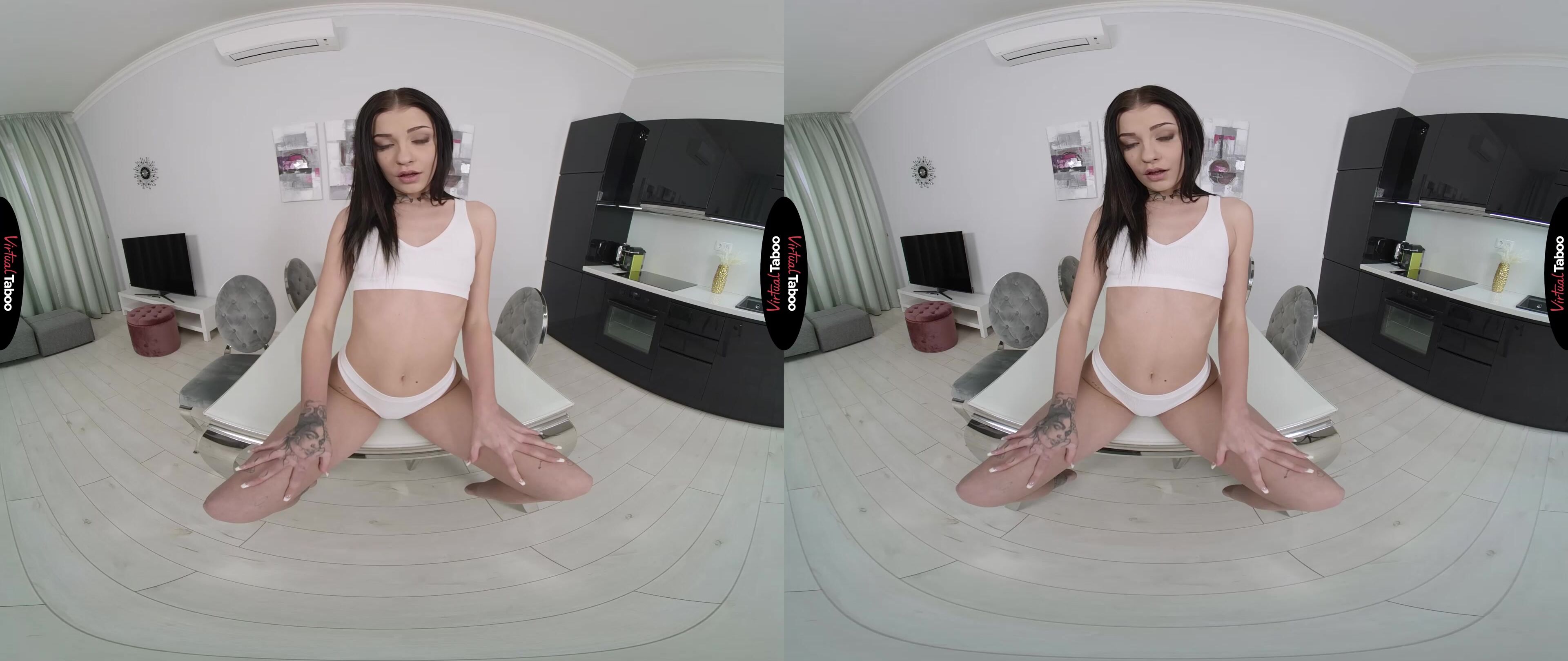 You wake up early one morning to the smell of breakfast cooking in your apartment. Assuming your roommate and his girlfriend are up cooking, you go out to say good morning. Instead of the happy couple eating, you find only your roommate’s girlfriend Chloe Heart dressed in a skimpy outfit with a smile on her face. You ask where her boyfriend is and she tells you that he left early for the gym. The food she made is for you and so is everything else that you see. Chloe explains that she has always had a crush on you. Even though she knows you will resist since she is dating your roommate, she wants you to watch her play to see if she might change your mind. You know that you should probably tell her now and lock yourself in your bedroom with some VR Porn, but it is hard to say to freshly baked pastries and her amazing ass. Now that she has your attention, she starts wiggling and teasing until she can see your cock getting hard in your pants. You can see more, but you’re going to have to take it out and show her how much you like looking at her. This seems fair and she smiled when she sees your dick throbbing. As promised, she slips off the top to show off her perky tits. You have always liked looking at Chloe, but this is more than you could have dreamed. Encouraging you to keep stroking, she pulls her panties aside and rubs her pussy while telling you that she has seen you looking at her and that she fantasizes about fucking you. You confess to the same taboo VR fantasies and that pushes you both over for a simultaneous climax.