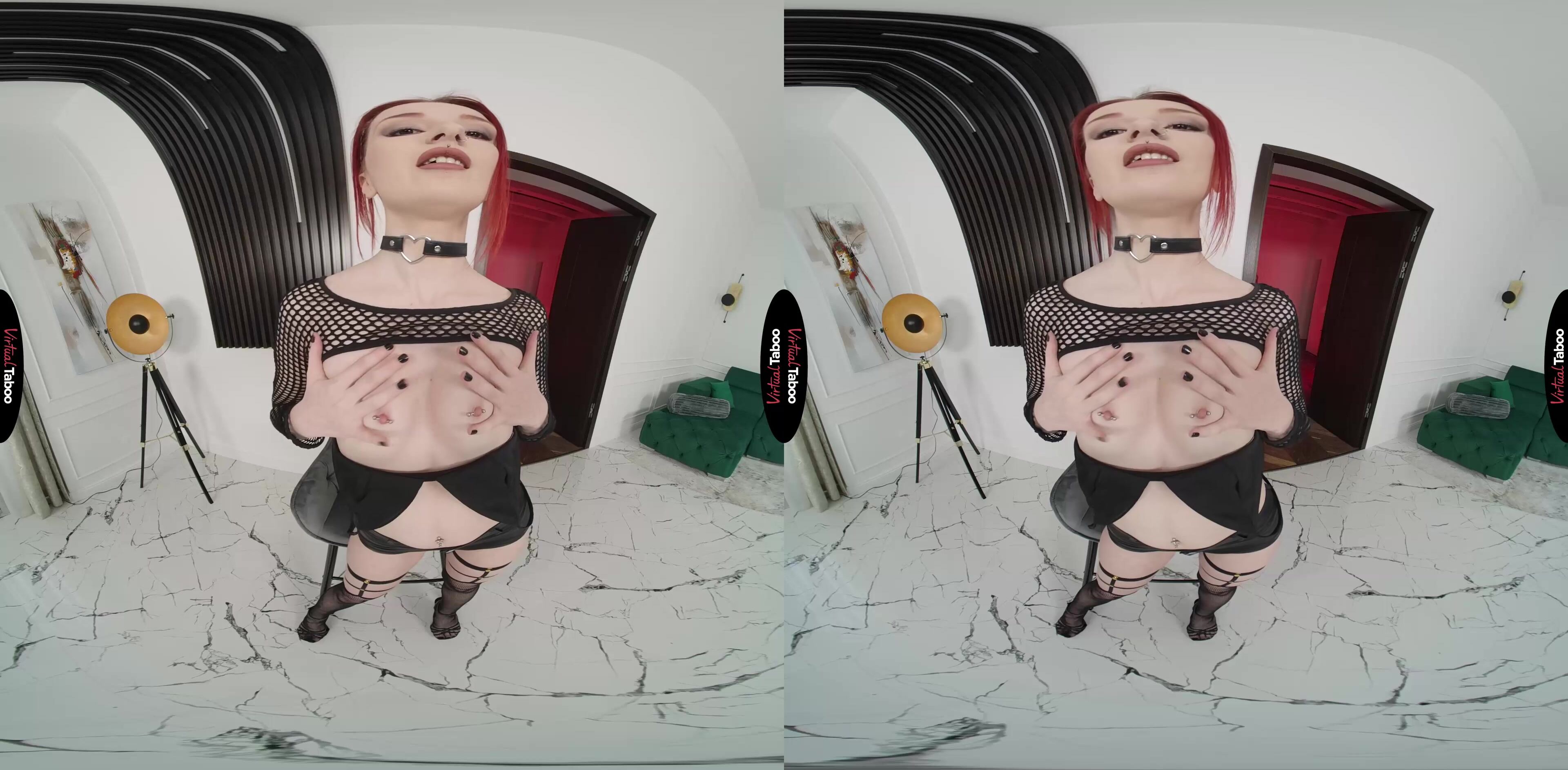 Your stepdaughter Gigi Rouge VR has been waiting for tonight for months. Her favorite band is playing and you bought her tickets for her birthday. The big night has arrived and she wants to show you the outfit she picked out for the show. She comes out of her room and you can’t believe what you’re seeing. Her outfit leaves little to the imagination and she smiles when she sees your reaction. She is frank in telling you that she hopes that her outfit turns on every guy at the concert, but mostly she wants it to drive you crazy. Since it works, she would like to thank you for the generous gift of the tickets. You aren’t sure what she means, but she makes it clear by pulling down her bra to show you her perky tits. She knows she looks good in her outfit, but would you like to see how she looks with it off? You know it is wrong, but don’t stop her as she strips down like a model from your VR taboo movies and shows you her body. She confesses to having a crush on you and that she knows her mother is too busy to satisfy you. You don’t have to cheat, just watch and let her show you how much she wants you. She stares at your cock while you stroke it for her. Spreading her legs and rubbing her pussy, she lays it out for you. You can have her if you want her. She won’t tell and will do all of the things she knows her mother won’t do for you. All you have to do is say the word. For today, you can cum with her and watch as she rushes off to her concert.