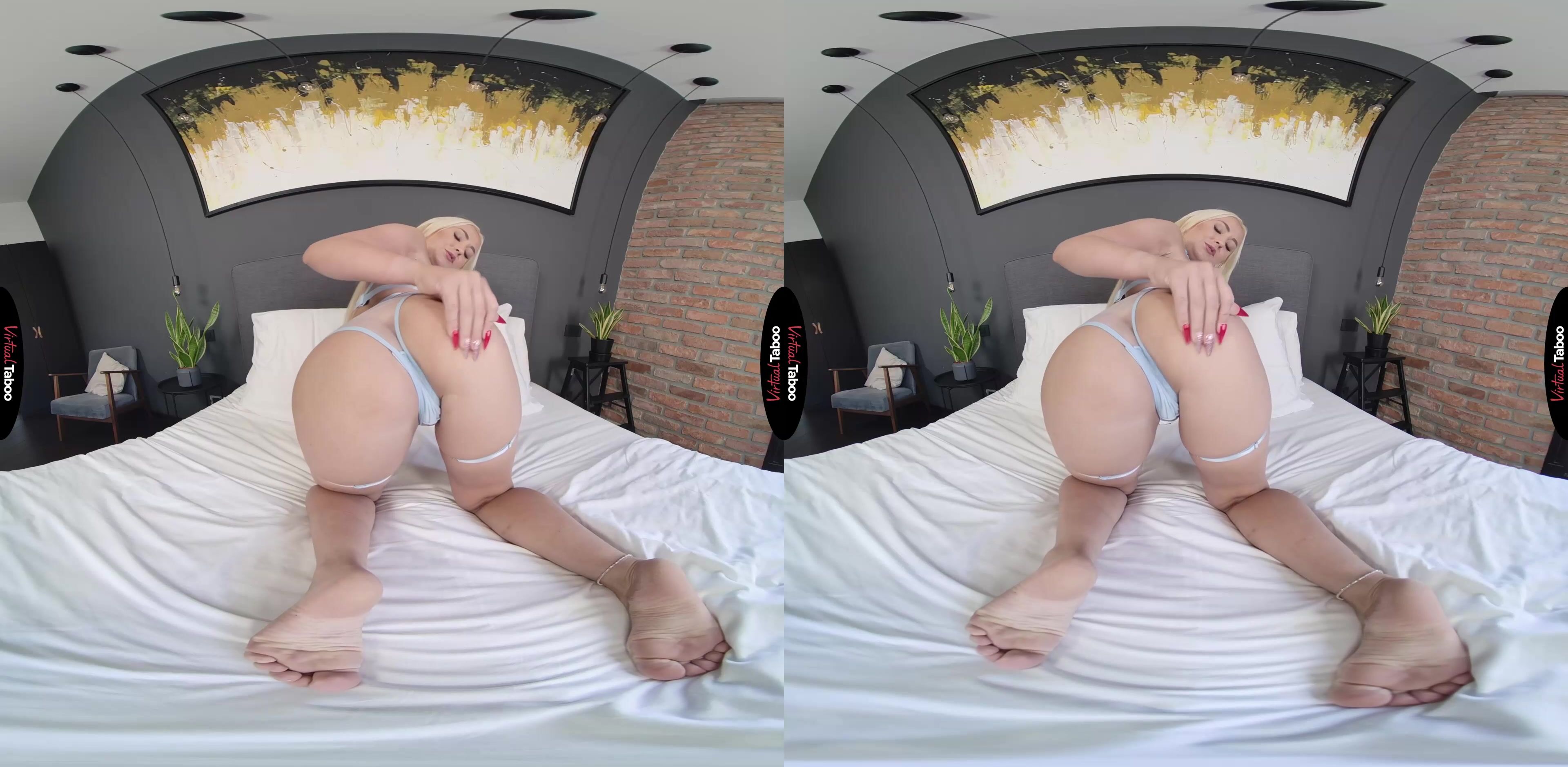 Being away from home on business can be very lonely. This trip is a full week away from your wife, with nothing but your VR Headset and taboo porn to keep you company at night. Your boss brought his wife of course and she is quite sexy. You try your best to keep your eyes off of her at dinner and only think about her when you are alone watching VR taboo movies in your room. Early one morning you get a message that you are to come by your boss’ room and pick up some files he forgot for his presentation. When you arrive at the room, his wife opens the door in revealing lingerie. Before you can protest or turn away, she pulls you into the room and pushes you down in a chair next to the bed. She has noticed you looking at her and it turns her on. The instructions to come to the room did not come from your boss, but from his wife. She knows you can’t do anything because of the risk, but wants you to watch her masturbate. This could cost you your job, but she looks so hot lying around on the bed and her voice quivers as she begs you to take out your cock. How can you say no? When she sees how big and hard you are, her mouth waters and her fingers find their way to her stiff nipples. Lisi knows what you want to see and sticks her round ass up in the air. You want it, don’t you? Of course, you do and she wants you to shoot your cum while staring at it. That is one assignment you can complete with ease.