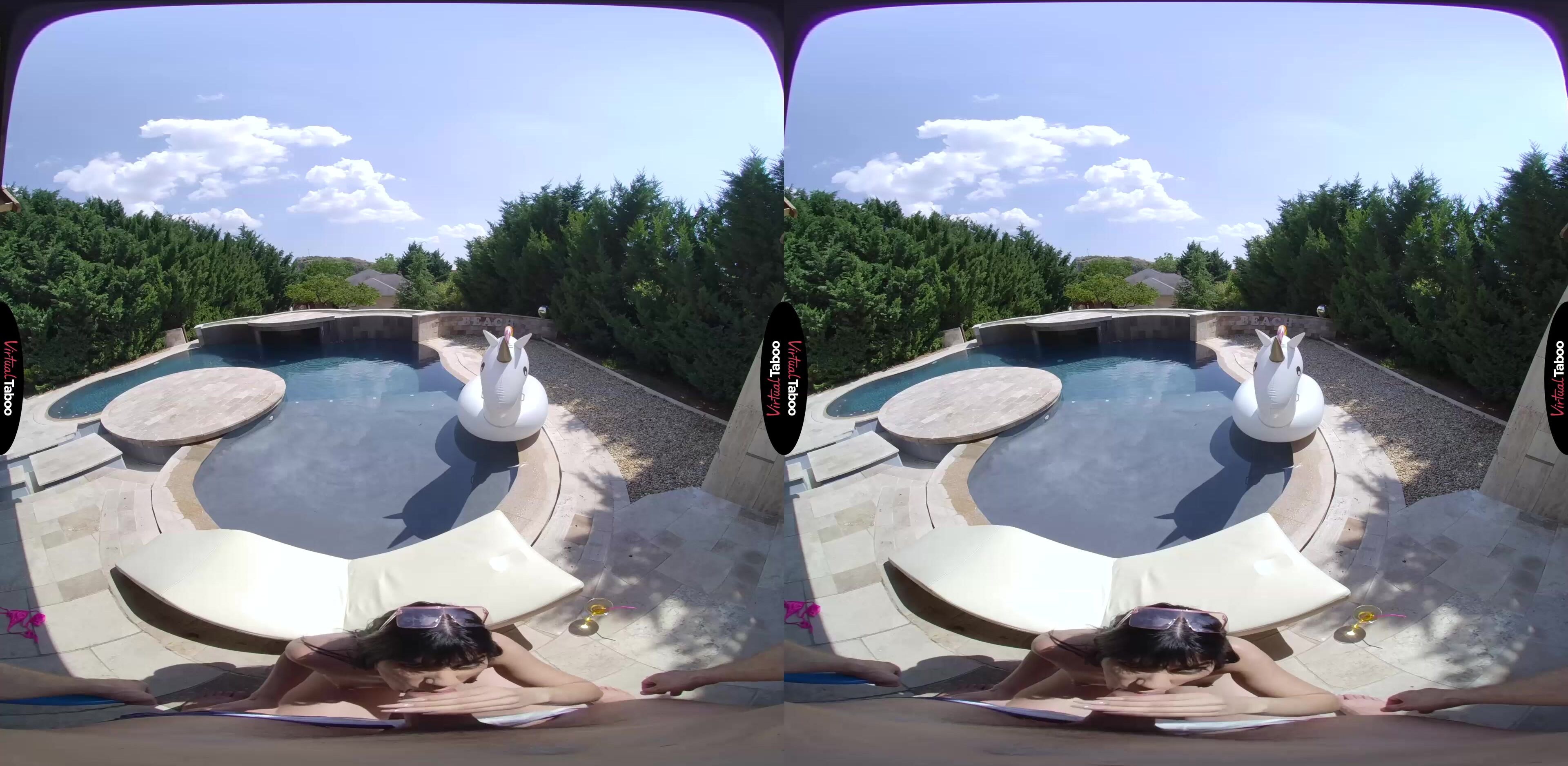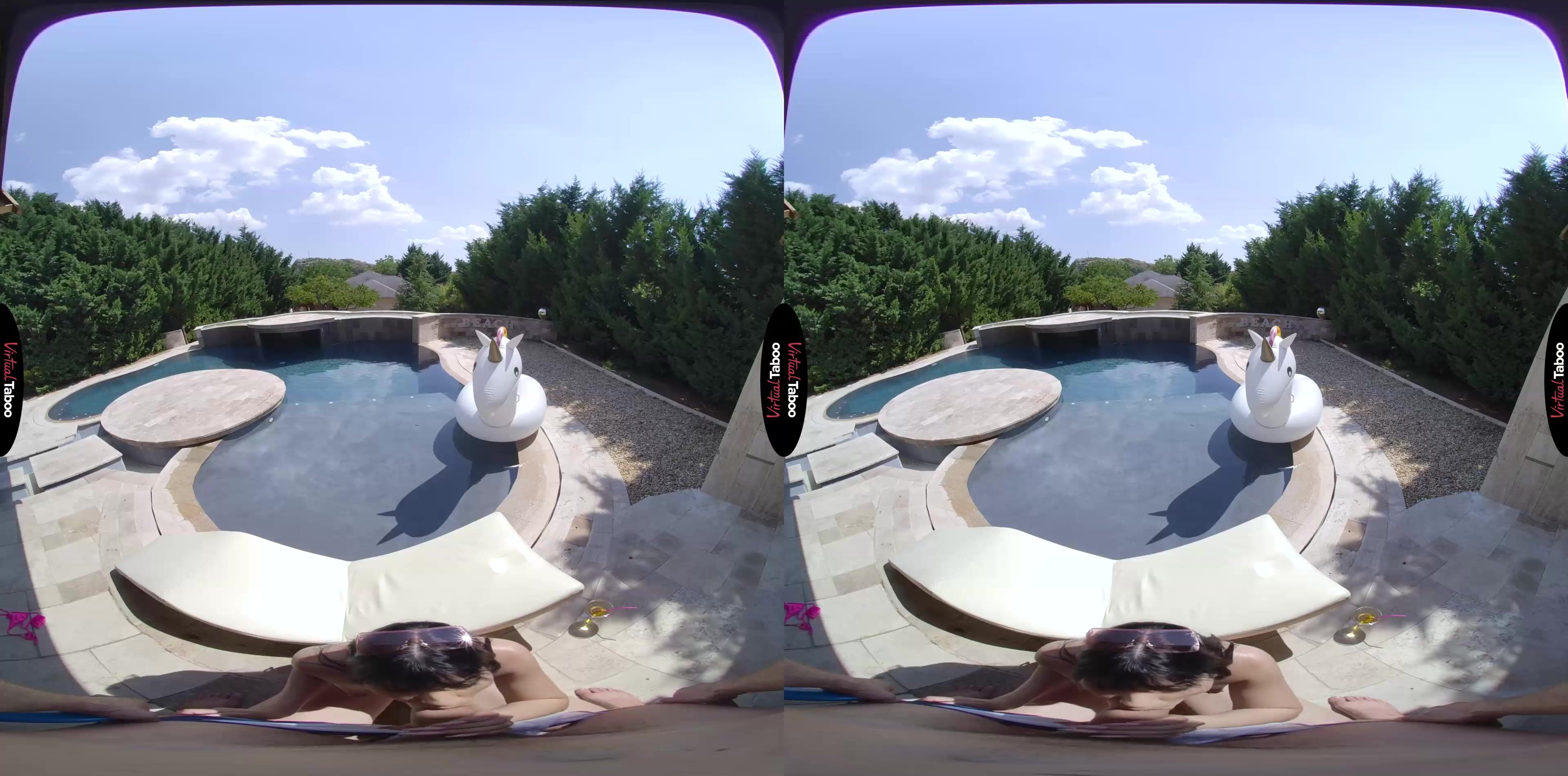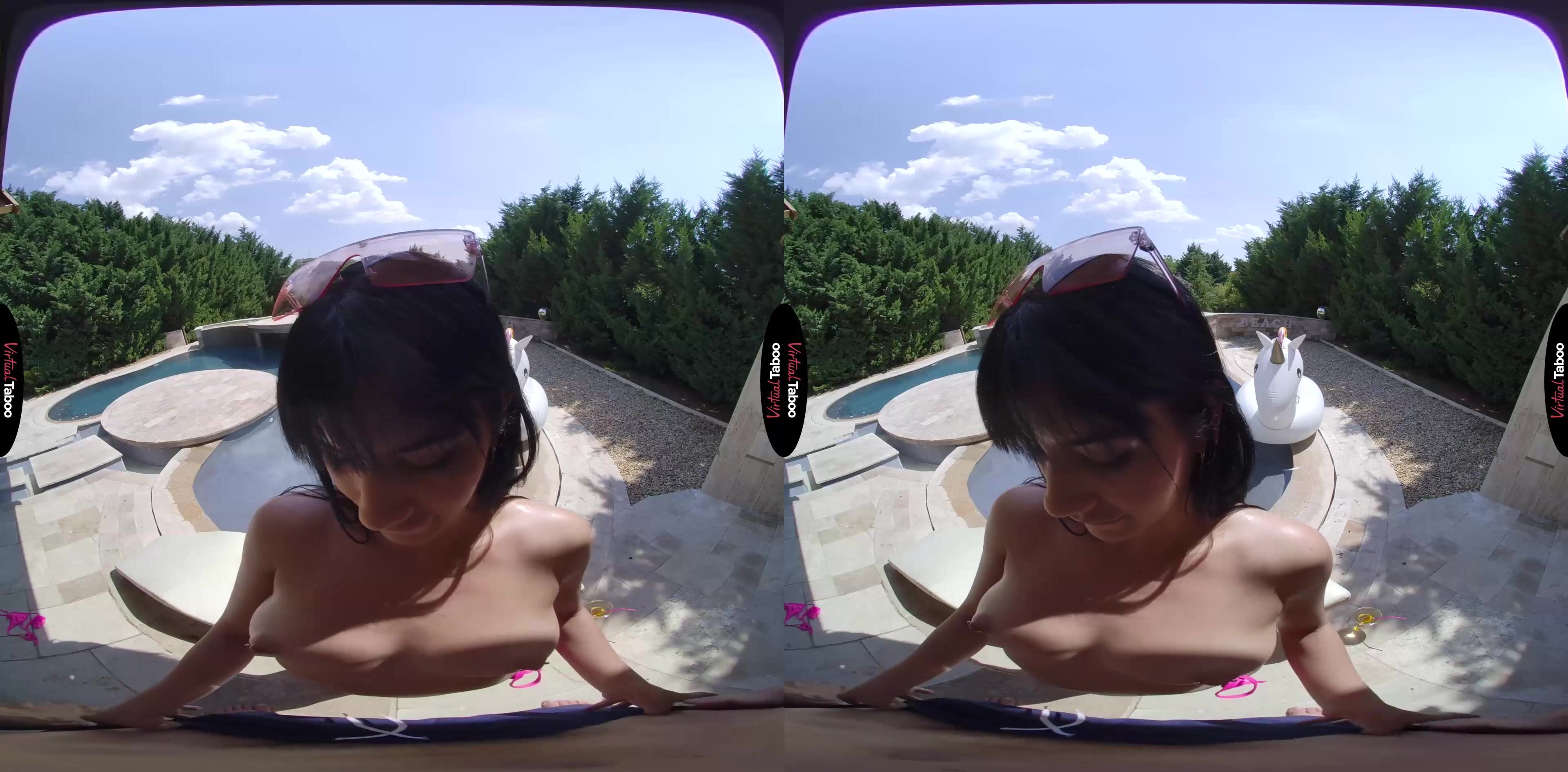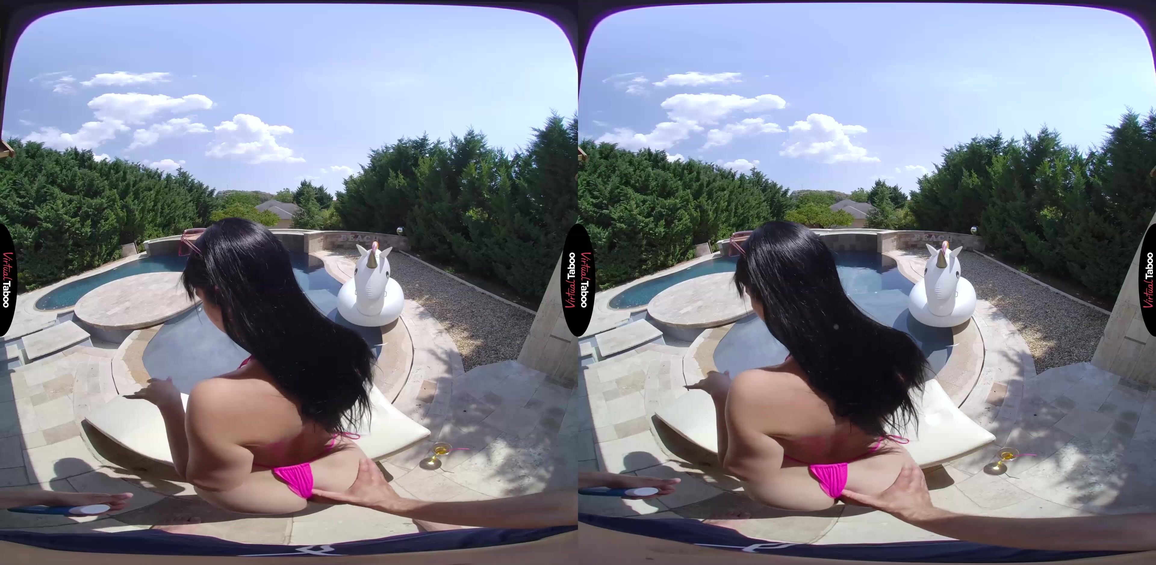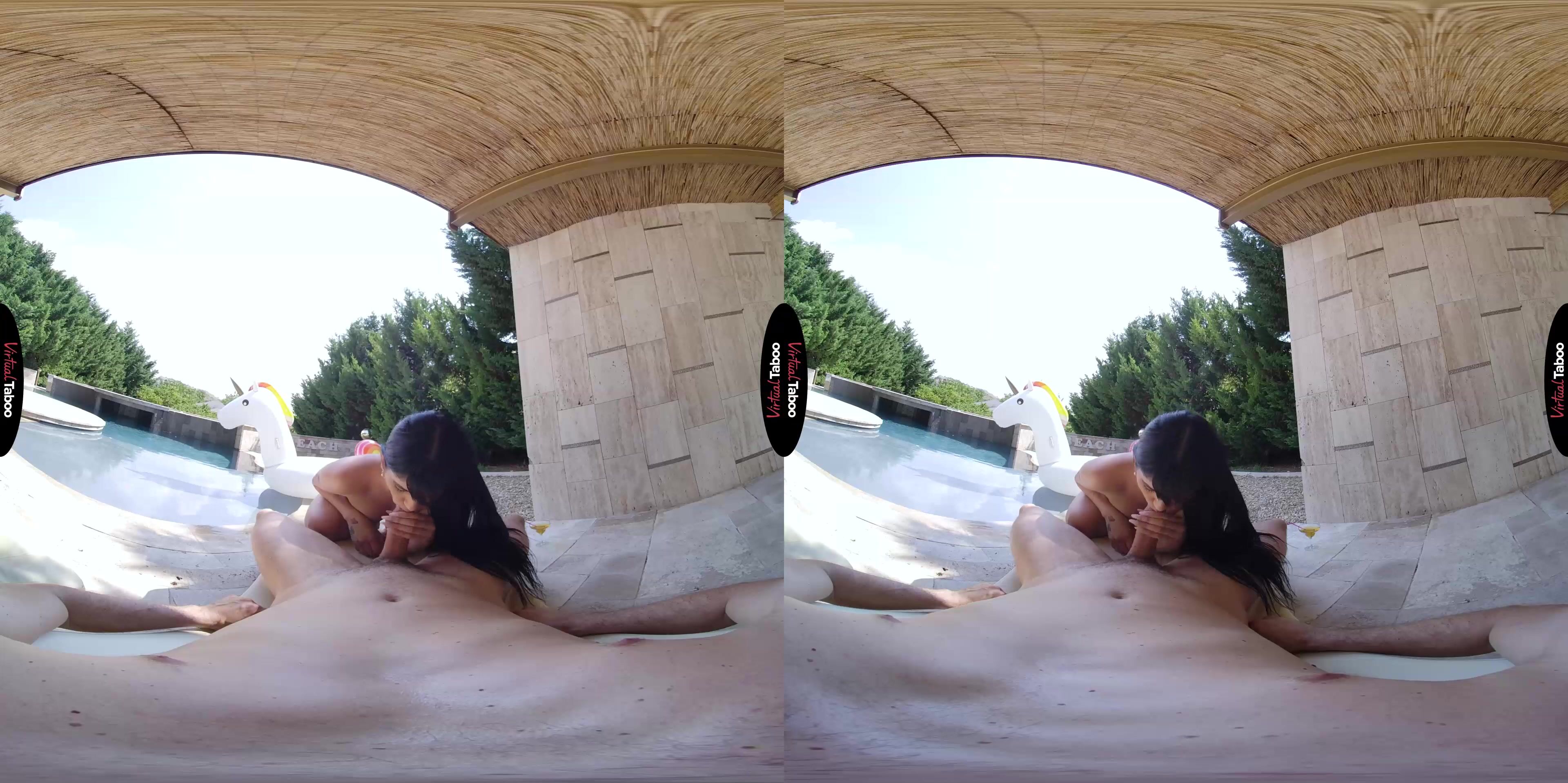 Yenifer Chacon has never really had any trouble meeting men. She is pretty, outgoing, confident and willing to do just about anything for pleasure. That is why her six-week dry spell was so odd. It really wasn’t that she couldn’t find a guy, it was that she had become obsessed with the idea that she might not have to leave the house in order to hook up. Ever since her father had married his fourth wife, Yenifer has been sharing the house with a brand new stepbrother. Though she had been quite promiscuous, she had never done anything so taboo and the idea taken from a recent VR porn video was driving her crazy. Settling in by the pool in a revealing bikini, she asked you to bring her a drink and then to apply some sunscreen onto her barely covered body. By the time you finished rubbing it into her cheeks, you were hard as a rock and unable to hide it. In this VR porn video, Yenifer let you know it was OK by pulling out her tits and grabbing your unit through your trunks. You are not about to say no to her when she puts your dick into her mouth and lubes it up for some intense fucking. You fuck her even better than she had hoped and have her screaming in the backyard in no time. She loves showing you how much she enjoys the taste of her own cum on your cock before stuffing it back inside to ride until she is completely satisfied. Yenifer knows from experience that men like cumming on her face so she sucks you until you explode all over her. Seeing the look in your eyes, she knows she will never have to leave the house to get laid again.