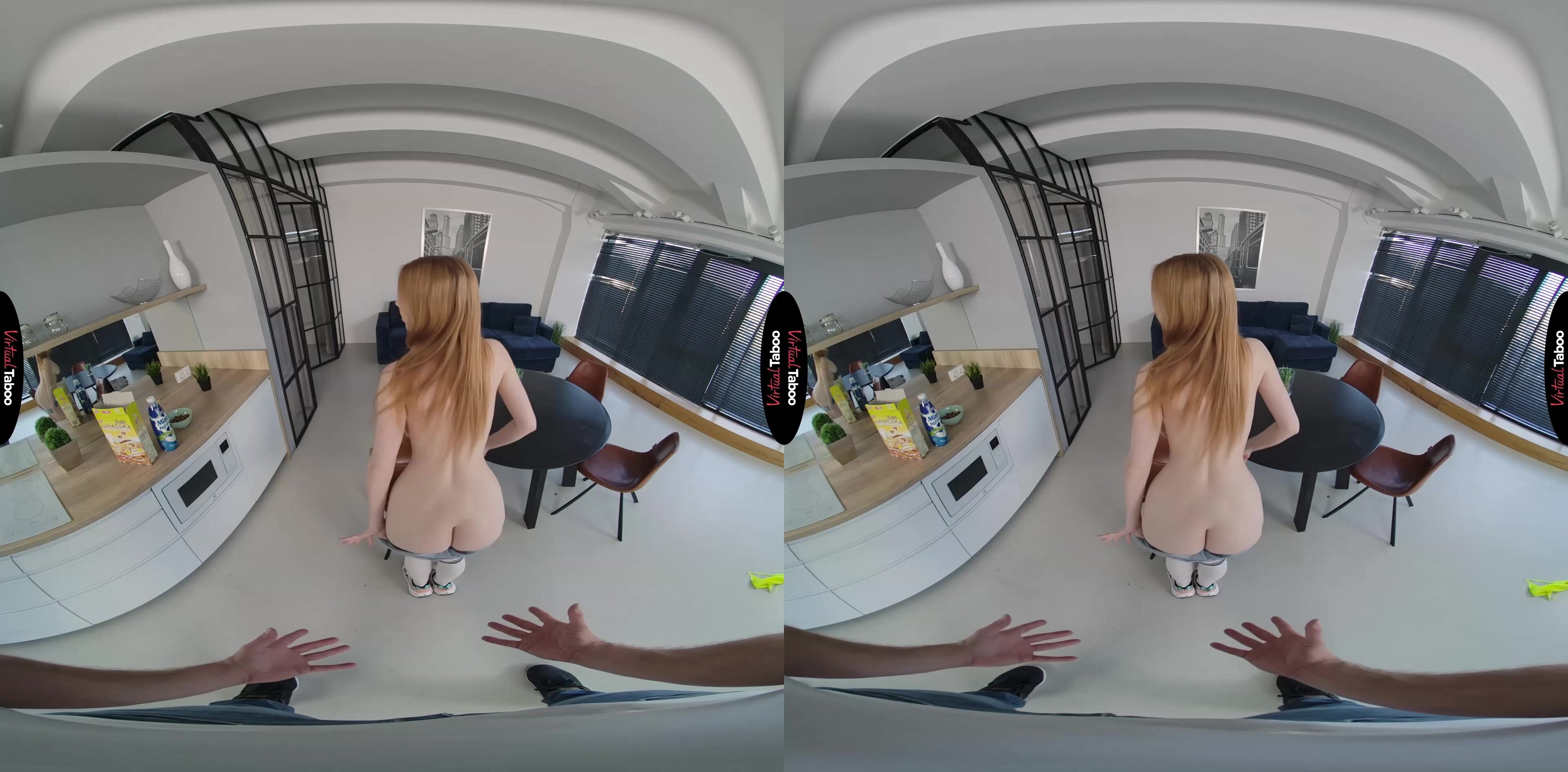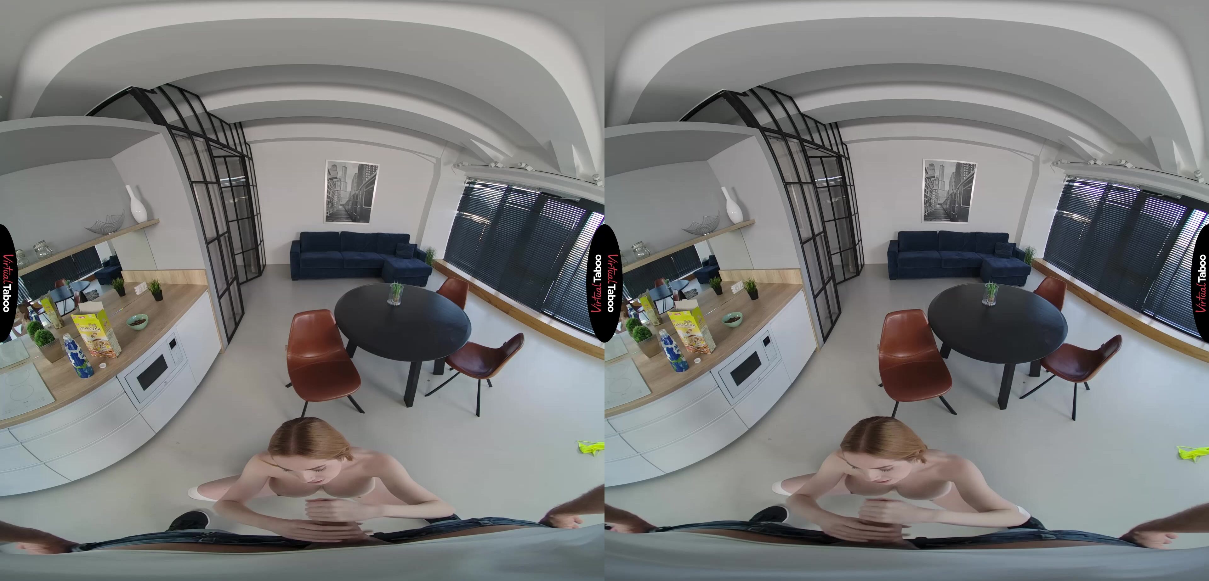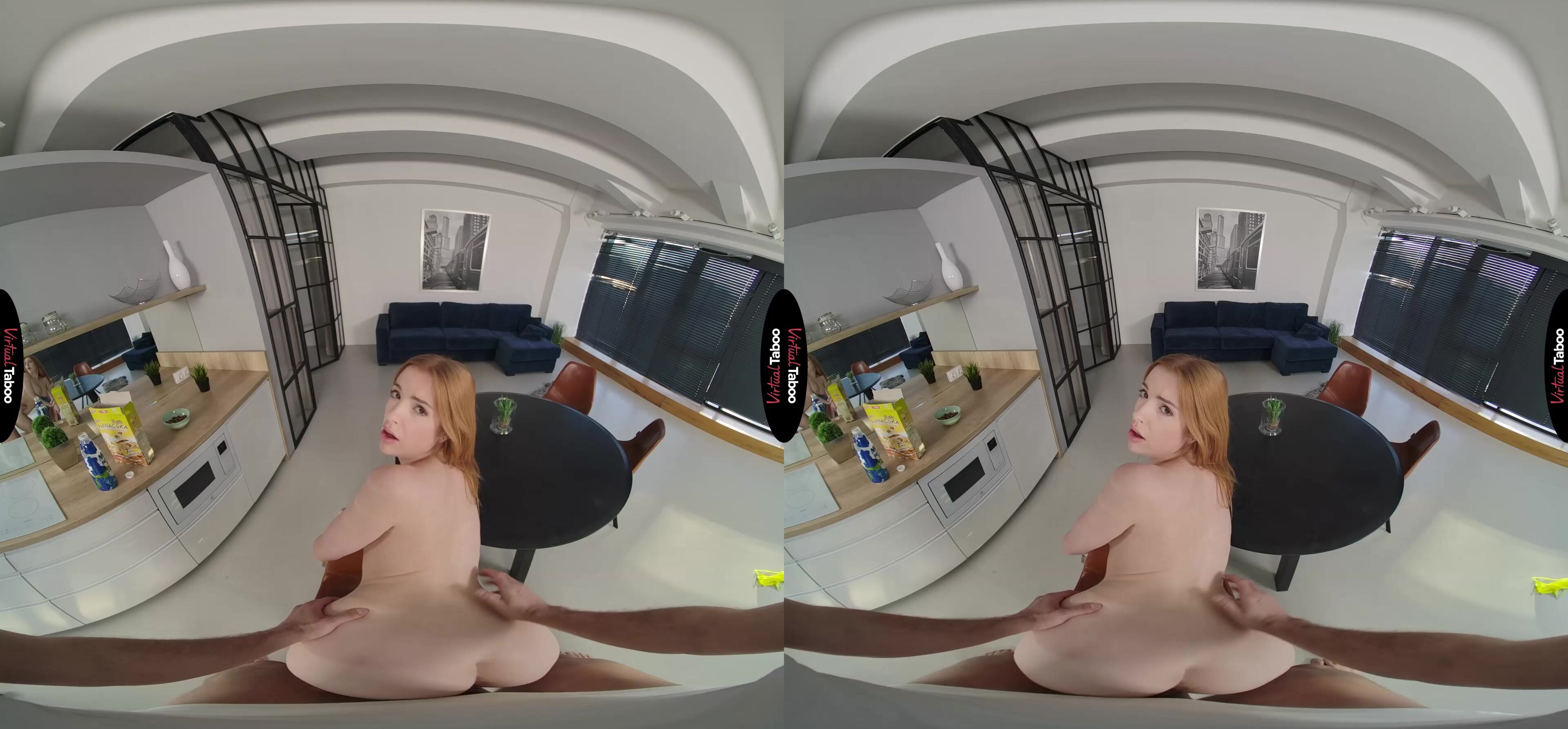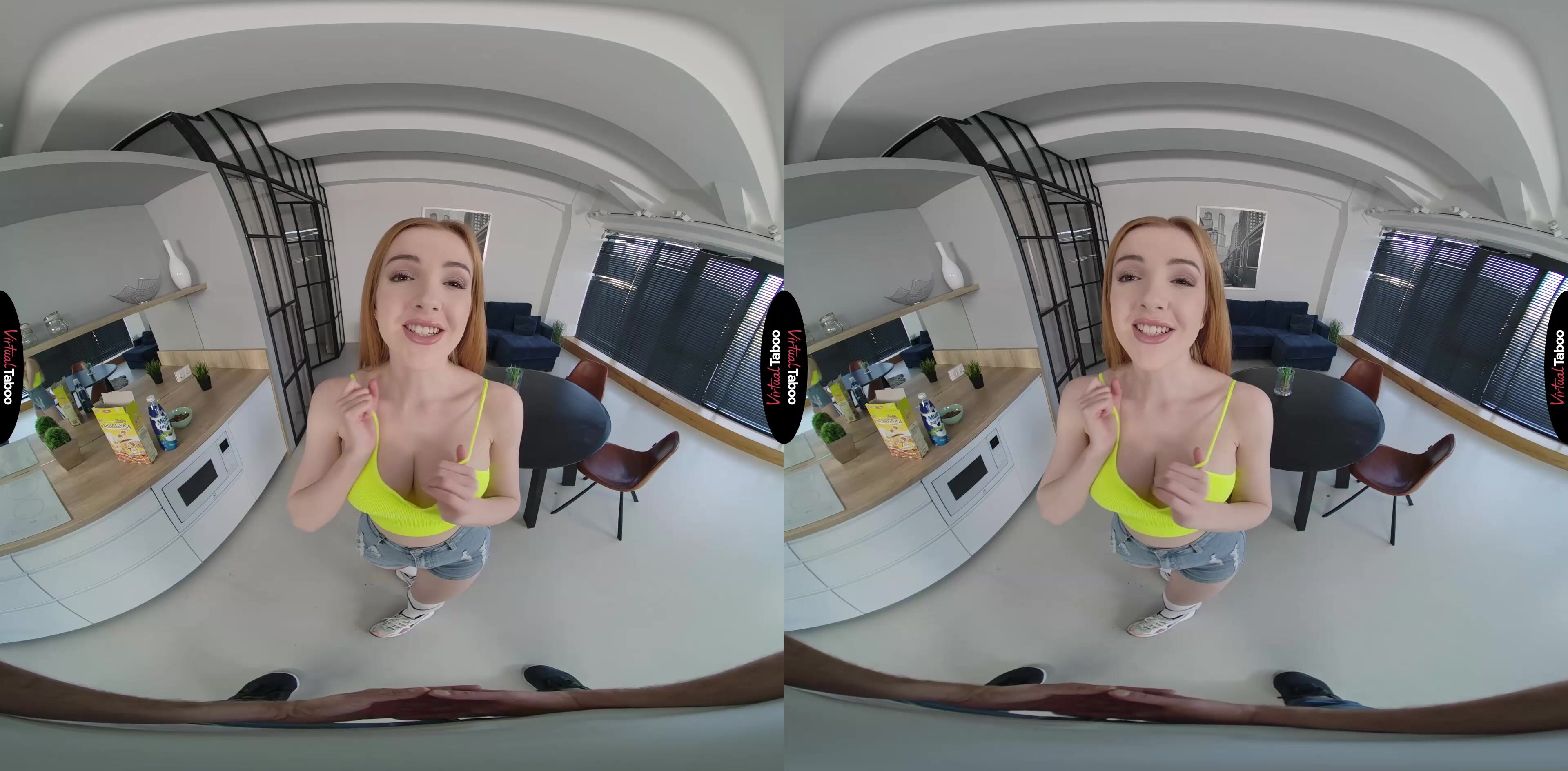 You wake up early one Saturday morning knowing that your father and his new wife are out of town for the weekend. That means you have the house to yourself which means plenty of privacy to enjoy some hot taboo porn on your VR headset with no interruptions. As you start to get out of bed you hear sounds from the kitchen. To your surprise, it's your new step-sister Scarlett Jones. She should be away at college, but instead, she is in the kitchen making breakfast. You are surprised and a little upset at having your privacy interrupted, but she looks smoking hot. Scarlett explains that she just had to stop by to do something special for you. You get the idea she means more than pancakes and eggs, but just to make sure you understand, she whips out her big tits and pulls down her shorts so you can see her cute ass. She has a crush on you and she knows you like her too. Now it’s time to do something about it. You don’t need any further convincing. Seeing her gorgeous naked body has your cock at full attention and Scarlet is begging to taste your sausage in no time. Your sexy stepsister gives you the best head you have ever had and you can’t wait to feel her pussy. It is even better than her mouth and she squeals with delight as you hit all of her hot spots. She loves bouncing on your big pole and you can hardly hold back when she creams all over you. Scarlet gets on her knees and asks you to feed her some special sauce. You plaster her face and then she tells you to get ready for a very long weekend.