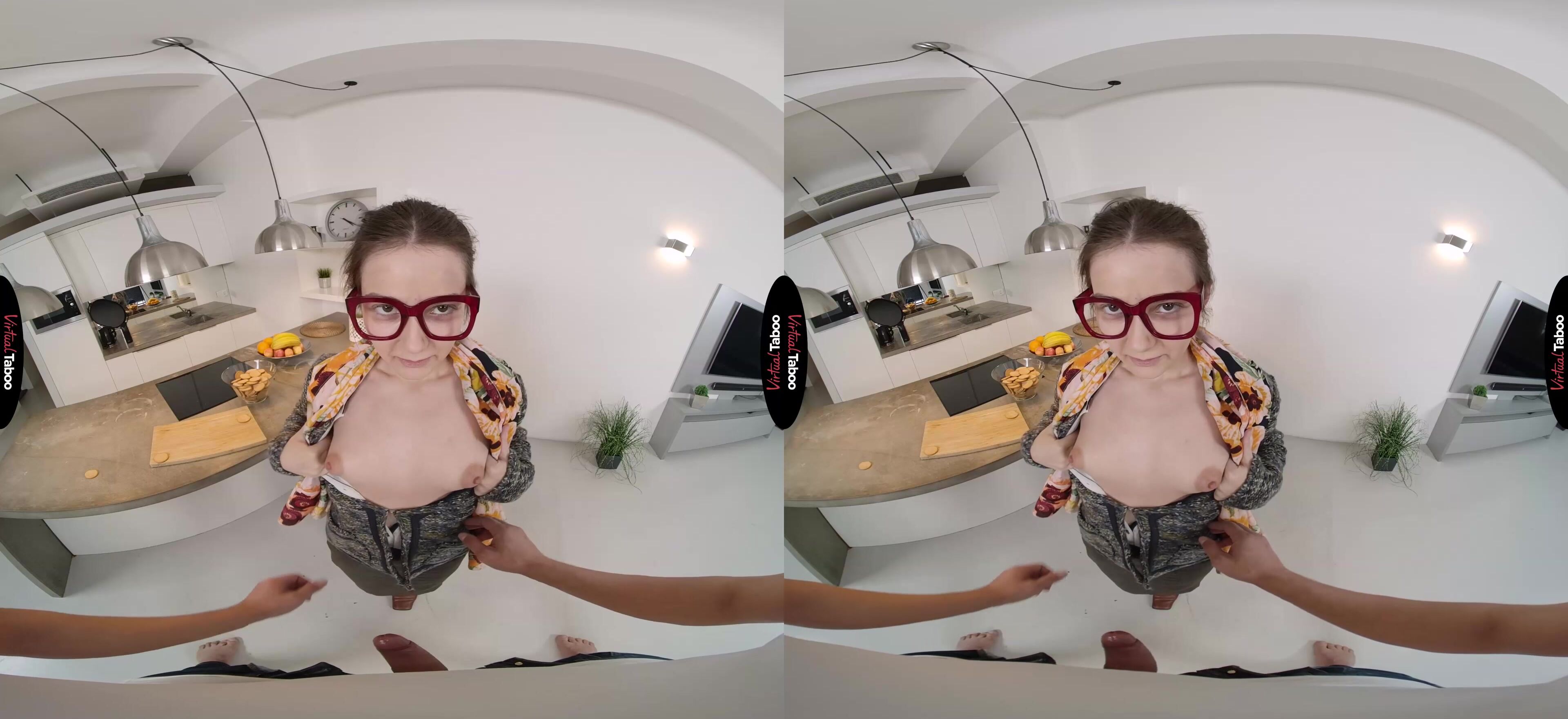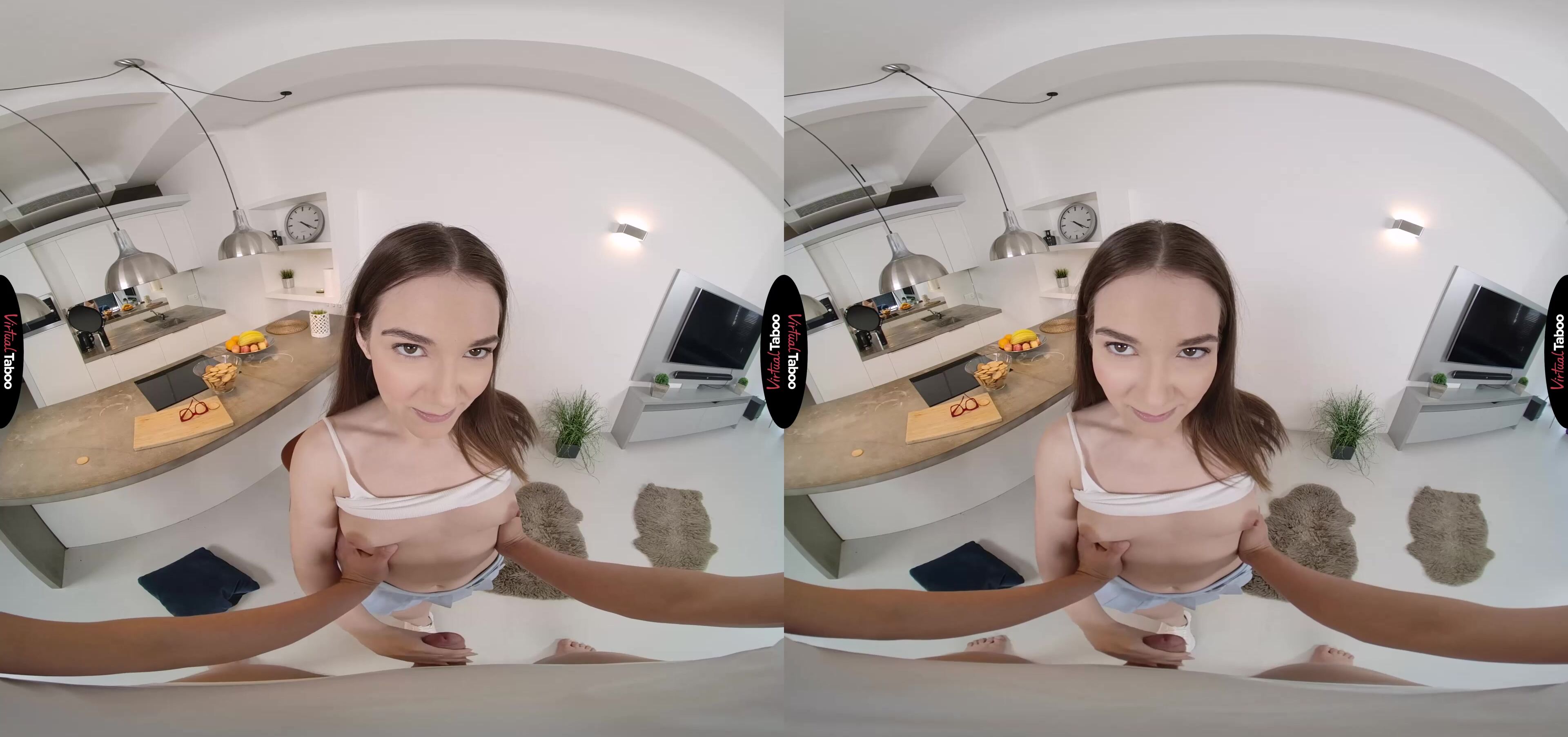 Simona Purr is pretty enough to get just about any guy at her college, but she has a huge crush on her stepbrother. They grew up together and he doesn’t give her even a second look no matter how hard she tries. She knows that you spend a lot of time watching VR Porn and one day decides to check your search history hoping to find a way to finally get into your pants. Simona is shocked to find out that you are only into granny VR porn. She quickly enlists the help of a friend who helps her with clothes and makeup to make her completely unrecognizable. When you come home, you think she is the new, quite old housekeeper and instantly pops a boner in your jeans. Flirting with you, Simona gets your cock into her mouth and gives you the best blowjob of your life before showing you that it was just your stepsister in a wig. Now that you have had a taste, you don’t want to stop and ask her to keep sucking your cock. She gets it good and wet before bending over and begging you to finally fuck her good and hard. Her VR fantasy is coming true and you are finding out that a tight nineteen-year-old pussy is even better than granny gash. Finally getting the cock she craves, the naughty teen cums all over your dick and then licks it clean before bouncing on it again. You had no idea that the hottest slut on campus was your little stepsister and that all she wanted was to drain your balls every day. You are happy to feed her a big load and won’t ever hesitate again.