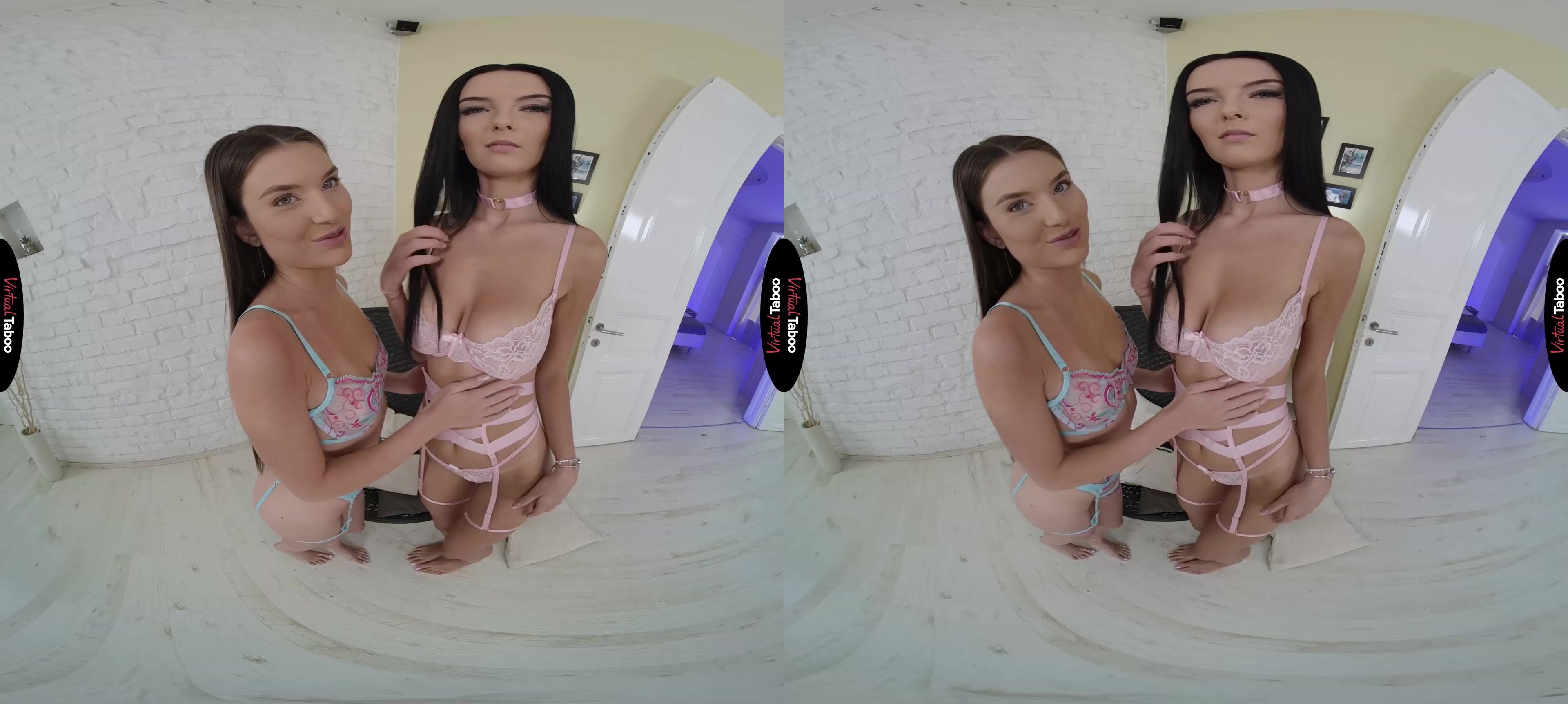 Your girlfriend Stefany Kyler is late for date night. She promised to bring something special over and you are getting horny since you haven’t seen her in a while. Just about the time you are ready to pop some pizza rolls in the microwave and pop on some taboo VR Porn, you hear her finally arrive. You are shocked to see that she is not alone. Your girl has brought on her friend Simon Kitty over and they are both nearly naked as they stand in the doorway of your bedroom. Stefany says that she has noticed you checking out her friend, especially her big, beautiful tits and thought you might enjoy a better look at them. She also explains that she and Simon are more than just friends and in fact have been dating even longer than you have been a couple and hopes you don’t mind having her join you for VR porn date night. Of course, you don’t mind. The girls are happy and start to play with each other, showing off their bodies and enjoying the look of desire they see in your eyes. Simon’s breasts are even bigger when she is naked and just as perfect as you thought they would be. They are also even sexier when they are in your pretty girlfriend’s hands or mouth. As they get more and more turned on, Simon whispers into Stefany’s ear. Your girlfriend smiles and tells you that she has told her friend all about your big cock and she wants to see it. If you take it out, they will make each other cum just for you. You are more than happy to join them and stroke to the image of your girl and her girlfriend fingering themselves. Nothing could be hotter. At least until the next time when they ask you to join them.