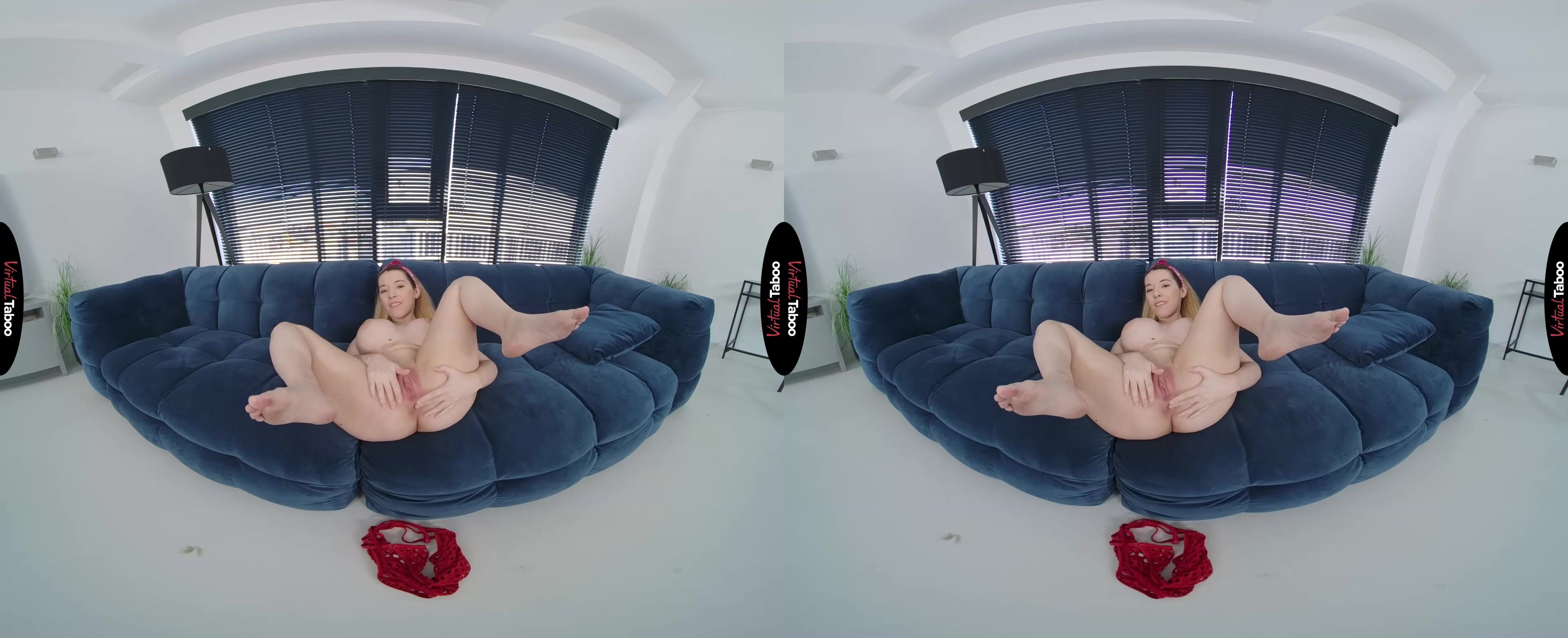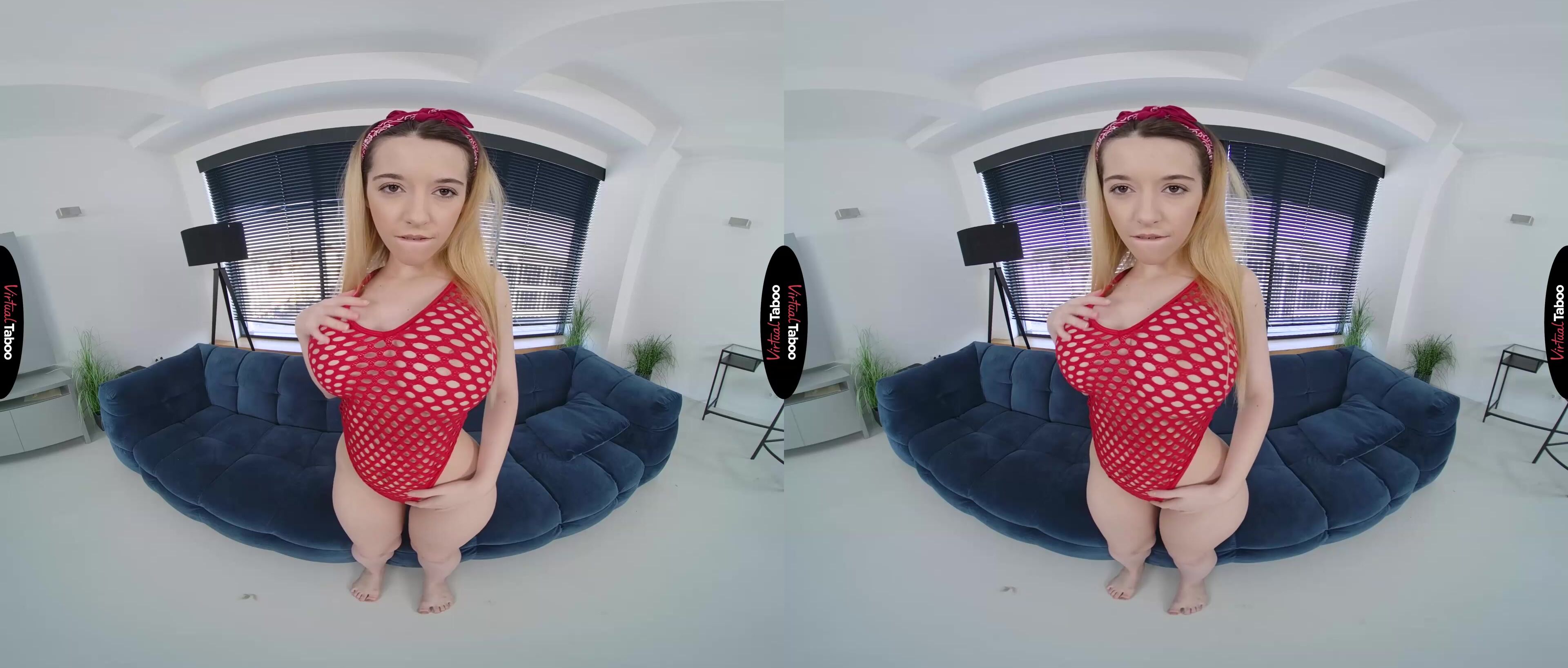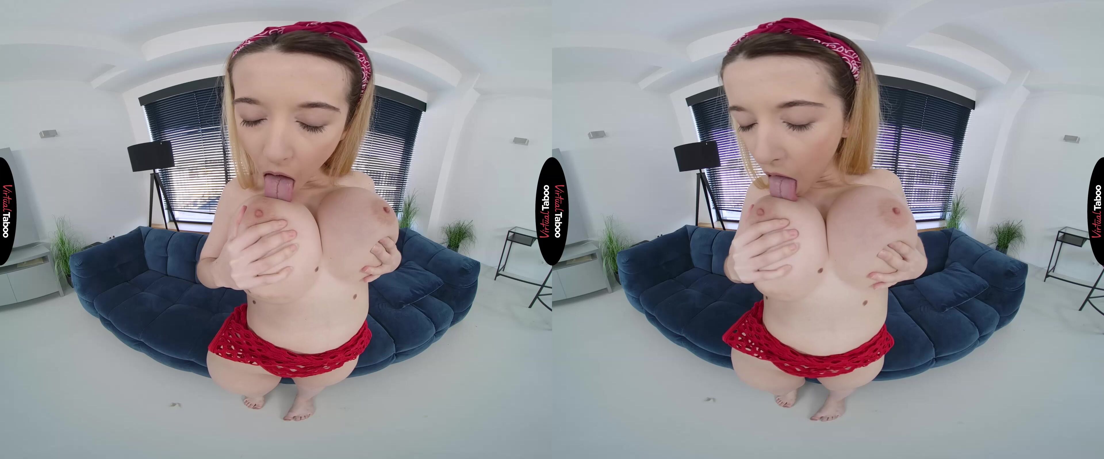 Safira’s once-thriving social media accounts have been a bit stagnant lately. No matter what topics she chooses, she just doesn’t get the views she got in the beginning. Turning to you for help, she desperately wants something that will bring people back. You are hesitant to make a suggestion at first, but she really wants your honest opinion. Finally giving in, you give her your idea for more followers. She needs to take full advantage of her best assets, namely, her big, amazing titties. Safira is shocked to hear you talk about her body like this, but she knows you are right. Her tits are big and all the guys she has ever met love them. Maybe it’s time she did some VR porn taboo content that shows them off. As soon as she agrees, you run to your room and bring her an outfit that you think will be perfect. Squeezing into the red swimsuit, she can feel it pushing her tits up and out, accentuating her curves. She looks like a real VR porn model in this sexy outfit. You immediately agree to shoot some pictures for her and Safira laughs as she sees that your cock is rock hard inside of your pants. Posing turns her on almost as much as it does you and she decides to be bold. Popping her boobs out, she tells you to keep shooting, but only if you will show her that big dick of yours. Seeing you stroke your cock while shooting pictures makes her horny as she imagines all of her fans looking at her new pictures and jerking off. She gets completely naked and shoves her fingers into her horny pussy. She can’t wait for all of her fans to see her this way and stroke like mad, just like you. Maybe if she is lucky, you will fuck her for the next update.