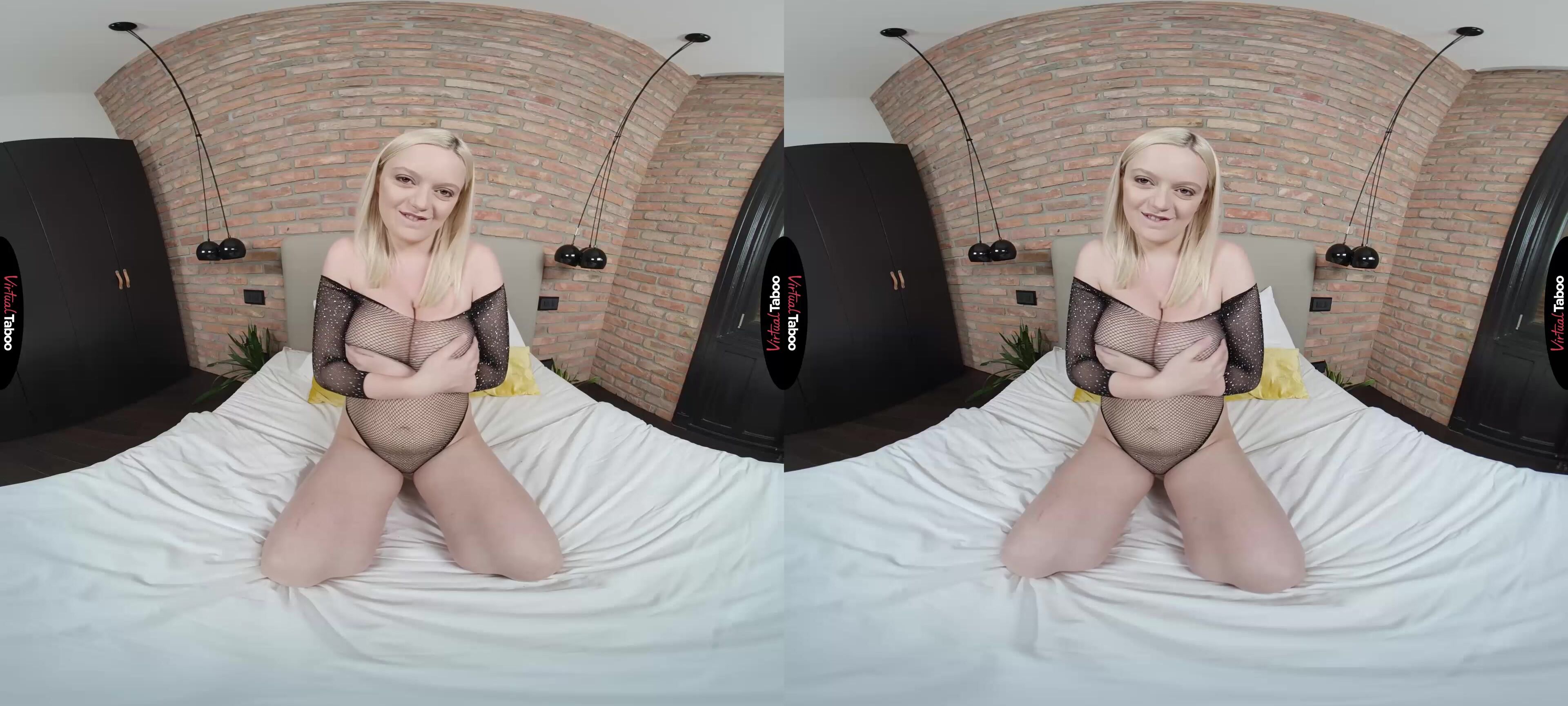 You have been away at college for almost a full semester now and are really missing home. A month back in your own bed, hanging out with your friends, watching some hot VR porn movies and spending time with your girl is exactly what you need. Your stepsister Sandra Sweet has apparently missed you as much as you have missed home. As soon as she arrives, she greets you in a see-through outfit that leaves her big, bountiful tits on full display. She looks like a sexy VR taboo porn model. You are shocked, but she wants to play. Even though it was only one time, she remembers when you hooked up and wants to see if your big hard cock misses her as much as she has missed you. You try to avoid the drama this might cause by reminding her of your girlfriend, but Sandra shakes her sweet knockers and tells you that she knows you can’t resist them. Now that she has your attention, she leads you to your room and tells you that you can see more if you show her some appreciation. Your naughty, busty, blonde stepsister wants to see that cock at full attention. She smiles when she sees how hard you are encouraging her to forget about seeing your girlfriend. Why leave the house when you can stroke hard to her hot body? Once she gets naked, Sandra plays with her pussy, but she knows it is her tits that have been on your mind while you were away. Pushing them together she reminds you of how your dick slipped between them for a fantastic titty wank. She wants it as much as you do, but first, she wants to watch you cum while she fingers herself. Welcome home big brother, now you better cancel your plans with that girl of yours.