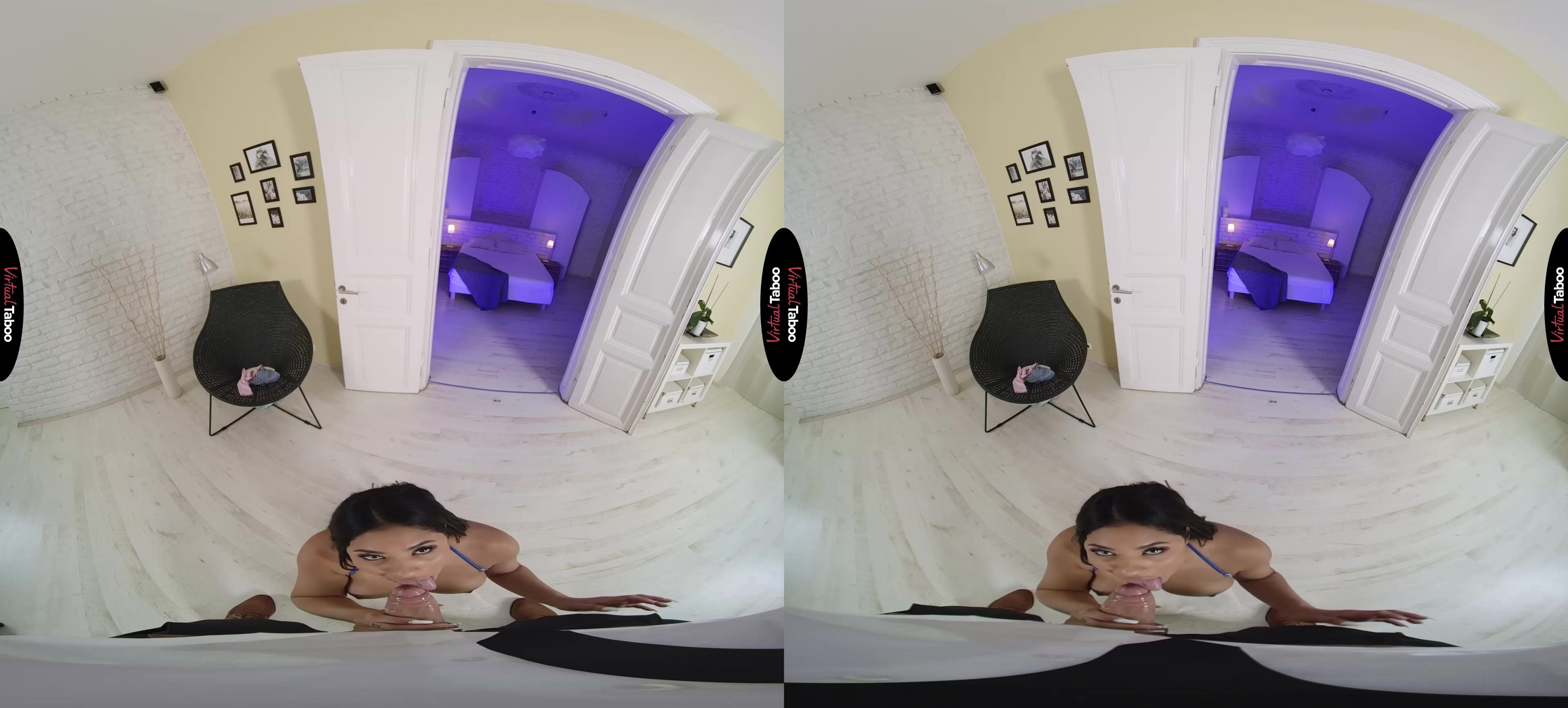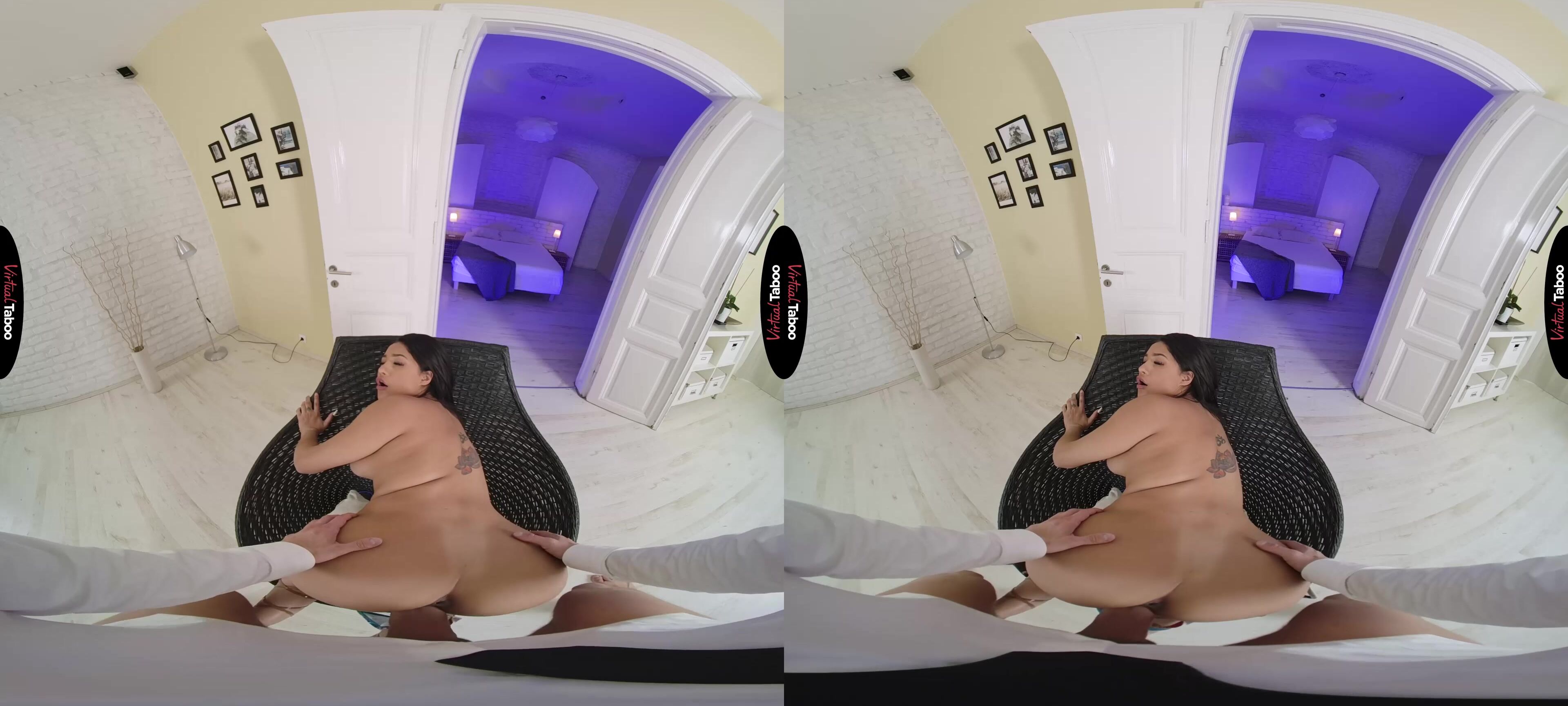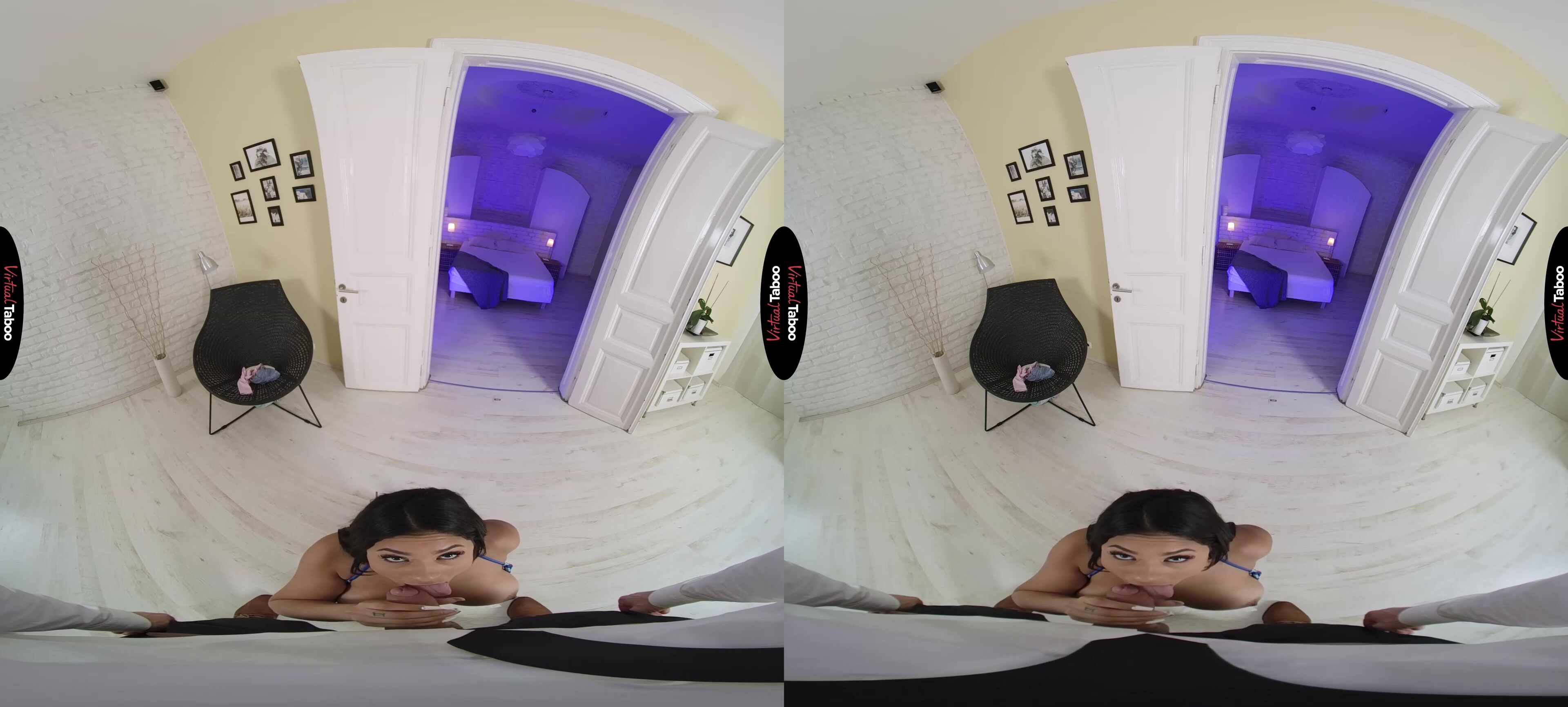 Getting ready for her first vacation in a long time, Serena Santos is looking forward to long days on the beach with fruity drinks and long nights in bed with sexy studs watching hot VR porn movies. Knowing that she needs to look hot for both, she is struggling to pack just the right bathing suit. The only one home is her stepfather so she asks you which one she should bring. She is shocked by the look on your face and instantly recognizes the desire in your gaze. Deciding to go with it, she asks if you need to see them on her in order to make a proper decision. She slips into the skimpy bikini and leans into the teasing, arching her back and wiggling her ass until you can’t take it any longer. In this VR porn movie, you pull out your cock and Serena pretends to be shocked. She can see how big and hard he is and asks if she can suck your cock if you promise not to tell her mom. You agree and immediately feel her warm wet mouth around your dick. Serena loves it. She wanted to get attention in her bikini and if it makes you this hard, it is going to work wonders on the hot guys at the beach. Sucking is fine, but they both want more and she pulls her bottoms aside to give you full access to her tight wet twat. Serena has heard her mother screaming in the bedroom and now understands why. You give her long strokes and hit all the right spots. It’s so good that she doesn’t notice as you shoot your big load in and around her pussy. Too late to worry about that, but she is already thinking about how she can stay in on vacation and get more of your dick.