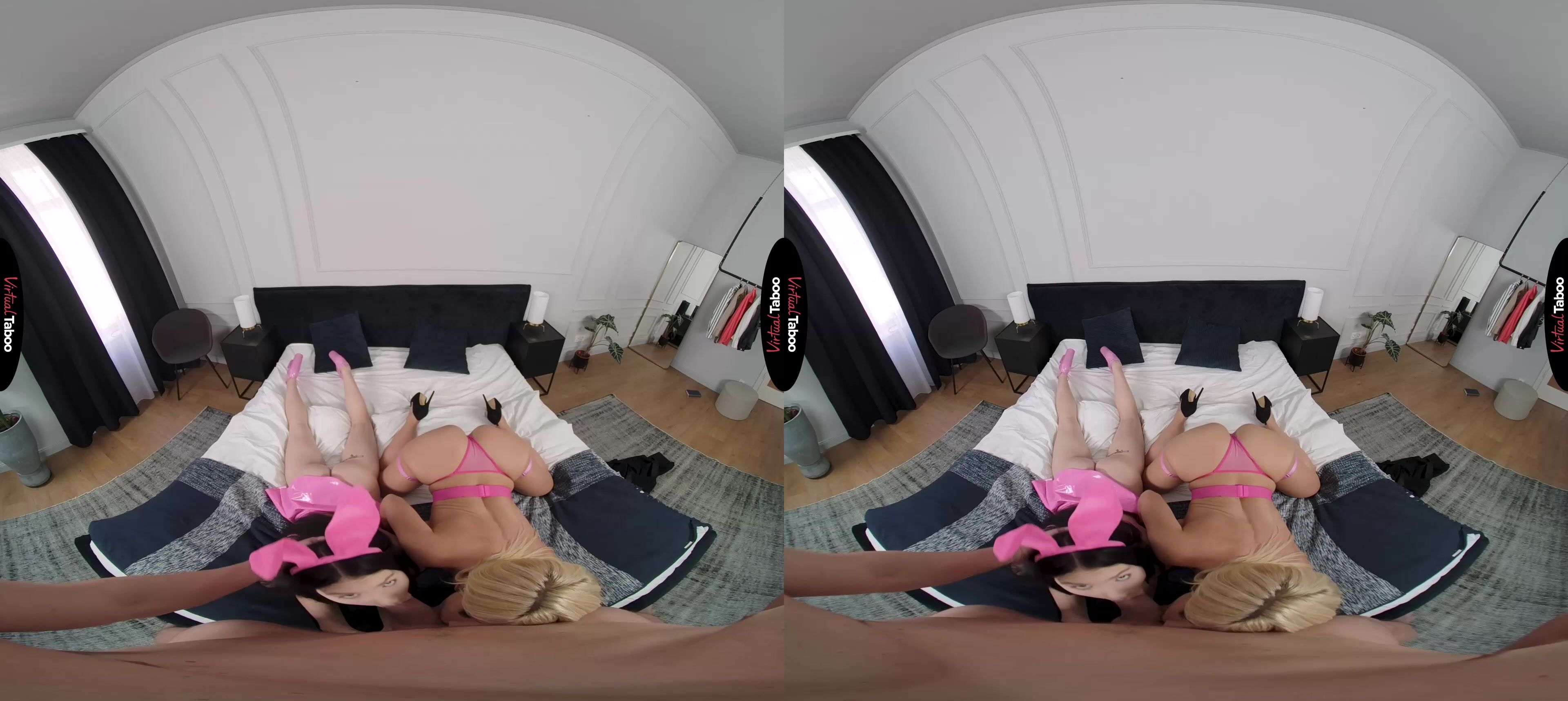 Tiffany Rousso is a respected teacher and to make some extra money, she does private lessons with some of her former students who struggle adjusting to college. Many of her students have grown into quite handsome young men and just as many have had crushes on the beautiful blonde. She tries to ignore their looks and obvious attention, but her new stepdaughter is a little less restrained in the presence of these handsome studs. When Matty sets her sights on one of Tiffany’s students, she finds ways to distract them from their lessons. One of her favourite moves is to peek in around a door in a sexy outfit to steal their attention. In this VR porn, she is shocked to see Tiffany open her dress and show you her sexy, mature body. Stepmom beat her to the hot young meat. When she finds her stepdaughter teasing you, Tiffany isn’t upset. In fact, she thinks the idea of a VR taboo threesome with her stepdaughter is pretty hot. You follow her into the bedroom where you all get naked. Your dick is already raging hard as your busty blonde tutor puts it into her mouth. Matty gets a taste too but has to wait her turn while stepmom samples the young stud’s powerful strokes. Tiffany breaks out her big tits for a few tricks that her petite stepdaughter just can’t match. Matty uses her tight pussy to keep your interest though and almost makes you nut inside of her. Instead, Tiffany takes over and rides you until you explode in her pussy. Next time, lessons in anal sex and Matty is invited to that session.