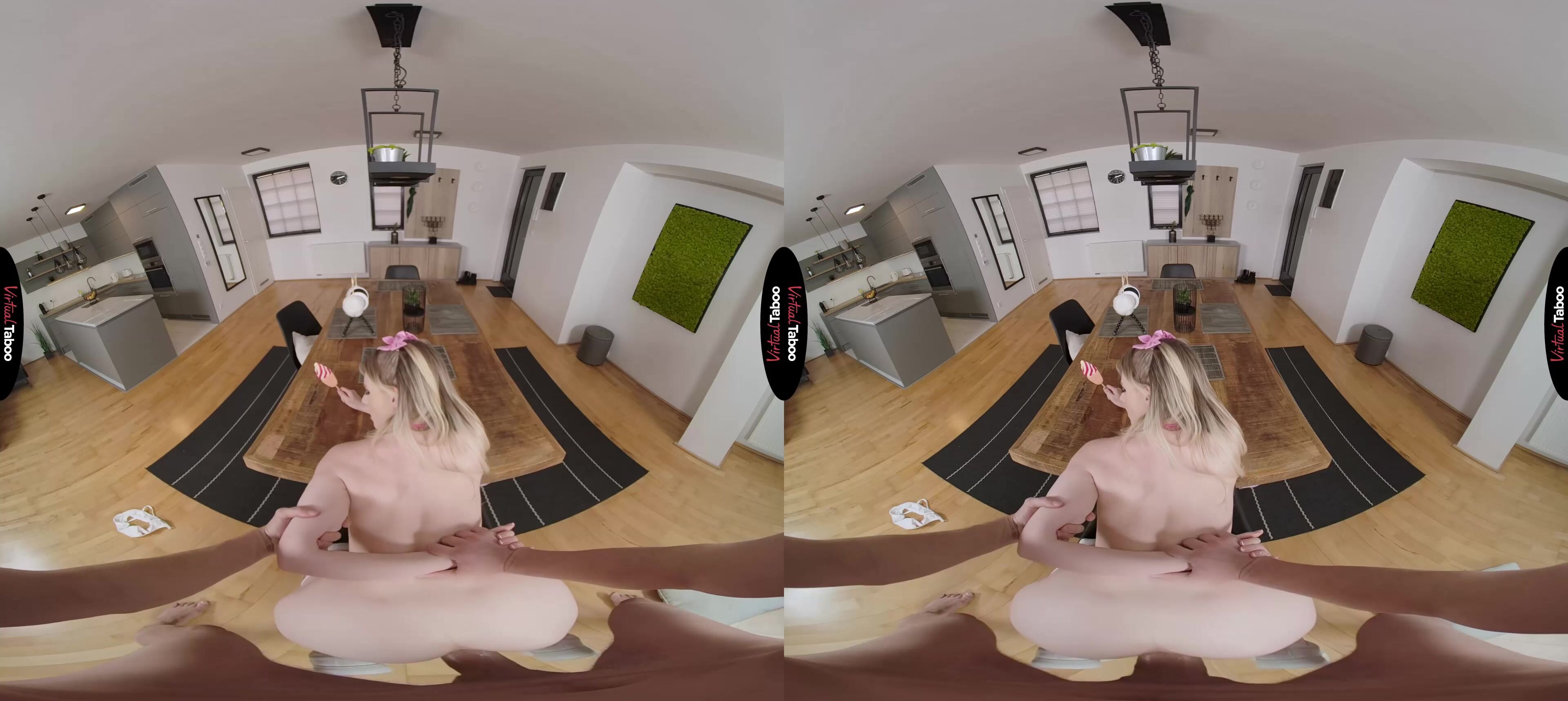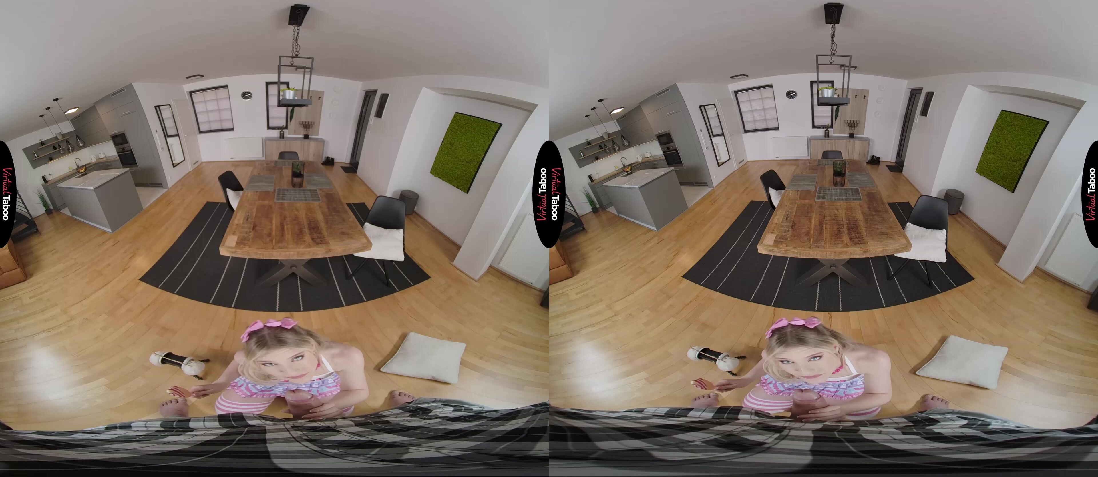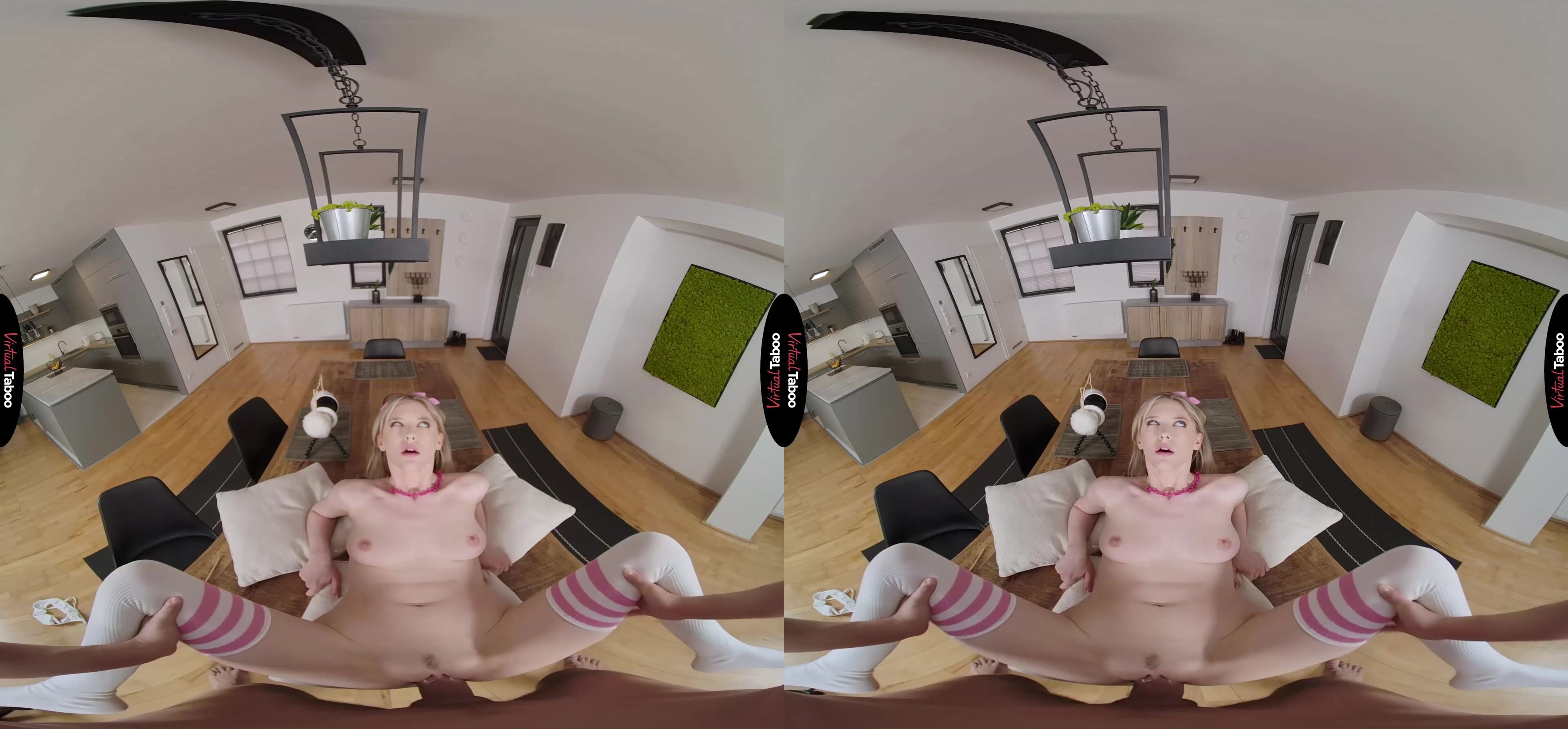 Melody Marks is an industrious young coed. She has figured out a way to monetize her sex appeal without leaving her home or letting any of her customers ever see her. While many of her friends have turned to camming, Melody uses her sexy voice to record ASMR videos for customers all over the world. Even without seeing her, they love the things she can do with her mouth and keep her busy with new orders daily. She loves licking things and whispering naughty things while thinking about strangers jerking off to her dirty mouth. Melody enjoys it so much that she even gets dressed up in slutty outfits to record her new fantasy material. Then one day her equipment stops working, putting her whole operation in jeopardy. She knows right away who to call for help. Her stepbrother is always in his room messing with his VR Headset. You are happy to help but shocked to see her dressed like a bratty little VR taboo pornstar. You love what you see but just don't get ASMR. Melody starts explaining it, whispering in your ear until your raging boner is obvious through your pants. Now that you get it, she realizes how big he is and wants to give him a try. It doesn’t matter at all that you are her stepbrother, she starts recording and makes sure to slurp loudly on your dick. It is going to make for great content, but right now she cares more about getting fucked. You bang her from behind while pulling on her pigtails. She shows you the other sexy sounds her mouth can make by talking so dirty that you are ready to cum in record time. She loves watching you lose control and tasting your load as she blasts her pretty face. She has tech support any time she needs it and you have your own little fuck brat to play with.
