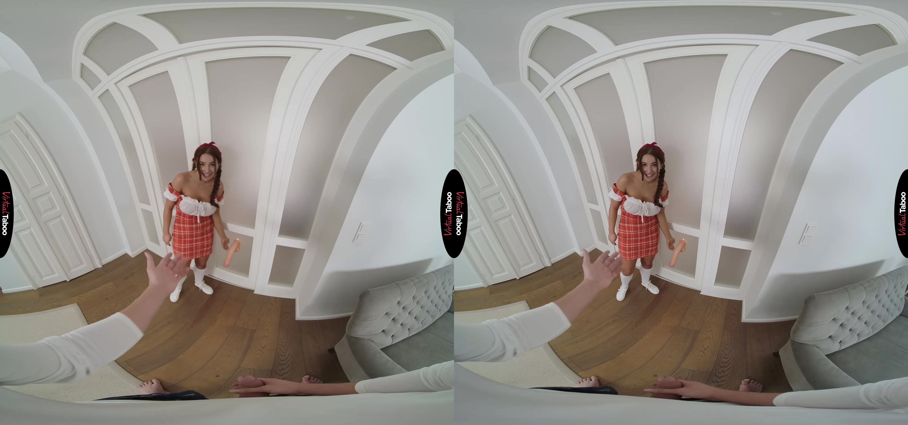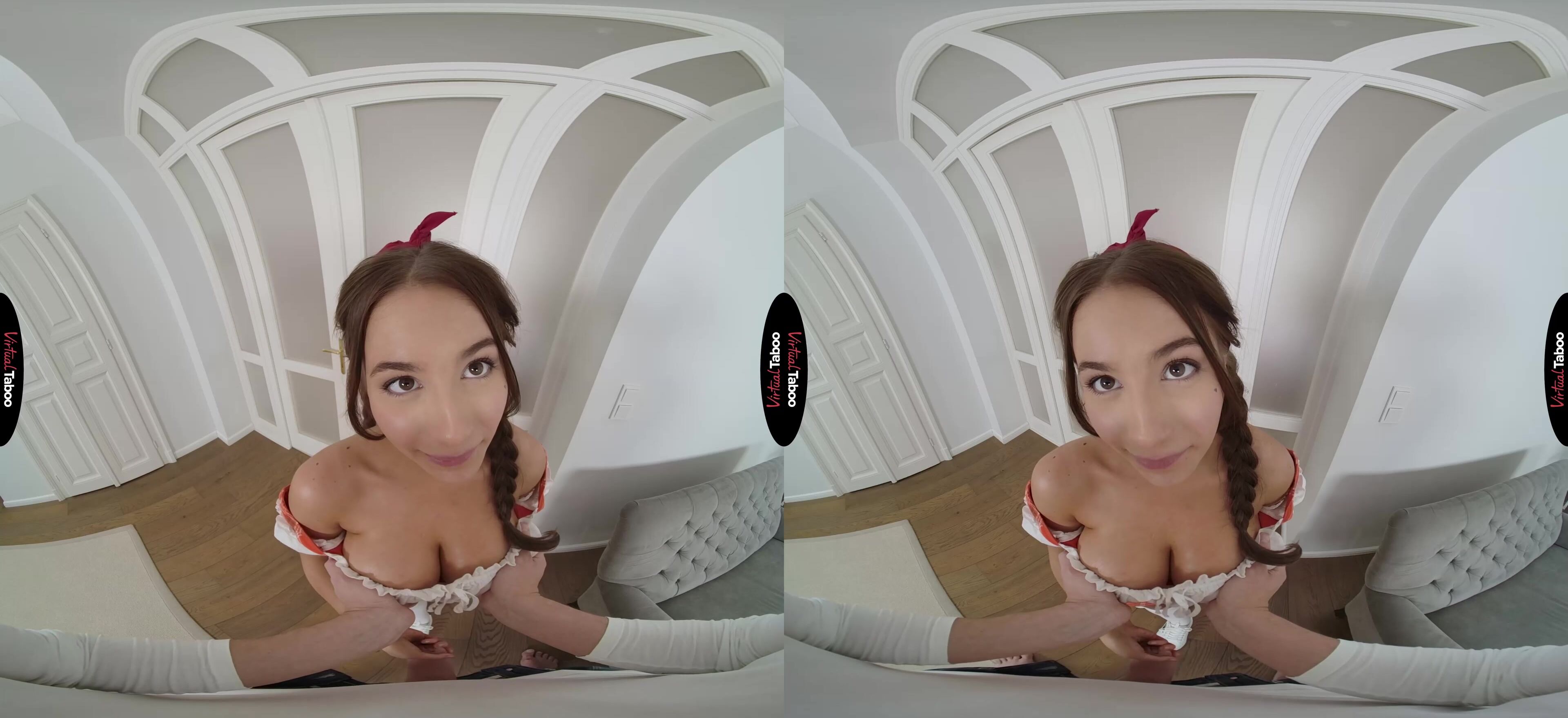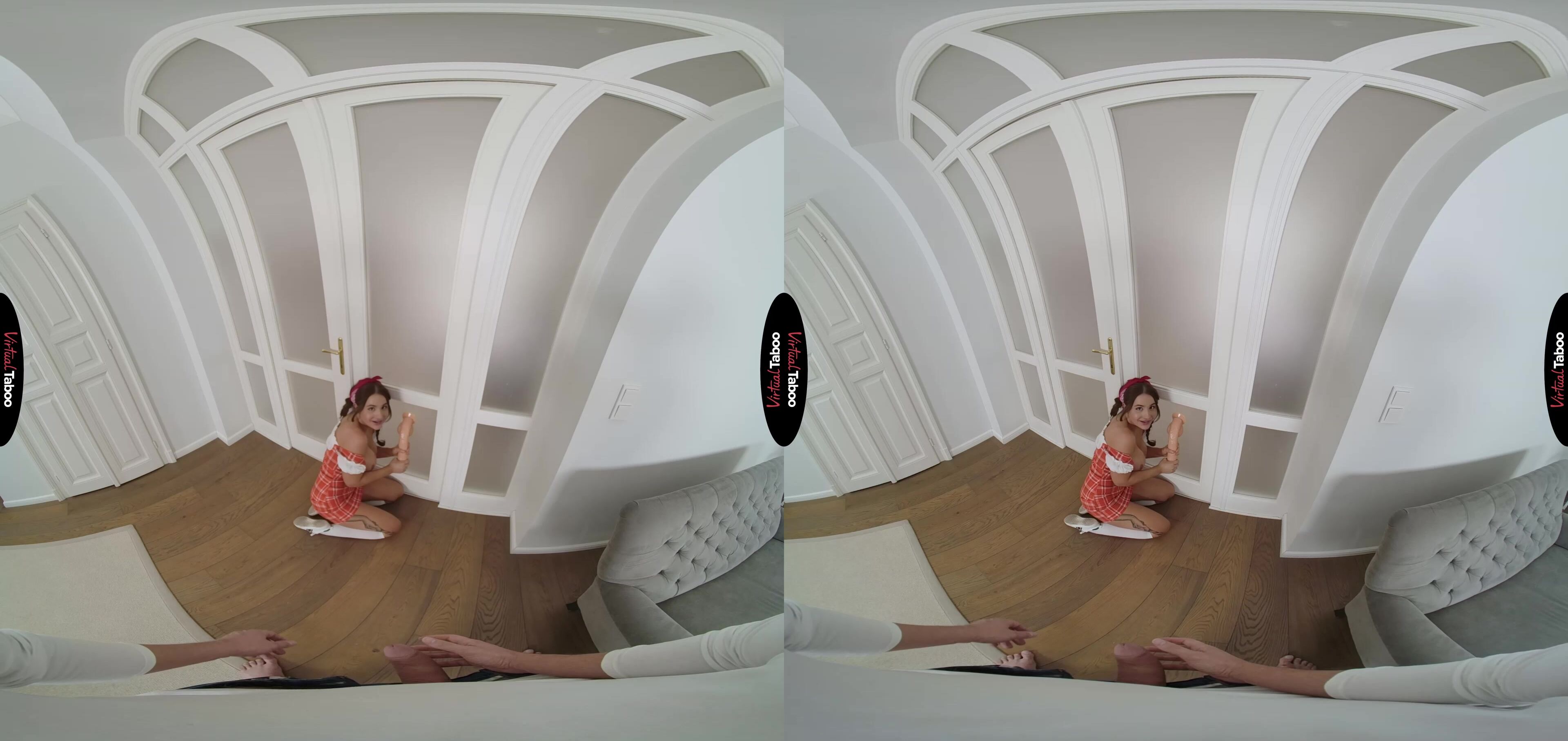 Atlantis Deep VR is a sexually adventurous young woman. She loves fucking guys, girls and masturbates with her favourite toys every chance she gets. One day, she got curious to see what her mom might be hiding in her special drawer and found the biggest dildo she had ever seen in her life. The thing was as big as her arm. Was it possible that mom was a size queen too? Atlantis just had to try that thing. Had to feel it in her, to see if she could take it. Sneaking it out of her mom’s room, she uses the suction cup to position it on the wall at just the right height to get on her knees and try sucking the massive head. While she is trying her best to suck it, her stepbrother walks in and can’t believe his eyes. Your pretty stepsister looks like a naughty VR Pornstar taking on that massive dong. She is horny and ready to so when you reach out to grab her tits, she lets you, smiling at the bulge in your pants. A real dick is so much better than a toy so she puts her lips around him and starts sucking harder than ever before. You spin her around and fill her wet pussy with deep, hard strokes. The real thing is so much better than a cold rubber toy that she loses herself while riding you. While cumming hard, she fails to notice that you too are climaxing, shooting your load into her tight hole until it drips out all over both of you. As angry as she is at you for dropping your load inside of her, Atlantis can’t wait to fuck your dick again.