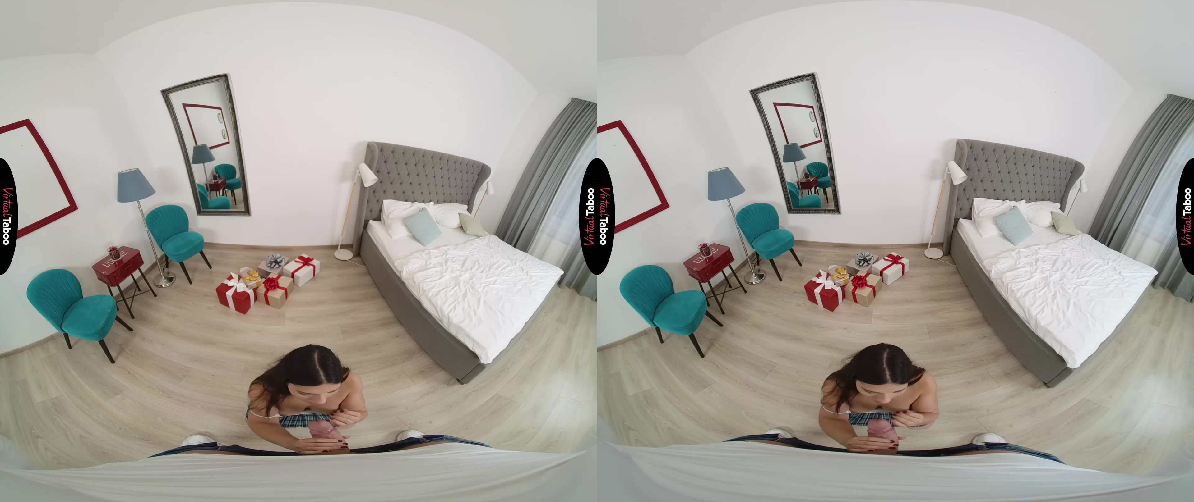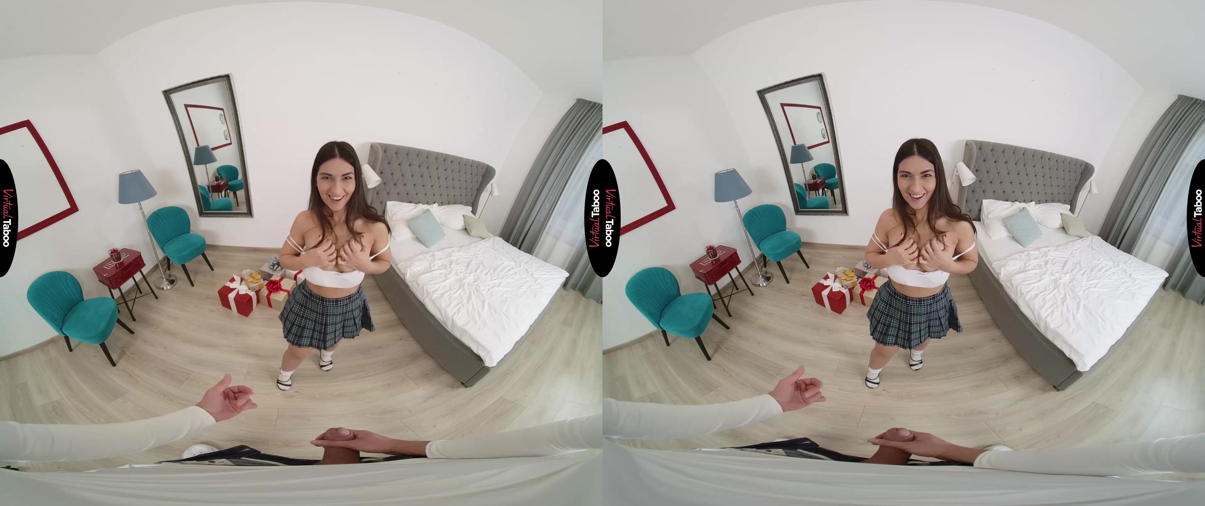 Today is Moona’s nineteenth birthday. She is quite the spoiled princess with lots of admirers and has a huge stack of presents to open. Opening one, she finds a buttplug with a pretty pink fuzzy tail attached. With no idea who it is from, she can’t wait to try it out. It feels so soft in her hands and the plug stretches her tight asshole wonderfully. It is such a naughty feeling that she decides to leave it in while she opens the rest of her presents. What she doesn’t know is that the mystery gift came from her stepbrother who is watching her crawl around on the floor with her fuzzy tail wagging behind her. In this VR porn episode, she turns around and sees you. Embarrassed at first, she tries to hide the tail before noticing that you are staring at her ass and your cock is hard in your jeans. You tell her that the tail was from you because you have always thought of her sexy ass when you masturbate to VR Porn. She is shocked and turned on when you take out your cock and show her how hard you are from just thinking about her tight hole. You want her ass, but are ready to try her other holes first. Moona is happy to suck you and then squeals with delight as you slip your dick into her pussy. The plug in her ass makes everything so tight that she can’t help but moan and push back to meet your thrusts. Since her ass is already warmed up, she decides to let you fuck it as well. She never lets her boyfriend have it, but your dick fits perfectly. So perfectly that she promises to save the butt sex just for you.