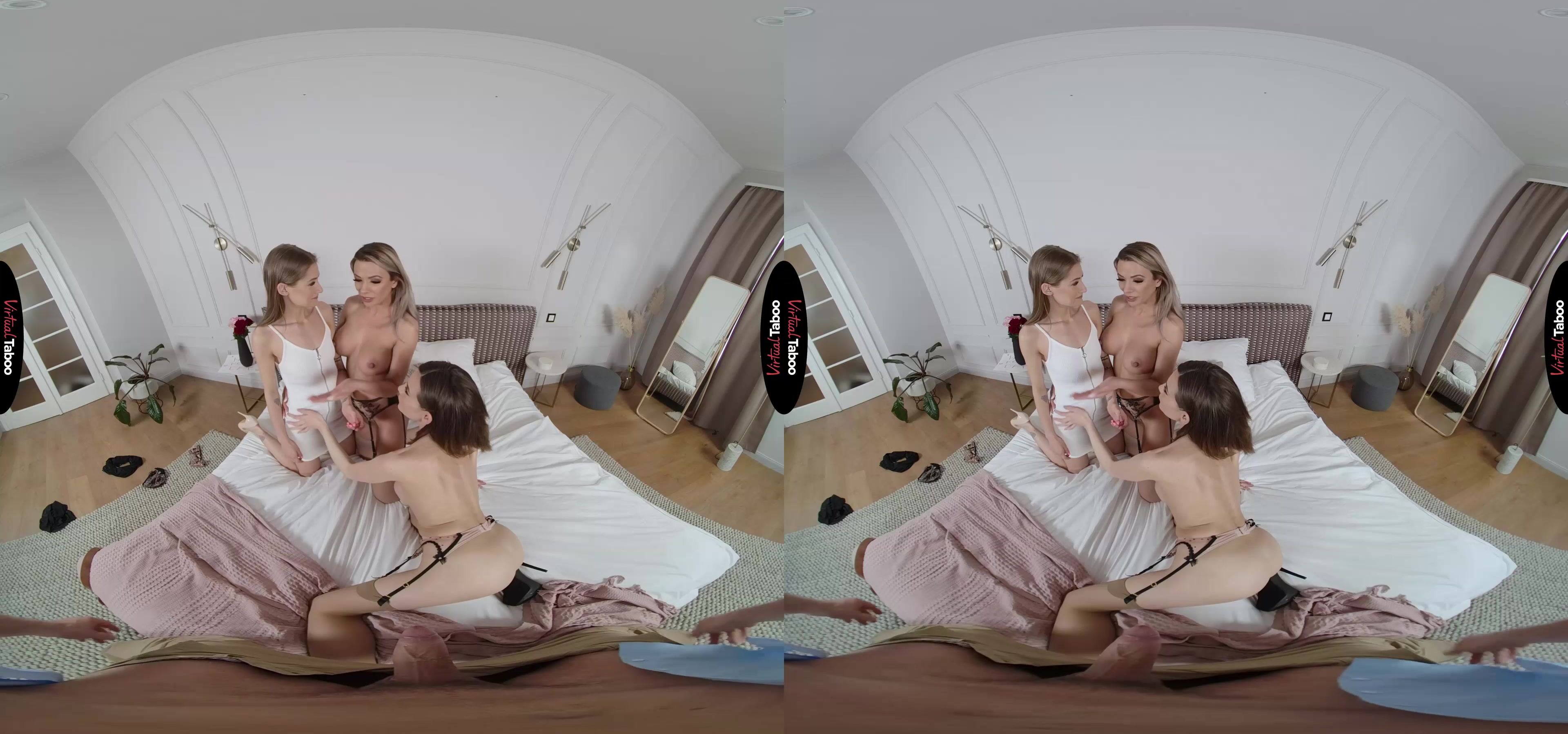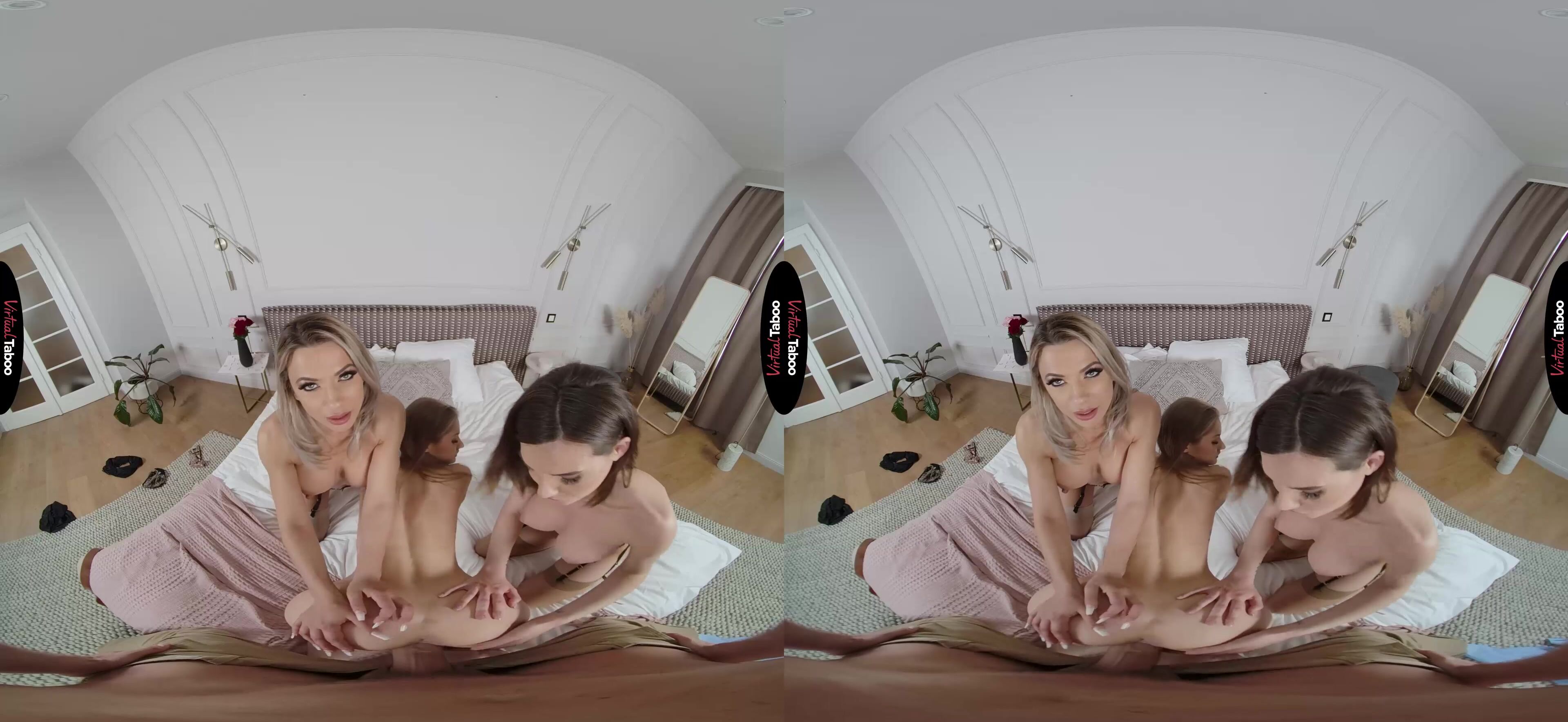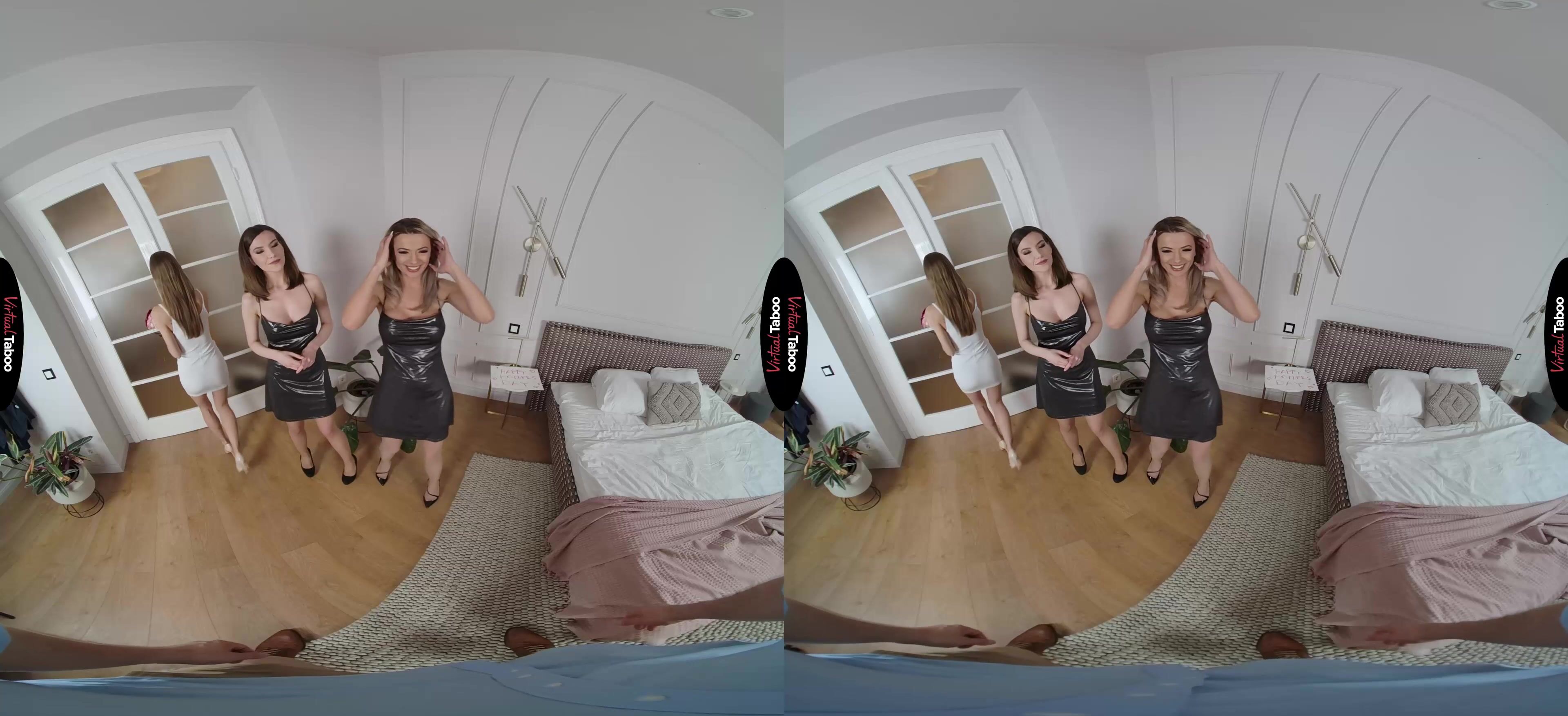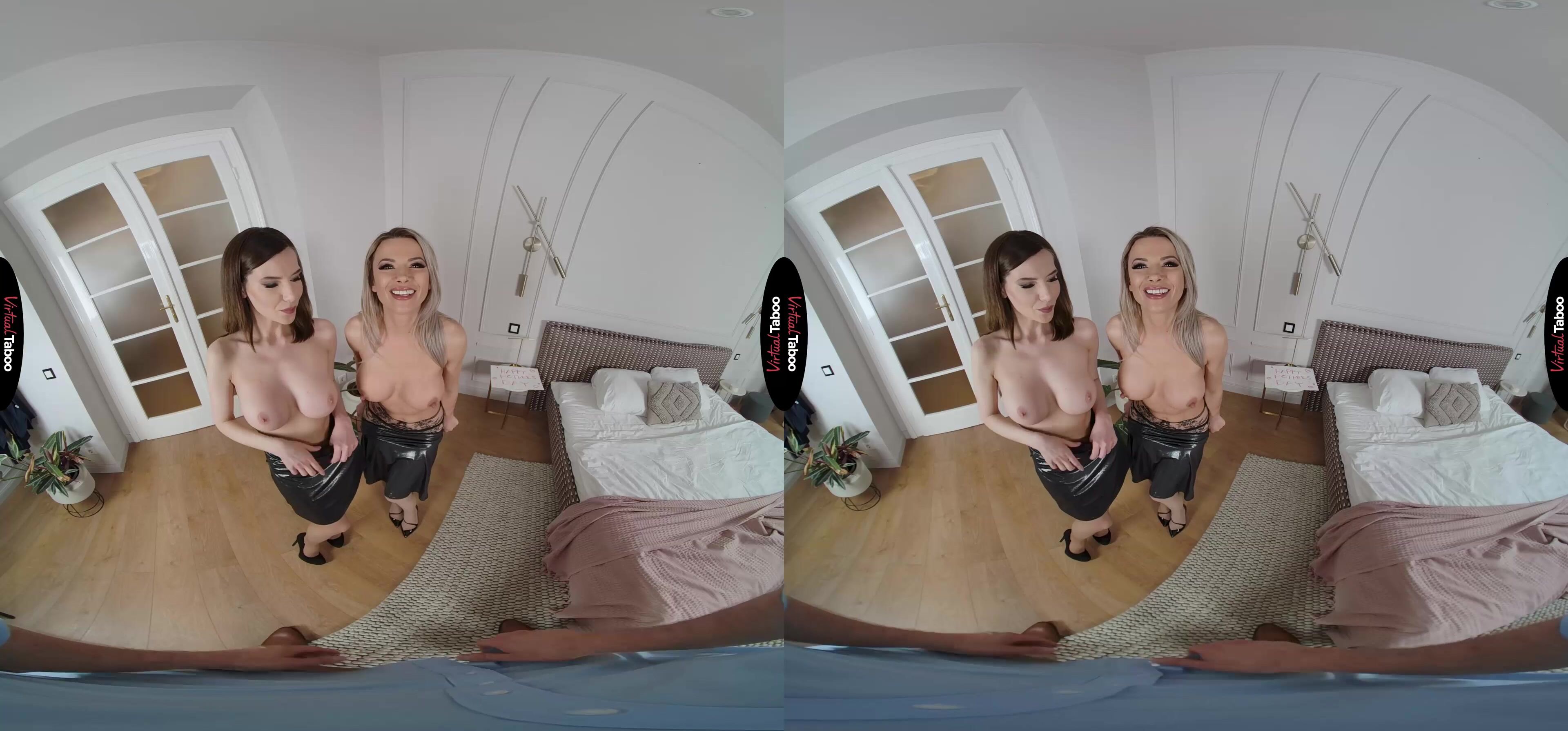 Sybil Arch and Shaline Devine have been best friends since college. They have done everything together for years. They stayed close when they got married and even when they got divorced and remarried. In fact, they are so close that their stepkids are even dating. Shaline’s stepdaughter Tiffany Tatum and Sybil’s stepson have been a couple for a while now. In this VR porn episode, Tiffany and her boyfriend have decided to celebrate Mother’s Day for their stepmoms, but they have no idea that the best friends have something naughty on their minds. Shaline shared a secret with Sybil. According to her stepdaughter, Sybil’s stepson has got a really big cock. Back in college Sybil and Shaline often shared men, especially the ones packing big pricks. They are not about to let one who lives under Sybil’s own roof get away. While Tiffany is in the kitchen putting the finishing touches on a special meal, the two horny stepmom’s let you know what they really want for Mother’s Day. As much as you love Tiffany, you have always had a thing for her sexy stepmother and though you would never admit it, even your own. Taking out your cock, you watch the two friends strip like professional VR porn models and position themselves with their mouths ready to take every inch. Tiffany returns to the room just in time to see her boyfriend fucking her stepmom from behind. She is upset at first, but the stepmothers put her mind at ease by double-teaming her creamy young pussy with their mouths. That is more than enough to take her mind off how wrong it is and let her feel just how good it is. You can’t believe how lucky you are to fuck your girlfriend after banging her stepmom and yours. The mature sluts give Tiffany some pointers as they suck a load from your cock and all pass it back and forth.