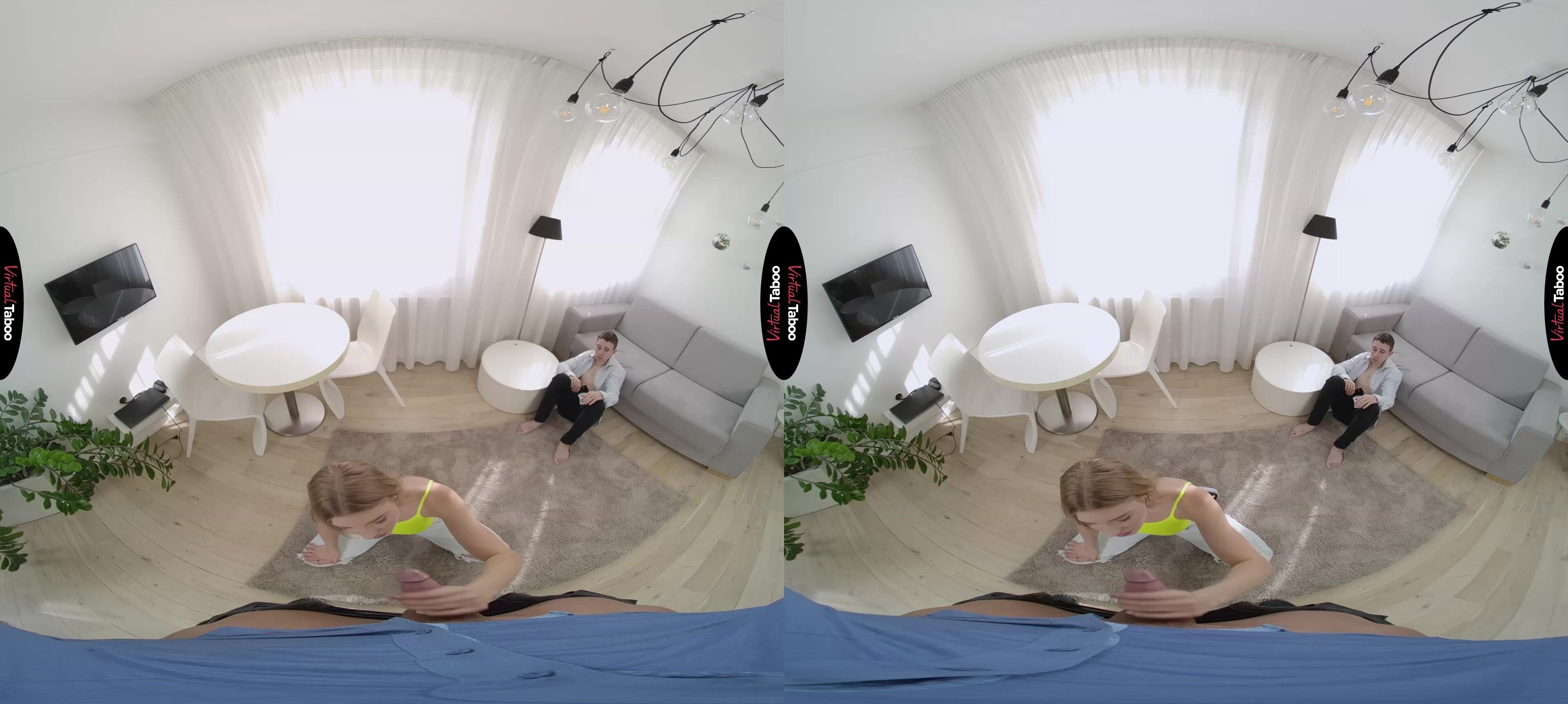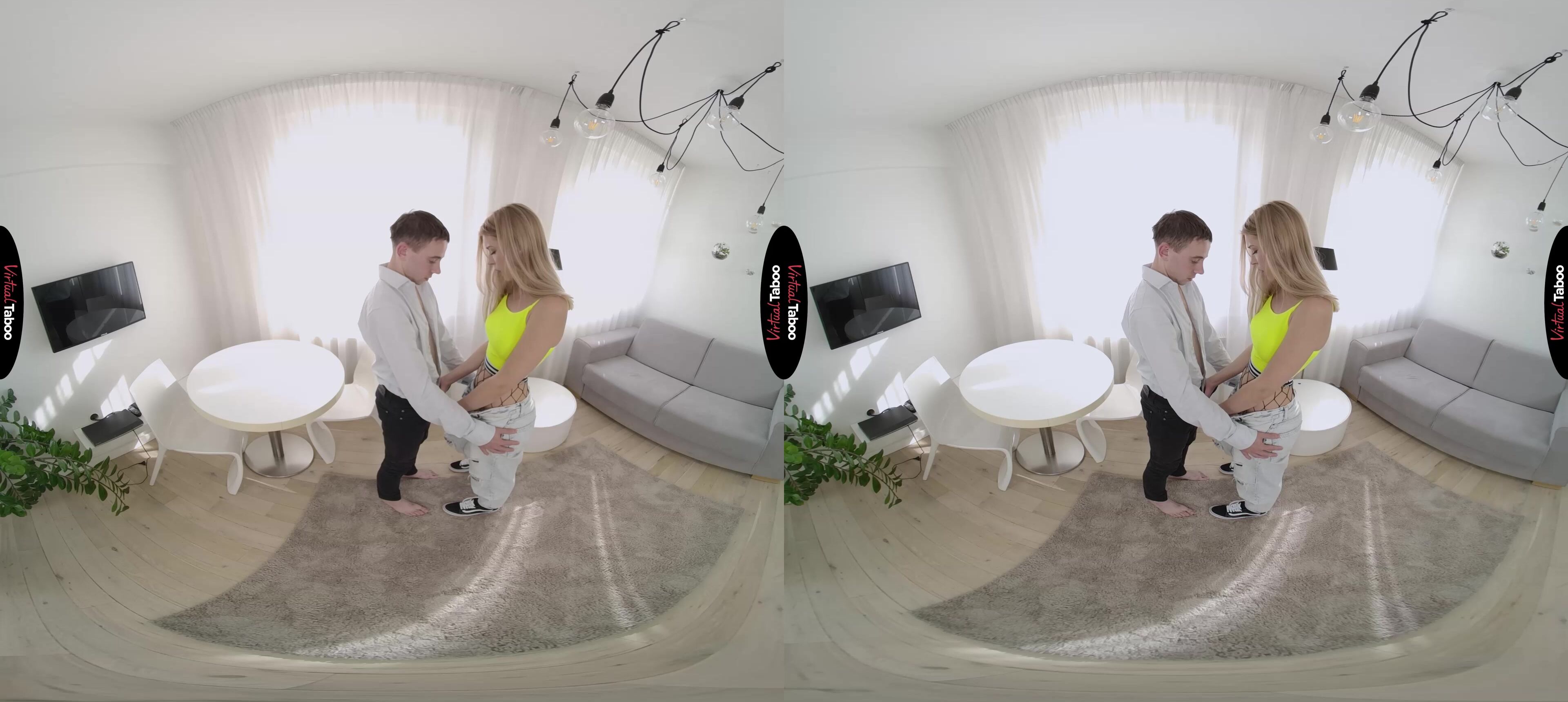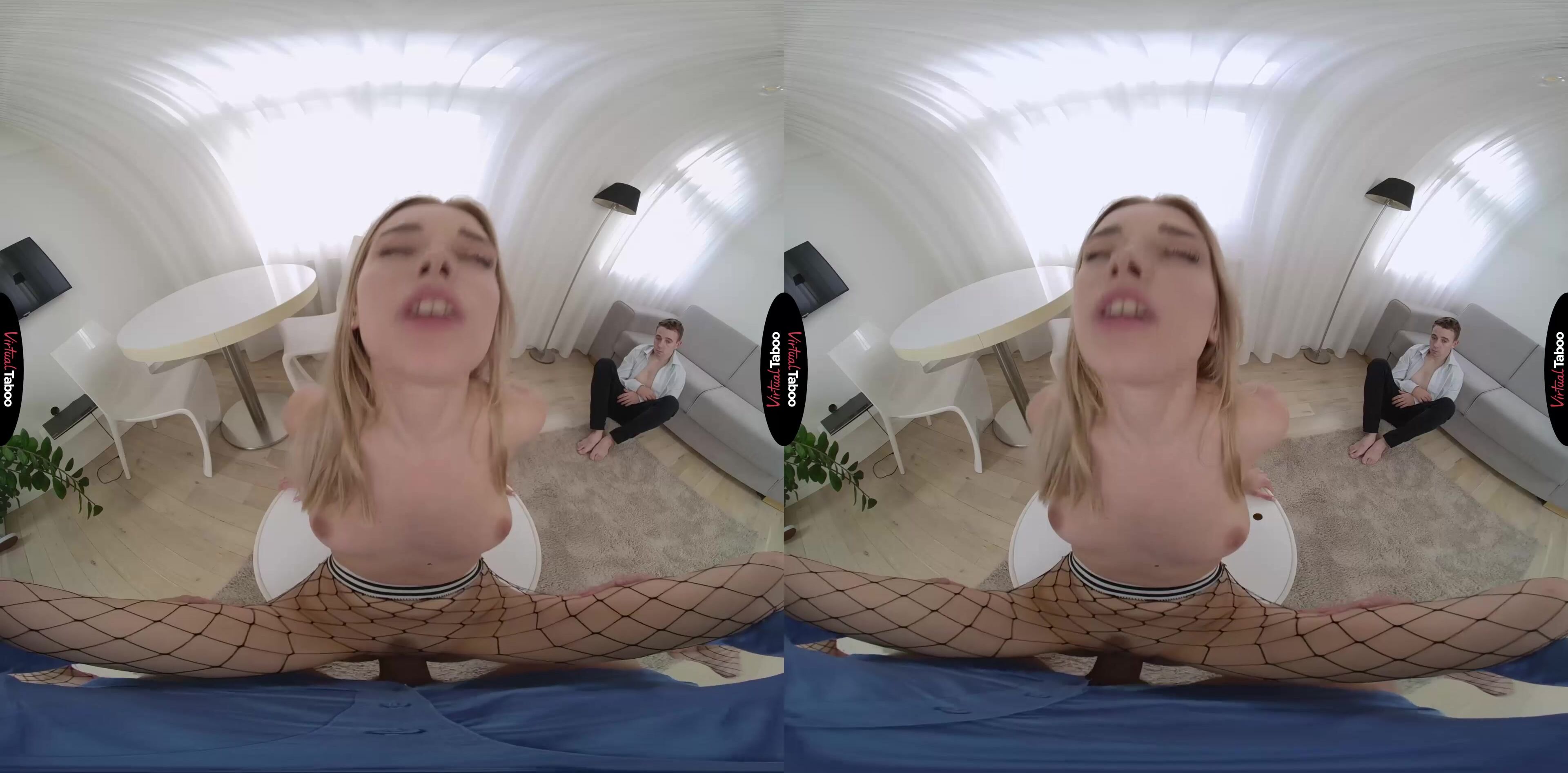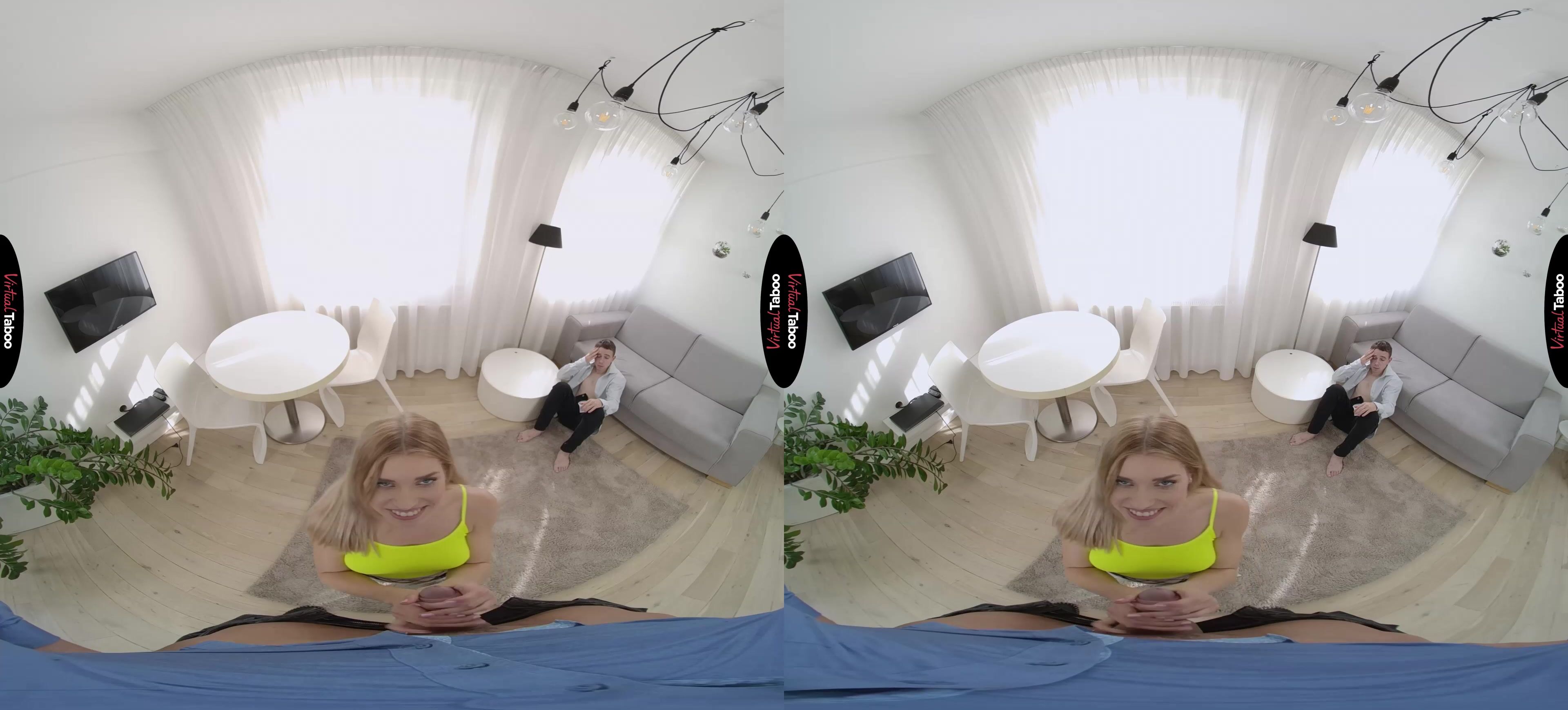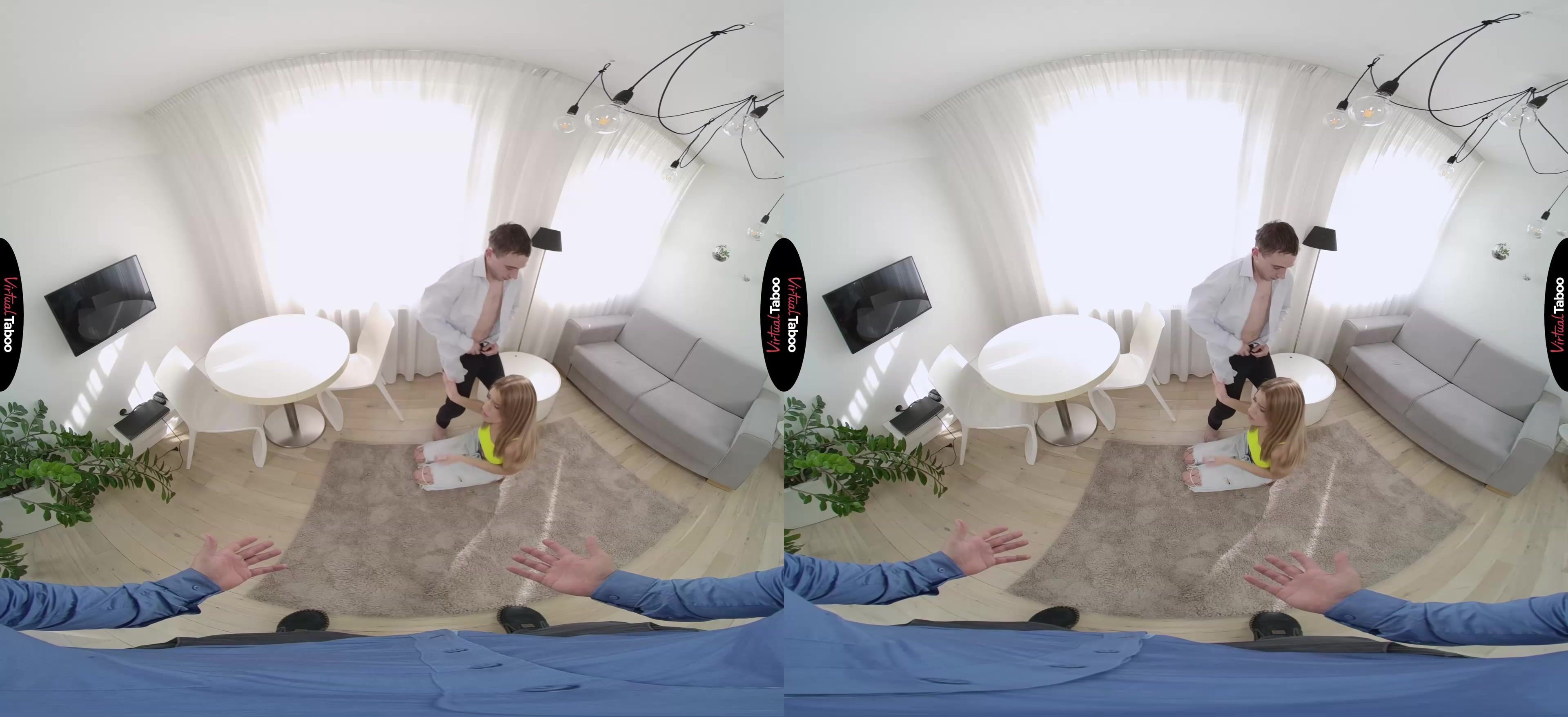 Freya Mayer has only been at college for a few weeks, but she already had a boyfriend. She wants to bring him home to watch some VR porn movies. They have also decided to have sex for the first time as well and that part does not go as smoothly. Her boyfriend has never had sex before and between that pressure and the fear of her parents coming home, he is struggling to get things going. Freya is not very experienced either, and she has never seen a guy struggle to get hard for her. Right in the middle of their troubles, Freya’s stepfather comes home unexpectedly. You are shocked by what you see and even more so when she explains what is happening. Not wanting to see his stepdaughter disappointed, you take out your cock and offer to help get things started. In this VR porn scene, her boyfriend objects, begging her to give him another chance to get it up, but Freya pushes him aside and tells him to take notes to see how a real man does it. She can’t believe how much bigger your cock is than her boyfriends or how hard it is as it slides down her throat. No longer interested in the inexperienced boy or his tiny limp cock, she bends over to take her stepfather’s big stiff prick right into her tight hole. As she rides you, the pretty teen knows exactly why her mother locks her bedroom doors every night and moans for hours. She is married to a sexual beast and Scarlett never wants you to stop fucking her. With her boyfriend watching, Freya sucks every drop of cum from her stepdad’s dick and wears your load proudly. She is your slut now and has no need for the wimpy boy.