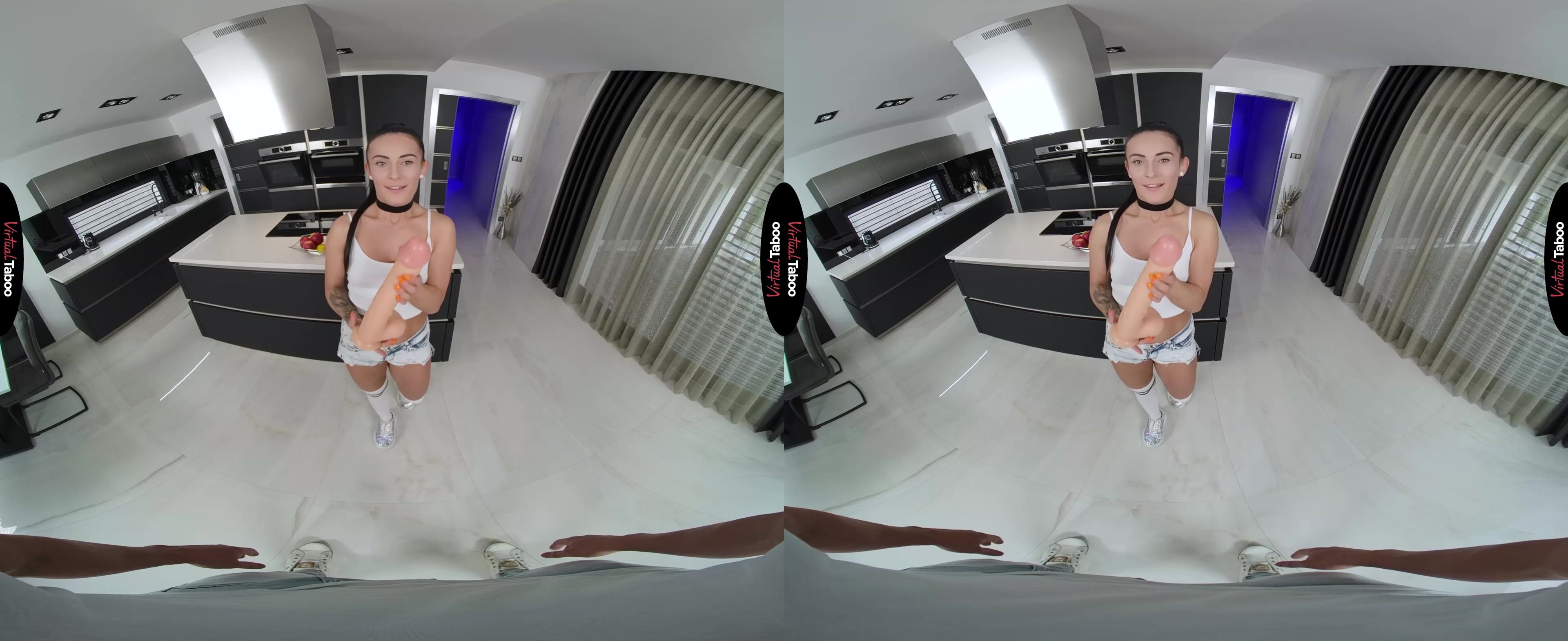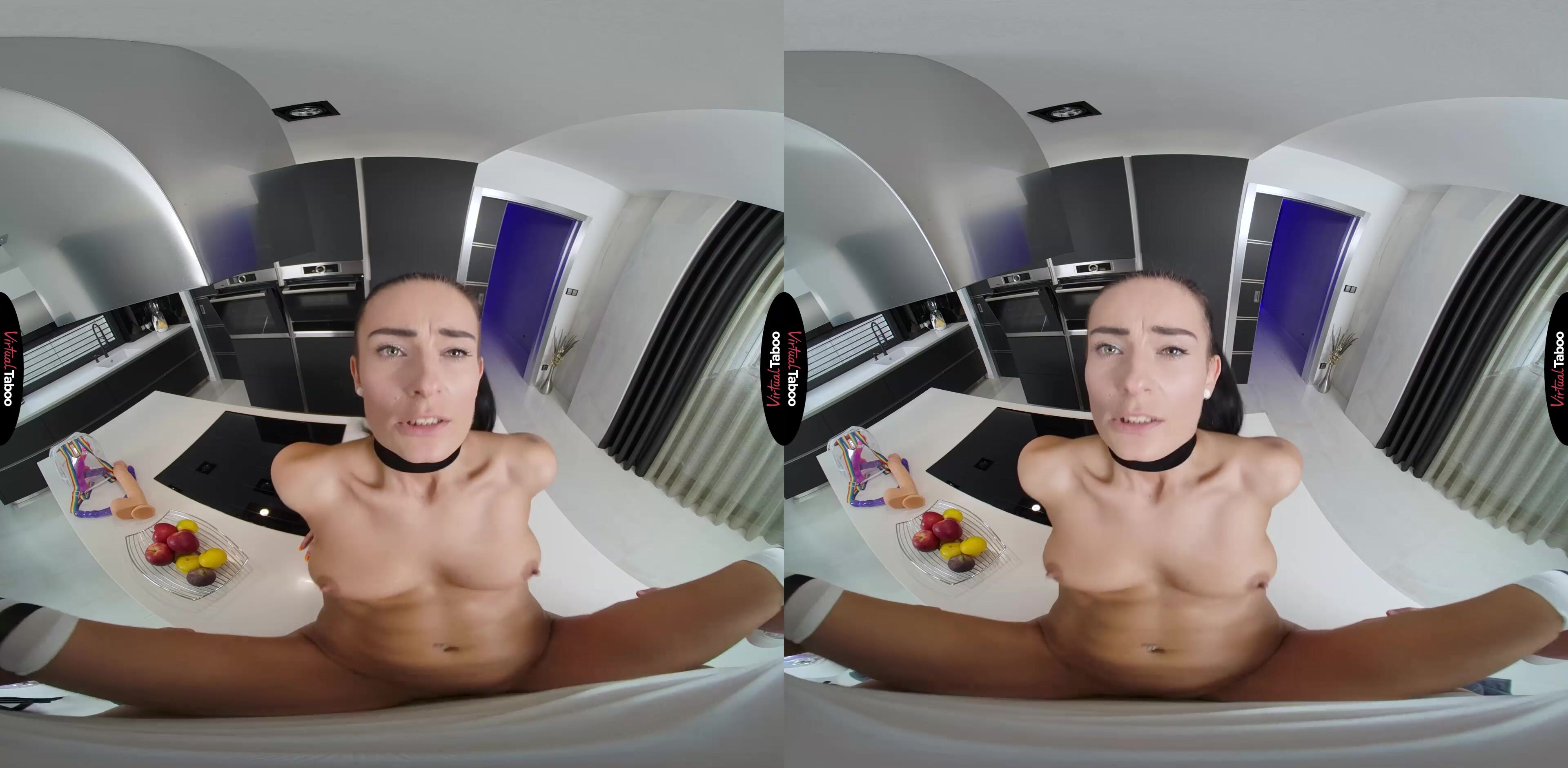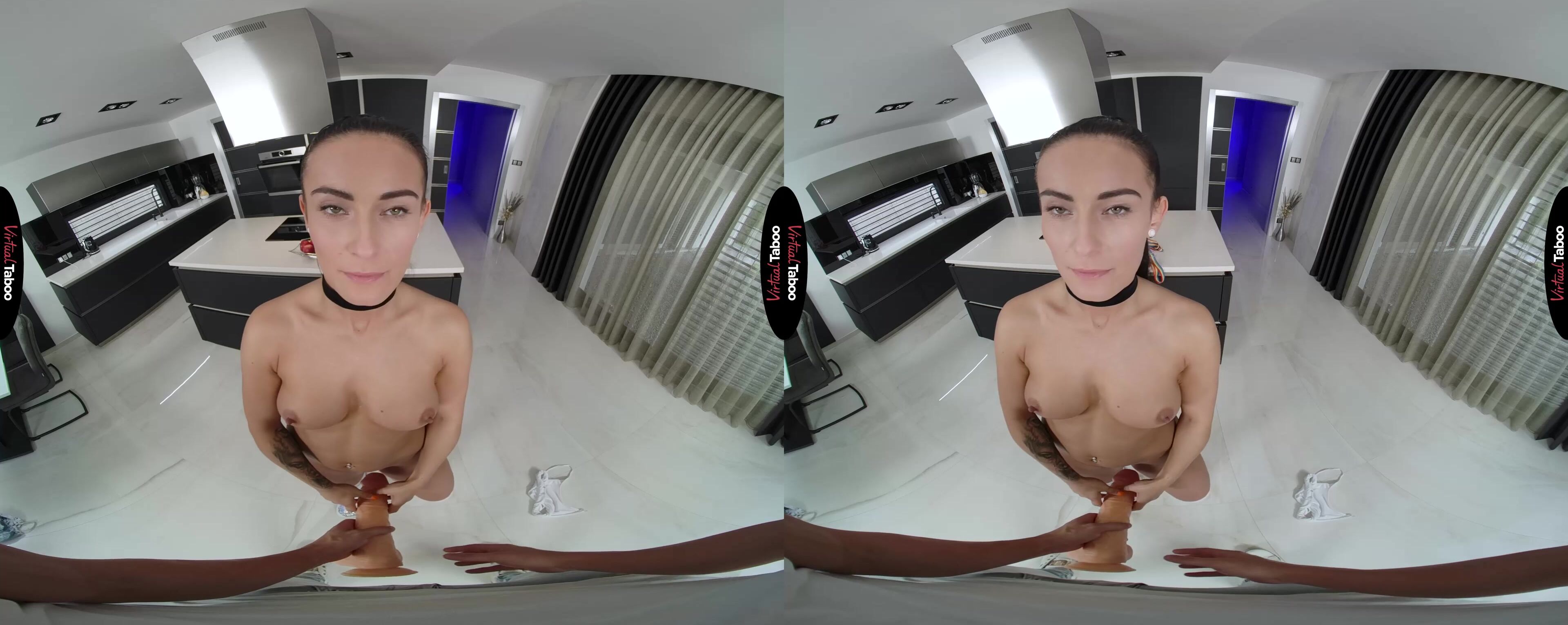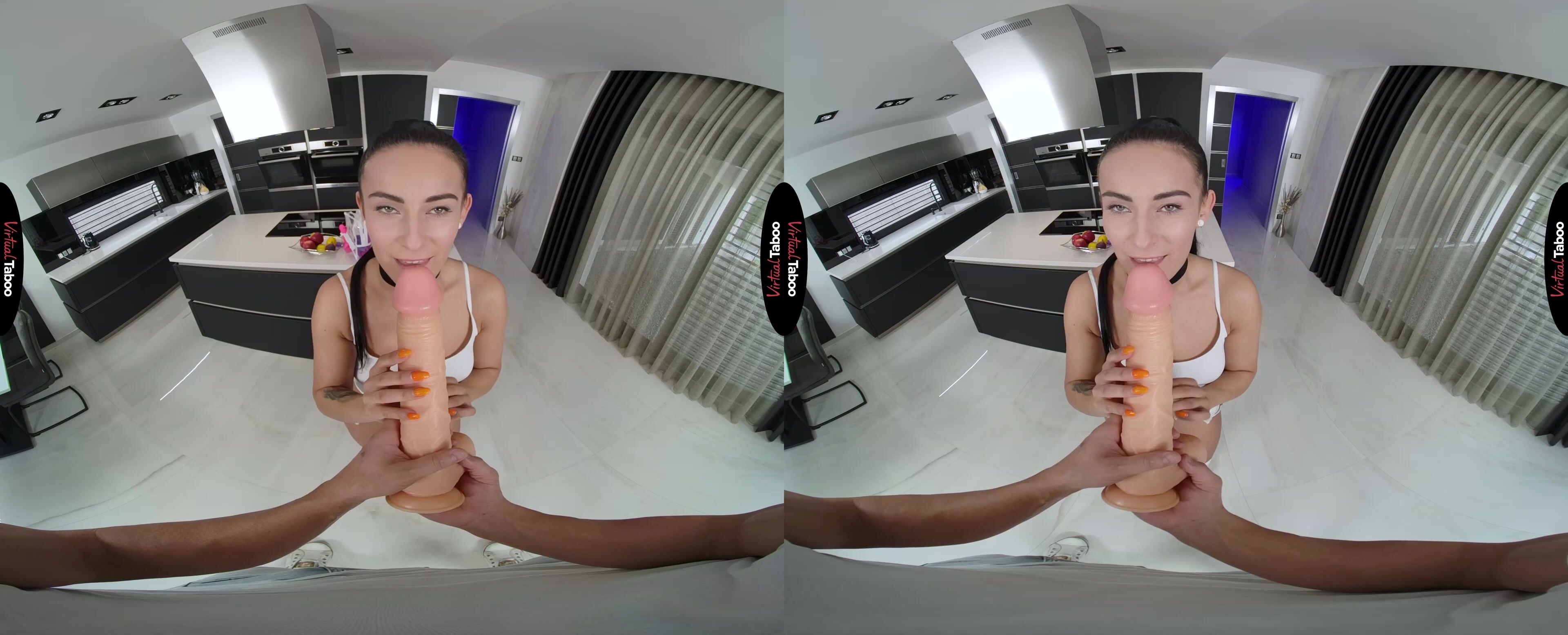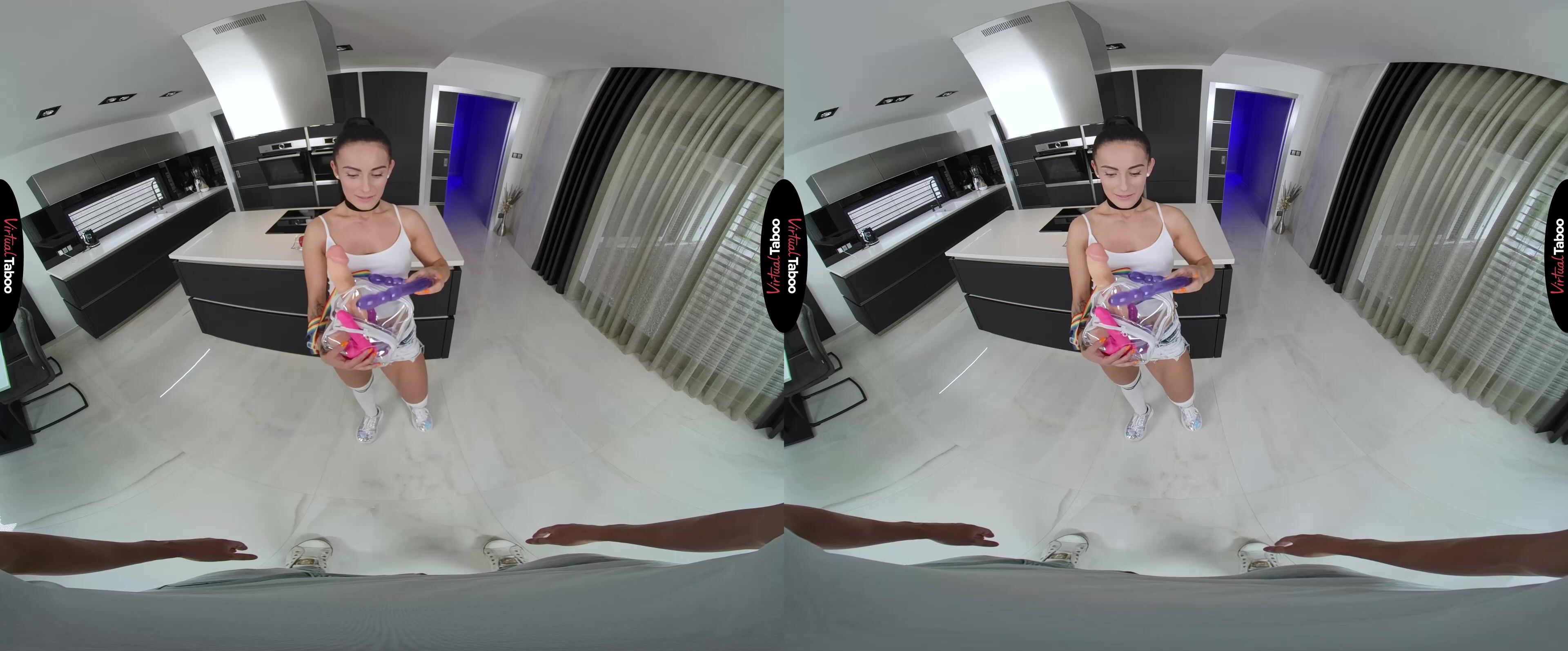 Lexi Donna has made lots of cool friends in college. When her best friend discovered how sexually inexperienced Lexi is, she gave her all kinds of tips and loaded up her backpack with a dozen of her favourite toys. Excited to get home and try them, Lexi is surprised to find her stepbrother in the kitchen when she arrives with bag full of cocks. You see those toys and are curious. You also can’t help but stare at your stepsister who is dressed in much shorter shorts than usual. She looks like a real VR pornstar. Lexi knows you usually spend your days jerking off to VR Porn and finds the lust in your eyes very exciting. Enjoying the way you are looking at her, she starts teasing until you ask what the toys are for. She tells you that they are to help her practice for the hot boys at school and asks if you are jealous. Not jealous, but you want to see how far she can take one of those big rubber cocks. You watch, impressed by her skills, but want to see what she can with the real thing. Lexi is more than happy to take her stepbrother’s meat into her mouth and suck it. You seem to enjoy it, but she wants more practice. She bends over and arches her back, begging you to slip your dick into her tight hole. You fuck her good and hard until she creams all over your cock. Taking a break, she sucks all of her juices from you, practising her head game until you are ready to continue pounding her. She rubs her clit and clamps down on your cock until they both cum together and your load drips out of her freshly fucked cunt. She can’t wait for her next practice session.