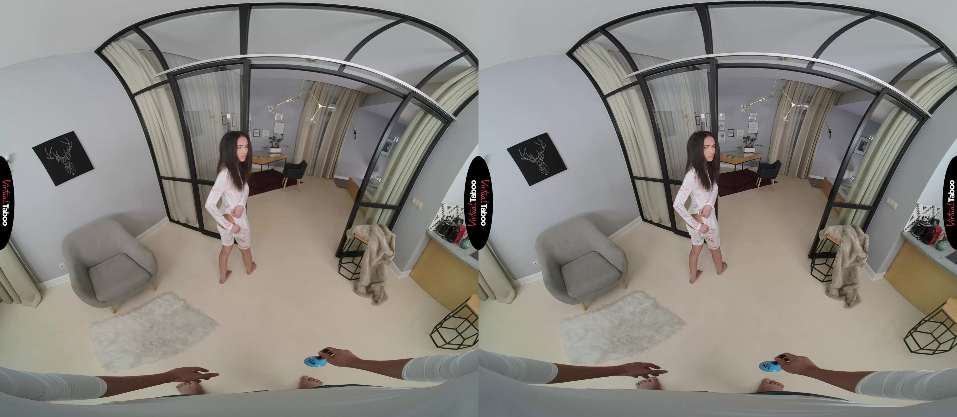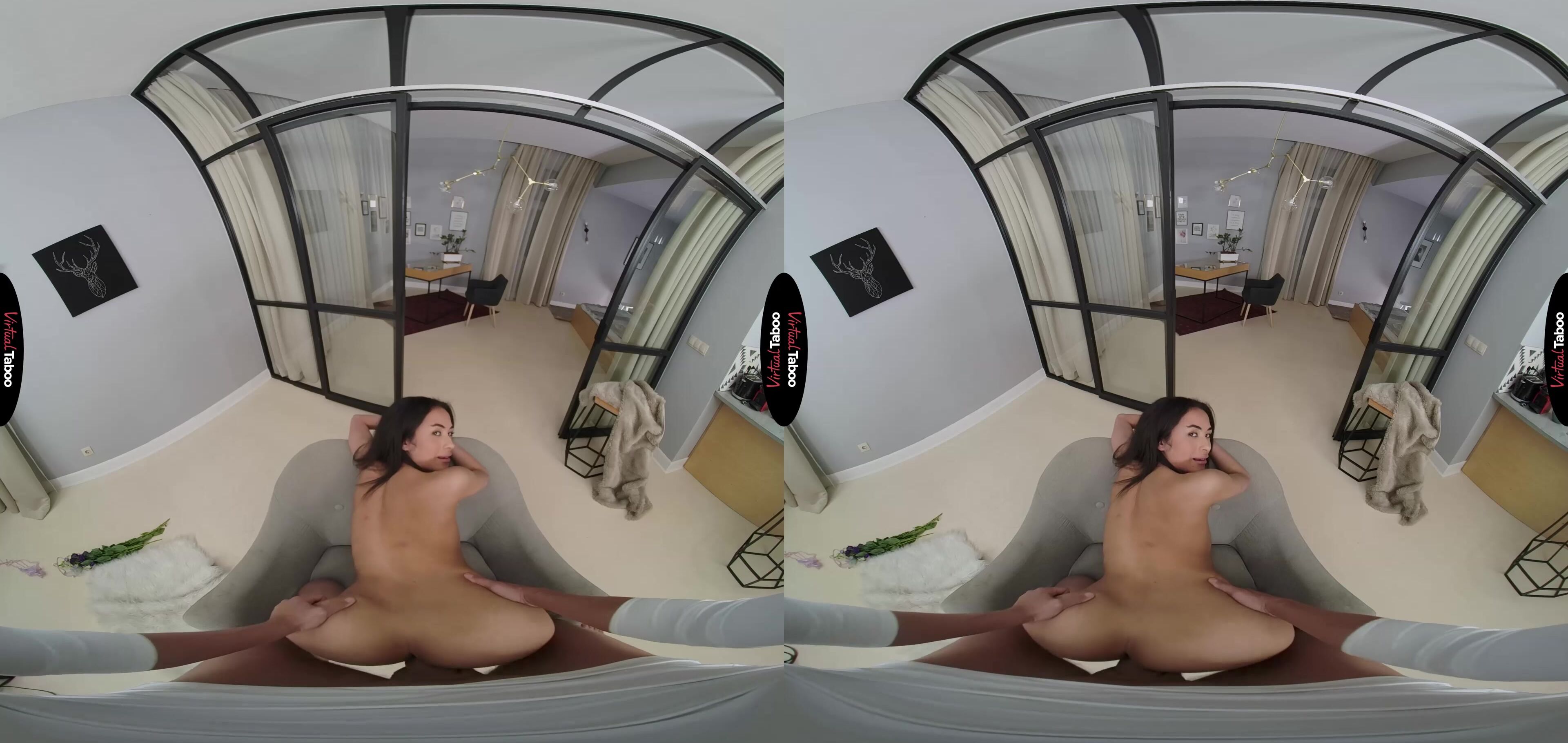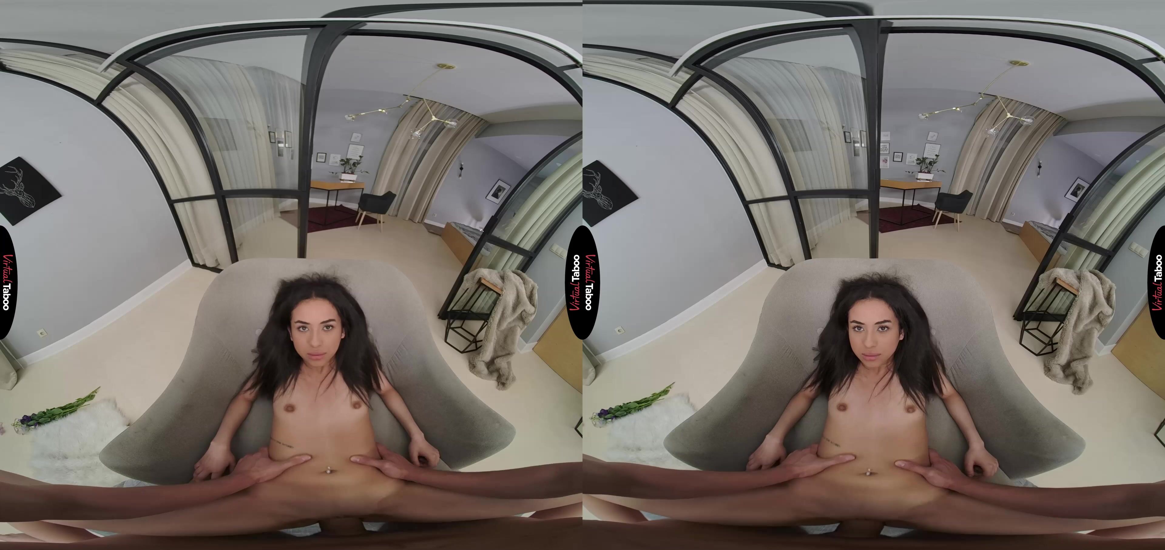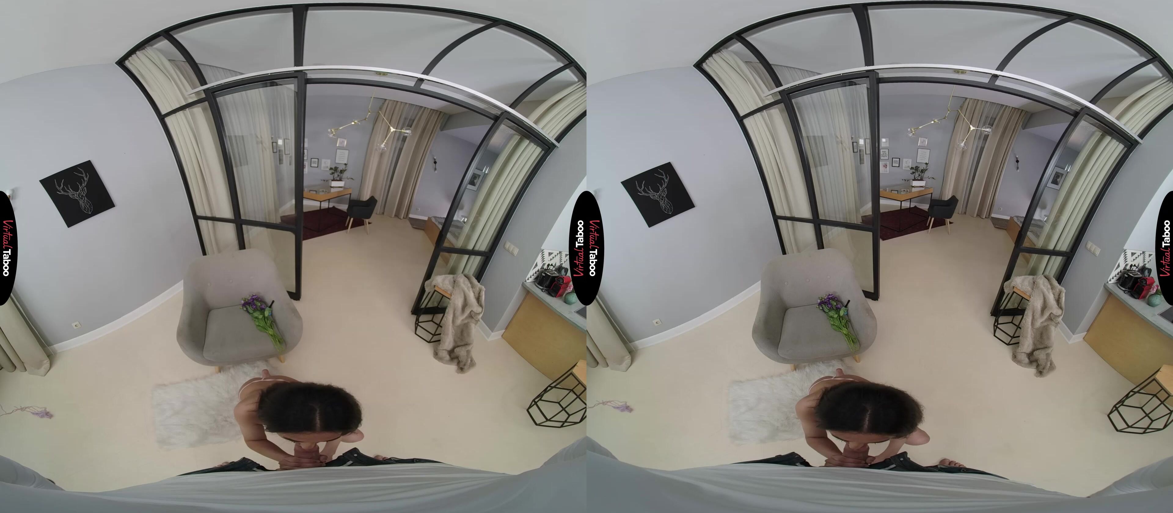 Tasha has been stuck at home with her stepbrother for far too long. The pandemic and lockdown have them both lonely, missing their friends and dying to get laid. While she is content to wait it out, he has been going crazy watching VR Porn day and night. You get the not so bright idea to buy a ”Ring for Sex” bell that you hope she will use when she gets too horny. She is not amused and sends you away. The next day you ring the bell and offer her a gift. You have bought her some sexy lingerie. In this VR porn scene, she is feeling a little frisky and tries them on for you, but again shuts you down when ask her for sex. In a last ditch effort you give her some flowers. She is moved by this gesture and can see the big bulge in your pants from seeing her in the lingerie. That does the trick and she drops to her knees to give you the best blowjob of your life. You love the feel of her mouth on your meat and hold her arms behind her back to make sure she knows who is boss. It has been a long time for both of them and she can feel her pussy dripping and slides your dick in. Tasha can tell from the look on your face that you love the way she feels and you breathing picks up quickly. Not wanting to risk something they can’t explain, she pulls you out of her pussy and sucks on you dick until you stiffen up and floods her tongue with your juices. After this first time, she is certain to ring that bell again.