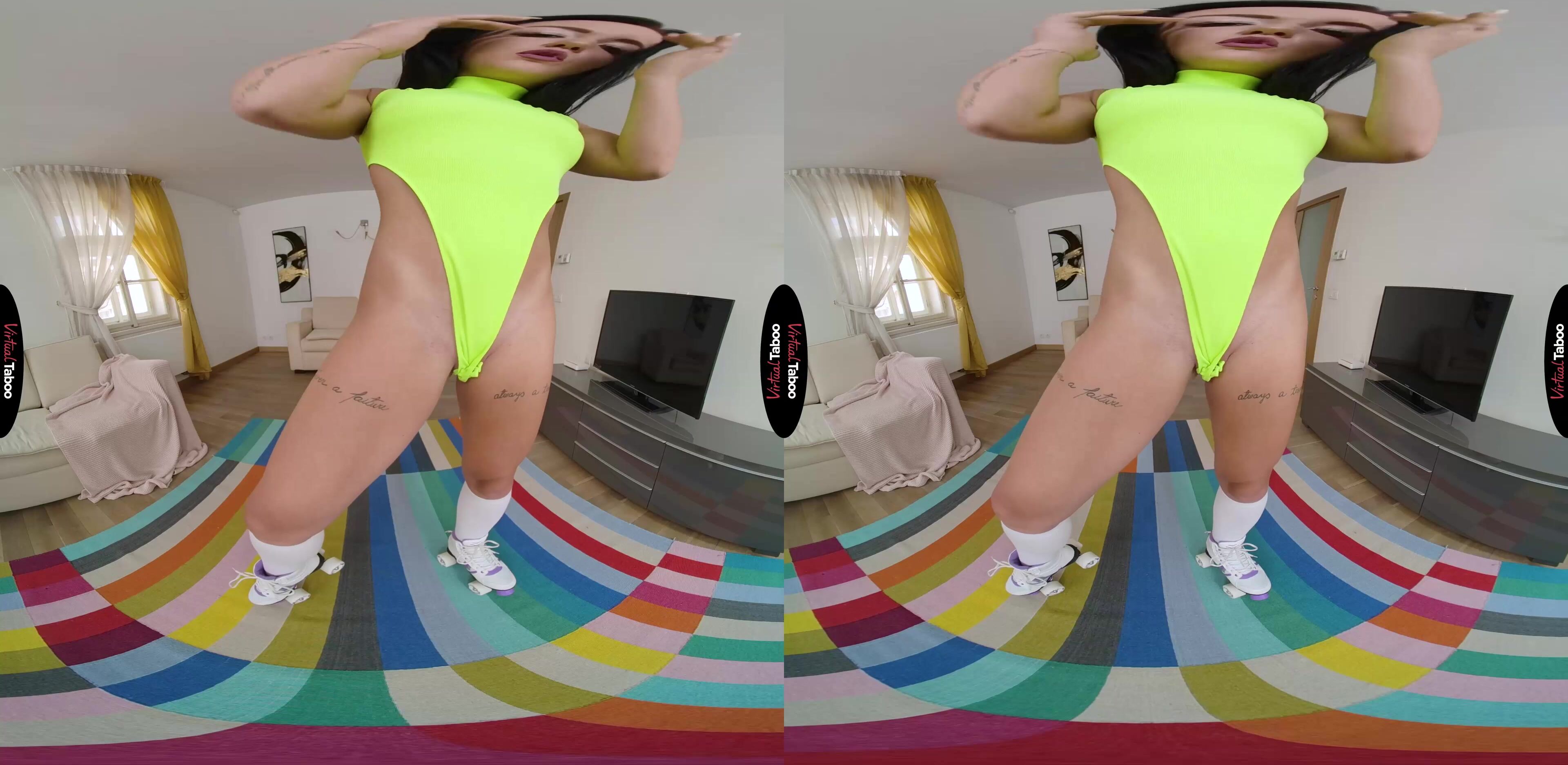Zuzu Sweet has been having some trouble lately. She loves roller skating and goes out with some friends to a local park almost every day. Zuzu loves to skate and also loves being around so many hot, fit guys. There is one in particular who has caught her attention. The problem is, he doesn’t pay any attention to her. He is too busy with his new VR headset. Deciding that she has been ignored long enough, she puts on a skimpy swimsuit hoping it will make her crush take notice of her hot body. In this VR porn video, she checks herself out in the mirror and thinks she looks pretty damn hot, but Zuzu wants a second opinion. She doesn’t need to wait for him to say anything to know exactly what he thinks of her outfit and how she looks in it. You shift in your seat and cover your crotch, but not before she gets a good look at how hard your cock is just from looking at her. Zuzu finds herself turned on by her stepbrother’s boner and wants to keep teasing you. She asks you if you want to see more and of course, you do. She only agrees when you promise to take your cock out and play with it. Watching you stroke your big dick makes her forget all about the guy at the skatepark. Her pussy is wet and her body is on fire with desire as your fist pumps and you stare at her with lust-filled eyes. You ask to see more so she removes her outfit and starts to rub her clit as you continue to stroke. Your pumping increases and she fucks her twat until you both explode. Zuzu cums on her fingers while her stepbrother shoots his load all over her big tits. Who needs to go skating to find a good cock when she has a big one right at home.