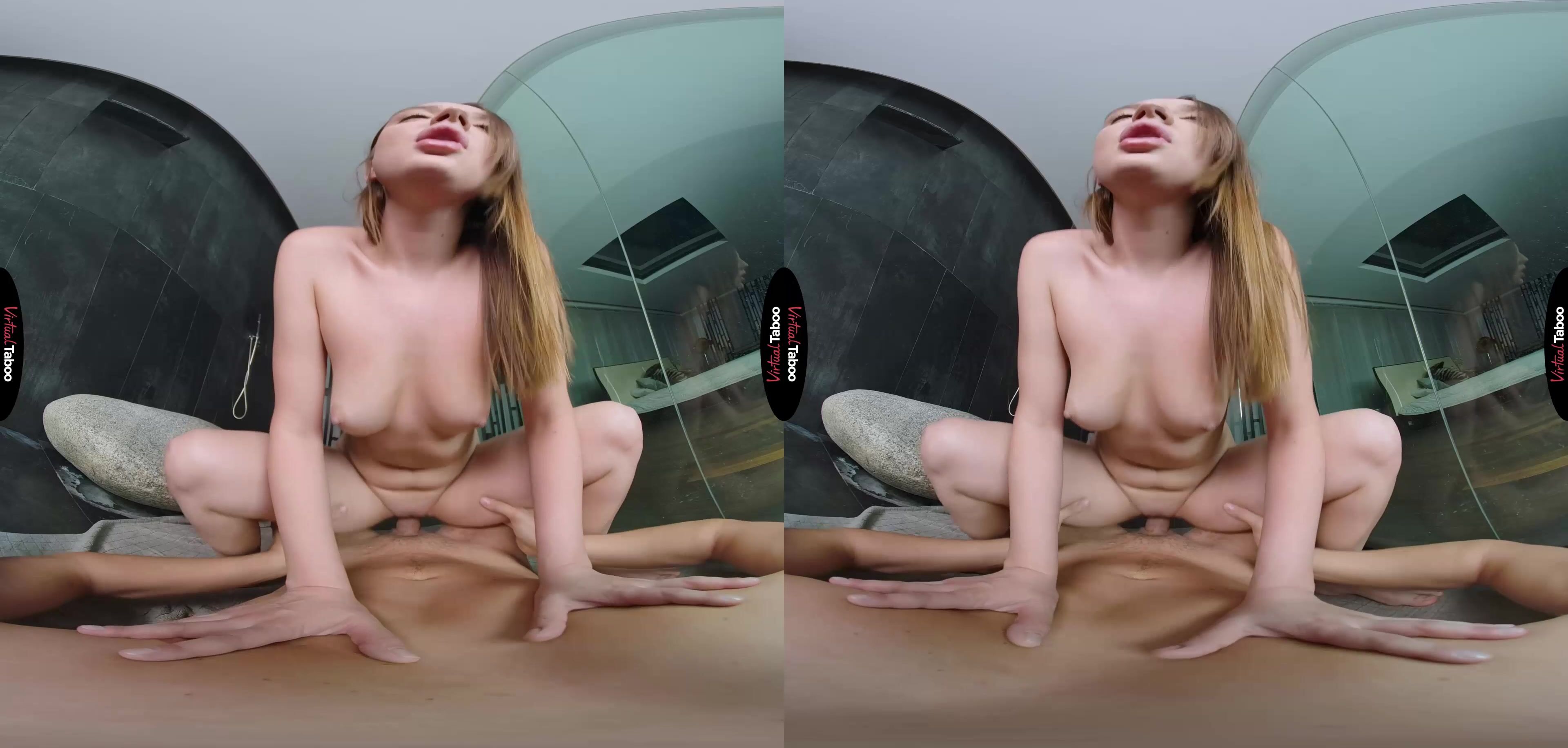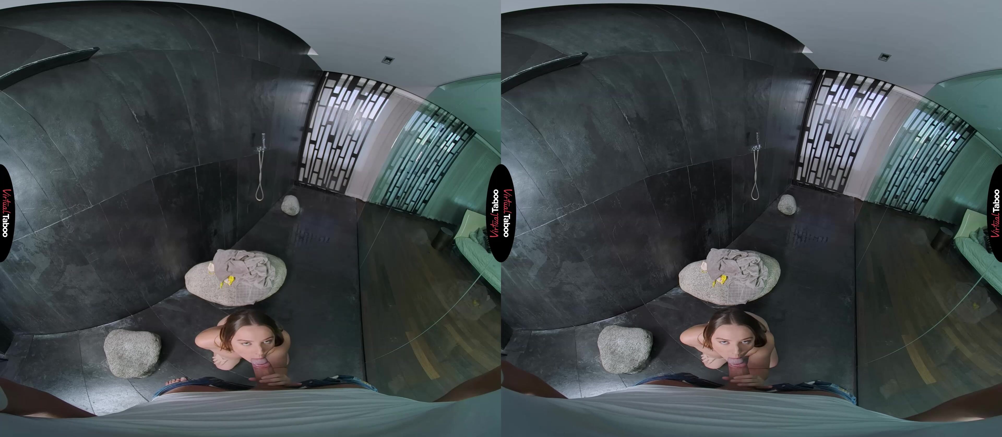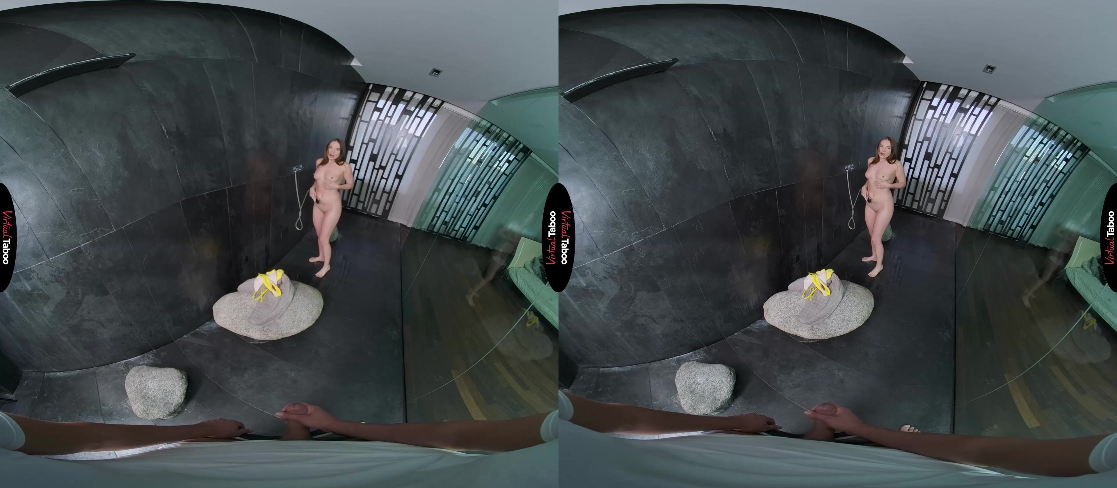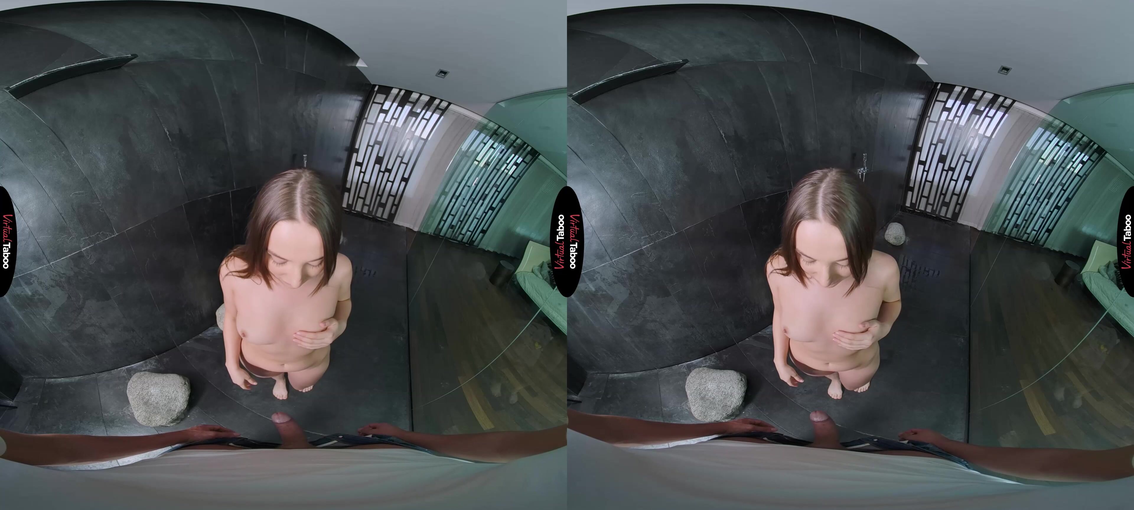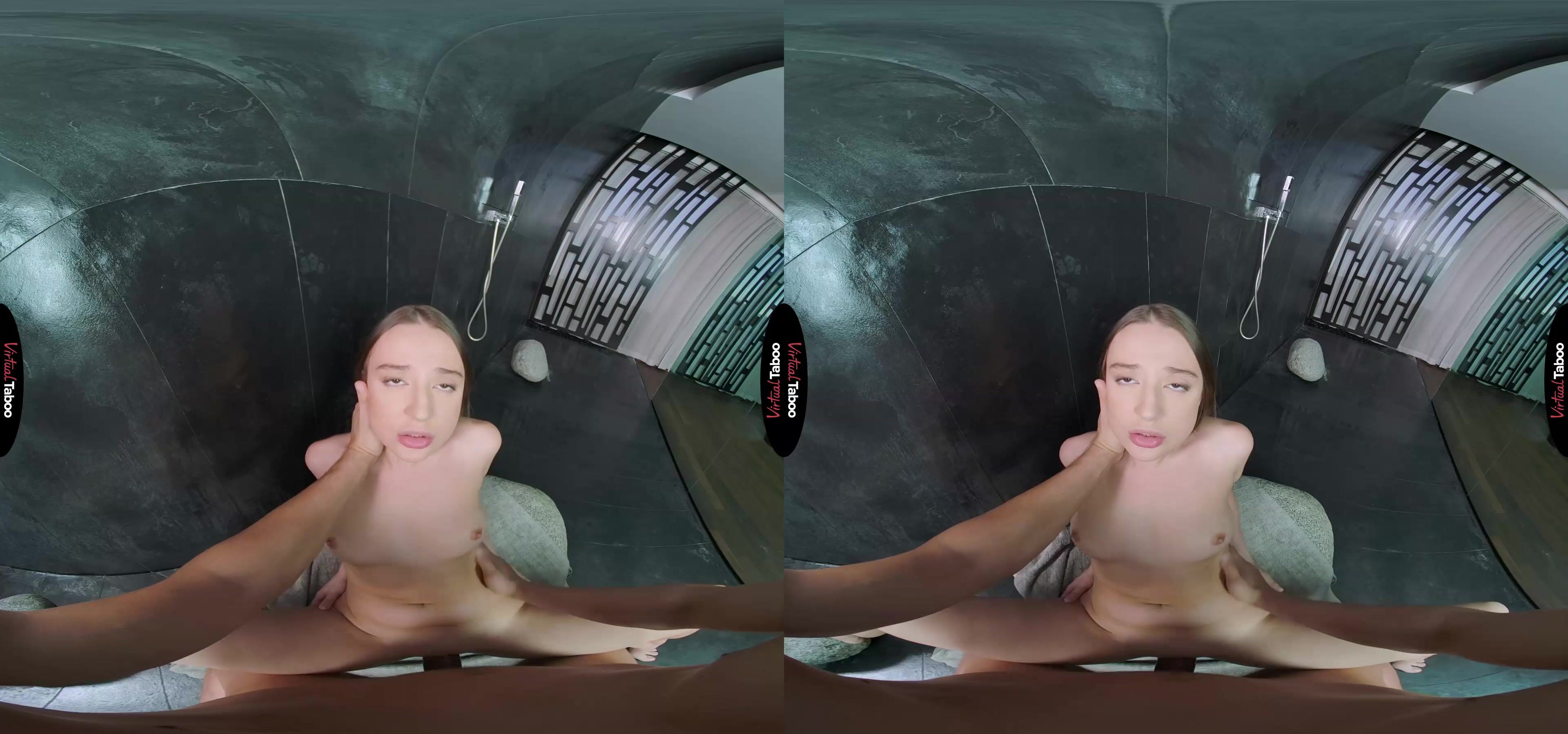 After a long day at the beach, sexy VR slut Kylie Green hops into the shower to wash off. As she feels the water clean and caresses her body she thinks back to all of the boys she teased in her hot little bikini. She loved how their eyes followed her as she strutted up and down the beach, trying to get her attention. Now she imagined them hiding big boners in their swim trunks looking at her tight teen body. It turns her on to think of how turned on those strangers got and her pussy throbs as she aims the warm spray of water between her legs. Her step brother happens to come into the bathroom at just the right time to see her on the verge of a huge climax. Embarrassed at first, Kylie is angry that you ruined her orgasm and screams at you to leave the room. Instead, you take out your cock and watch as she stares wide-eyed at the big dong. This is exactly the reaction she was hoping to get from those strangers on the beach and this dick is close enough for her actually suck it. She starts licking it, looking just like the sexy models you have been watching in taboo VR porn scenes. Kylie had no idea her stepbrother had such a big dick, but now that she has tasted it, she just has to feel it pounding her tight teen pussy. It is a perfect fit and she starts cumming all over him instantly. She gets so lost in how good it feels that she forgets to stop you until you have shot your nut deep inside of her hole. It is more than the teasing teen planned for, but it felt too good to stop.
