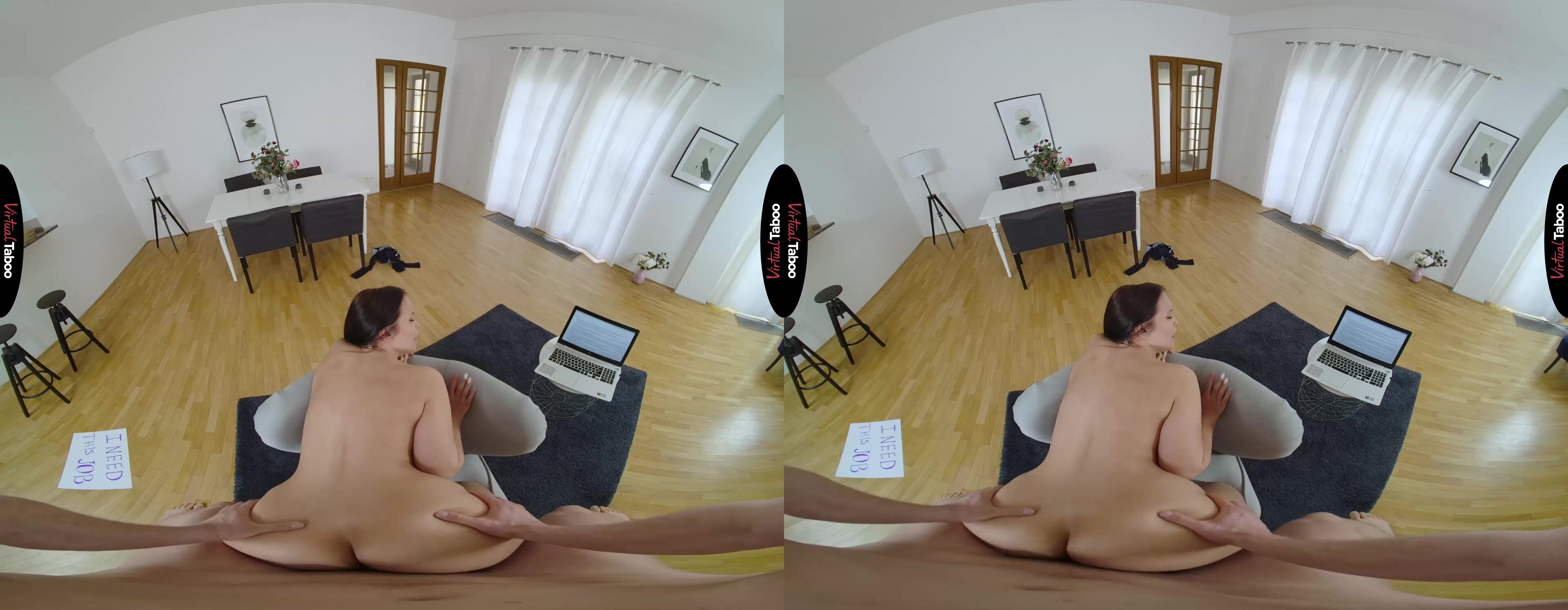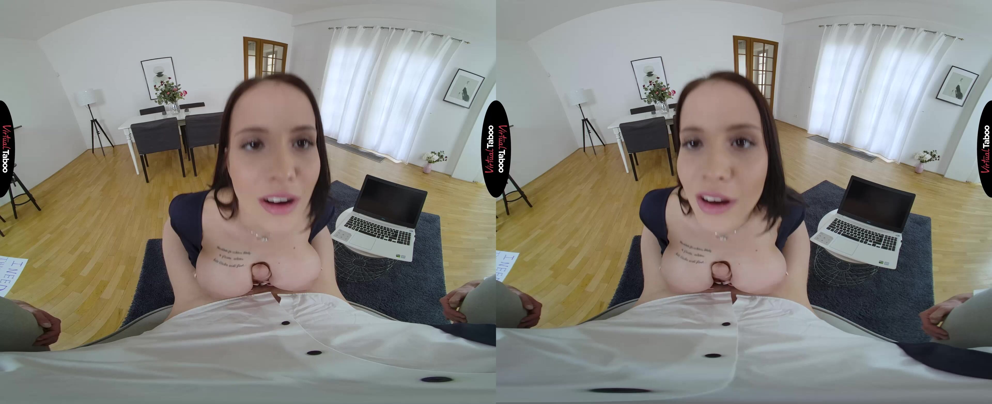 Life has been good for Jennifer Mendez since her mother remarried. Her stepfather runs a hugely successful tech firm and has spoiled Jennifer and her mother. When it was time for Jennifer to get a job after college, she assumed he would hire her without question. Disappointed when that didn’t happen, she came up with a plan to land a dream job. She marches in and shows you a sign indicating how much she needs the job. Unimpressed, you suggest she take her tits down to the strip club or try being a VR Porn model. She angrily pulls out her tits and shakes them at you asking you if they will make you change your mind. You are shocked by her boldness but has to confess that her tits are pretty spectacular. Seizing the opportunity, she sits in your lap and lets you know that if you will hire her, she will take care of you in ways that her mom doesn’t. She pulls your cock out and is happy to see it already hard. She gets it wet in her mouth so it can easily slide between her big tits. Jennifer knows she already has the job but wants to feel your big dick inside of her. Why should mom be the only one in the house who gets to enjoy that fat pole? You fuck her tight pussy until you are right on the brink and then reminds you again that you have promised her a job. By the time you blow your load into her mouth, she has landed the job with a much higher than normal salary.