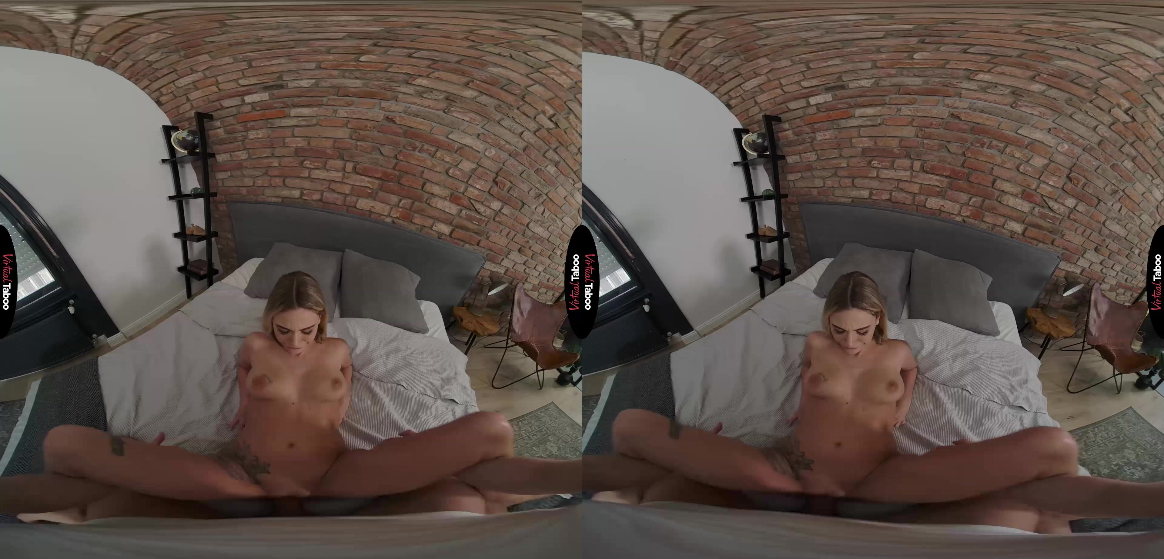 Pretty blonde Lya Missy has always had a highly competitive relationship with her big sister. They have fought over everything their whole lives, including the same boys. Now that her sister is married to a handsome man, Lya comes to stay with them for a little vacation. What she really wants is some alone time with her big sister’s hot hubby. In this VR porn video, she tells him that the guest shower isn’t working and asks if she can get cleaned up his bathroom. Lya bends over enough for him to get a peek at her pussy under her short dress. She catches you looking and slips right out of the dress while you stare. You know you should leave, lock yourself in your room and masturbate to some VR Porn, but you stay and she smiles when you take out your cock. It is even bigger than she hoped and already hard for her. Now that she has you where she wants you, Lya gets on her knees and starts sucking your cock. She is determined to give a better blowjob than her sister ever could. You assure her that she is much better with her mouth so Lya invites you to try her pussy. Your big dick slides right in and she pushes back to match your hard strokes. You take her into your bed and fuck her deep and hard. She doesn’t stop until you tell her over and over and how much better she is than her sister. Hearing that makes her cum all over your big dick. She finishes you off with a blowjob that makes you explode all over her pretty face. Little sister wins this round.