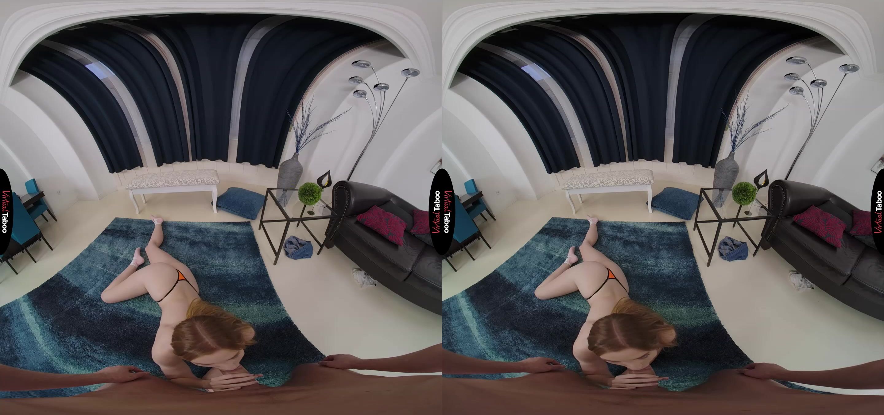 Scarlett Jones is bored and looking for something fun to do. Being stuck inside sucks so she hits up social media and stumbles upon a new viral T-Shirt challenge. In order to complete the challenge, she has to steal someone’s shirt and pose in it. Luckily, her stepbrother is hanging out watching her pose for pictures so she grabs his shirt and takes it off. She strips out of her own clothes and into your T-shirt and has you take some pictures for her. Scarlett makes you look away while she changes, but you can’t help yourself and peek at her hot young body. After a few pictures, she notices the bulge in your jeans. Scarlett is curious and you offer to show her just how much she turns you on. Nervous at first, she smiles when she sees how big he is. You suggest she try a new challenge. The stepbrother BJ challenge. Scarlett has always wanted to be like the beautiful models in the VR Porn scenes you watch. Now she has the camera pointed at her and puts your dick in her mouth, sucking it like a sexy VR pornstar. Her blowjob skills make you both horny enough to take it to the next level. You slide her panties aside and fills her pussy with meat. You fuck her deeper and harder than any of her boyfriends ever have. This is one challenge she is more than up to and Scarlett loves every throbbing inch. Wanting to give you a special treat for making her feel so good, she sucks your cock until your load explodes into her mouth. This sexy little stepsister is ready any time you want to fuck again.