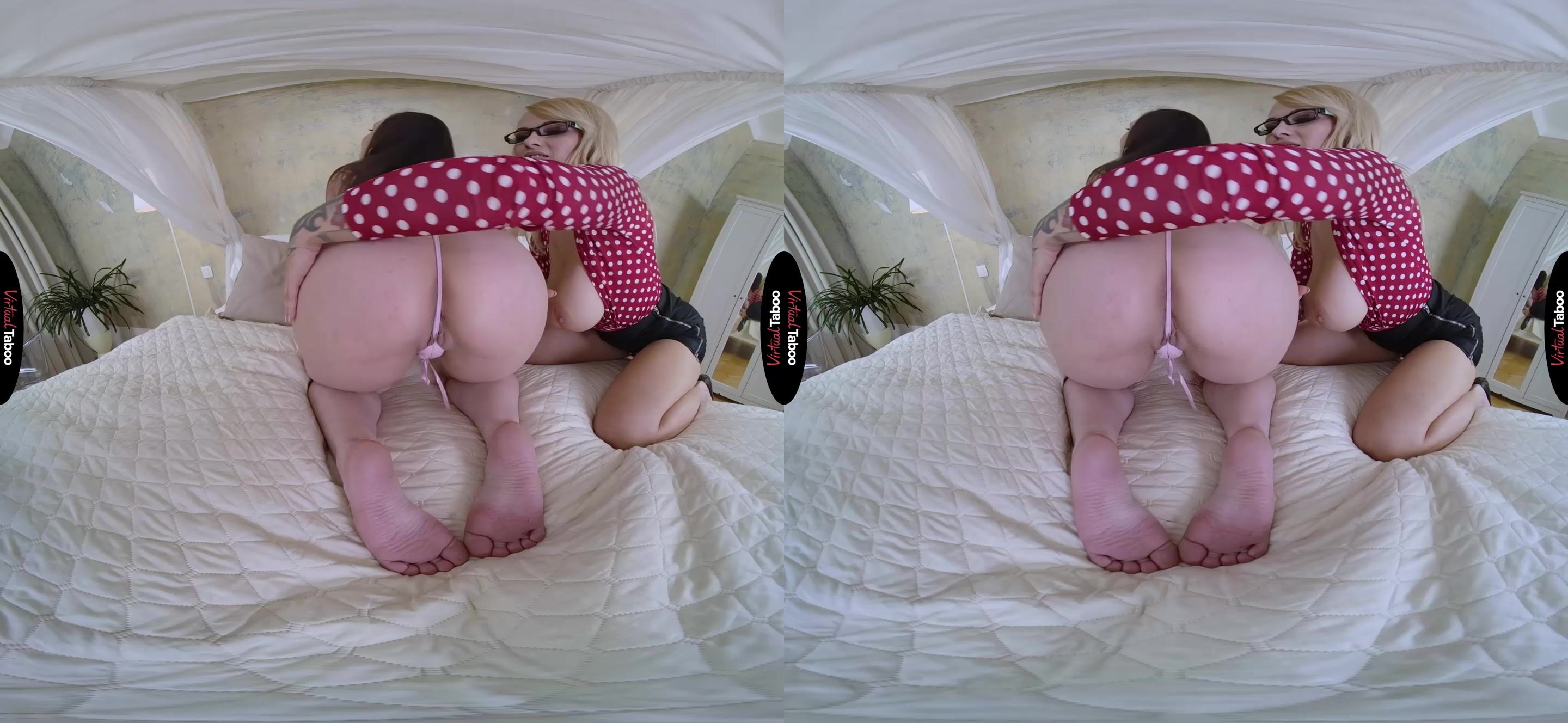 Private tutoring has worked wonders for Zeynep. While she was once struggling academically, she has made a complete turnaround since her parents hired Dominno to provide extra help. They are obviously pleased with the results, but what they don’t know is that Zeynep has developed a serious crush on her beautiful, mature tutor. She thinks about her all the time, including in the bathroom as she gets ready for her lesson. Her mind wanders as she rubs her body while fantasizing about her sexy teacher. Losing track of time, the busy teen is still half-naked when Dominno arrives. Seeing her student this way turns her on and she suggests that Zeynep stays naked during their session. In Today’s VR Porn scene, watch as the busty blonde takes out her big tits and play with them. Zeynep is overcome with a desire to touch them. Dominno is happy to let her pretty young student compare breasts as they play with each other. Taking the led, the mature blonde leads her curious young student through her first adult play. It turns Zeynep on to have her body exposed and probed by experienced fingers. She finds herself cumming very quickly, shuddering in Dominno’s arms as her pussy creams like never before. Guiding her hands to the right spots, the horny teacher has some important lessons for her eager student. Feeling Dominno’s experienced fingers working her pussy is more than Zeynep can handle and she soon climaxes repeatedly. Now it is her turn to take what she has learned and please the beautiful blonde. She is a much faster learner in bed than in the classroom and has Dominno moaning and creaming in no time. Their private lessons will continue, but from now on, they will all take place in bed and Zeynep is expected to only receive exemplary marks.