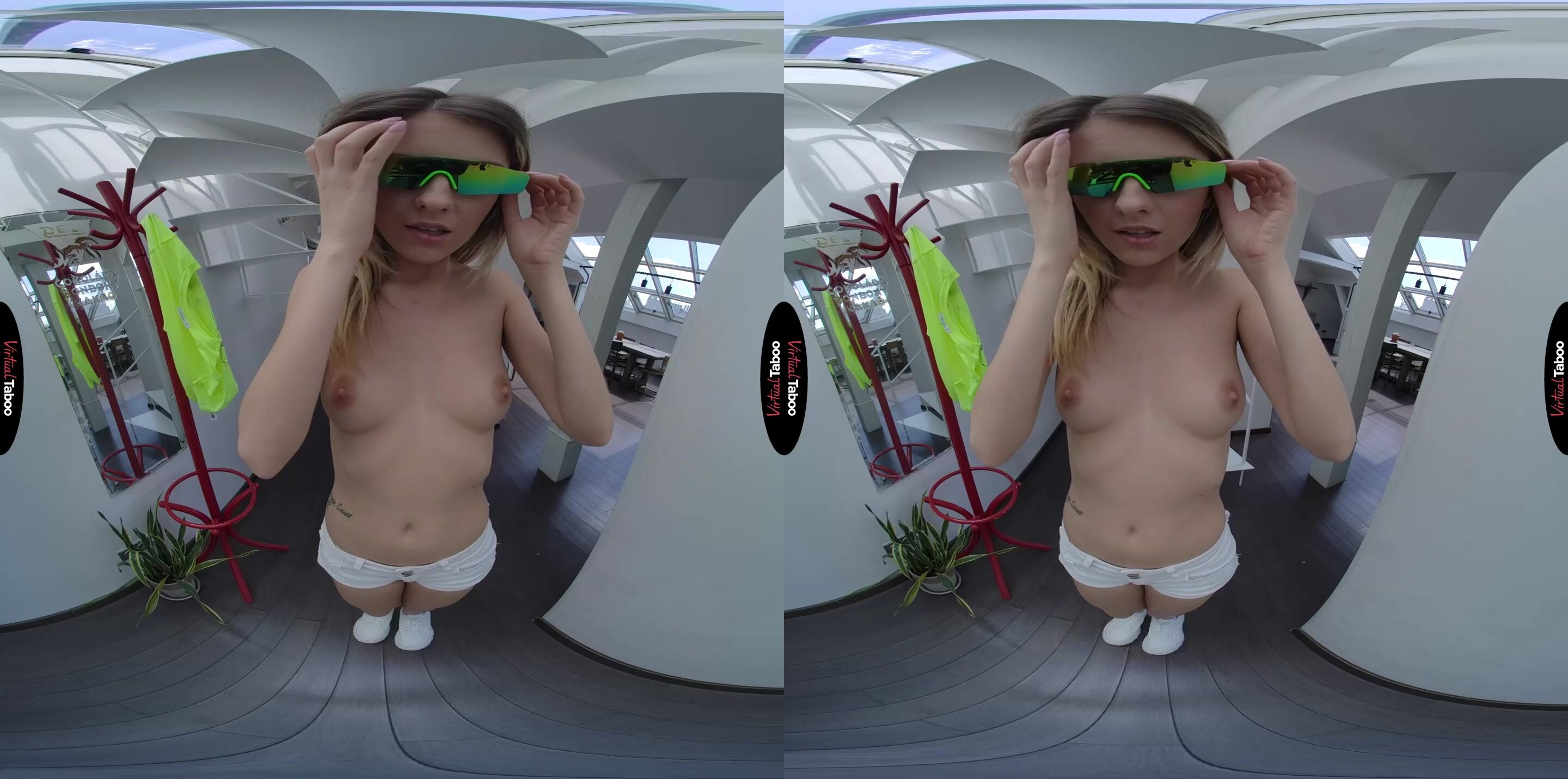 Things have been way too boring for hot coed Rebecca Volpetti since the lockdown. She can’t go out, can’t see her friends, can’t swipe right and get the dick she loves. It’s driving her crazy. The combination of boredom and sexual frustration has her mind racing and her body craving release. One morning after her mother has gone to work, she decides to have a little fun by seducing her stepfather. He is working from home so the two already spend all day alone together. Why not take things a little further and get her the attention and sex she craves? In this VR porn videos, she put on her tightest pair of shorts and a t-shirt that left her belly bare and stood at the door of your office until you noticed her. Once she had your attention, the pretty blonde girl lifted her shirt and watched you stare at her perky young titties. Watching you stare at her has Rebecca turned on and she just can’t keep her hands out of her shorts. She kicks them off just as you take out your cock and start to stroke it. It is big and hard just like in her fantasies. You stroke it, staring at her pussy and making her wetter by the second. Your strong hand pumps up and down on your thick shaft while she spreads her legs and slides her slender young fingers into her tender twat. She can see your body tensing, your desire growing. Closing her eyes, she feels herself going over the edge, climaxing on her fingers. She opens them just in time to see you shoot your load all over yourself. Smiling Rebecca heads upstairs. Tomorrow she is going to take it even further.