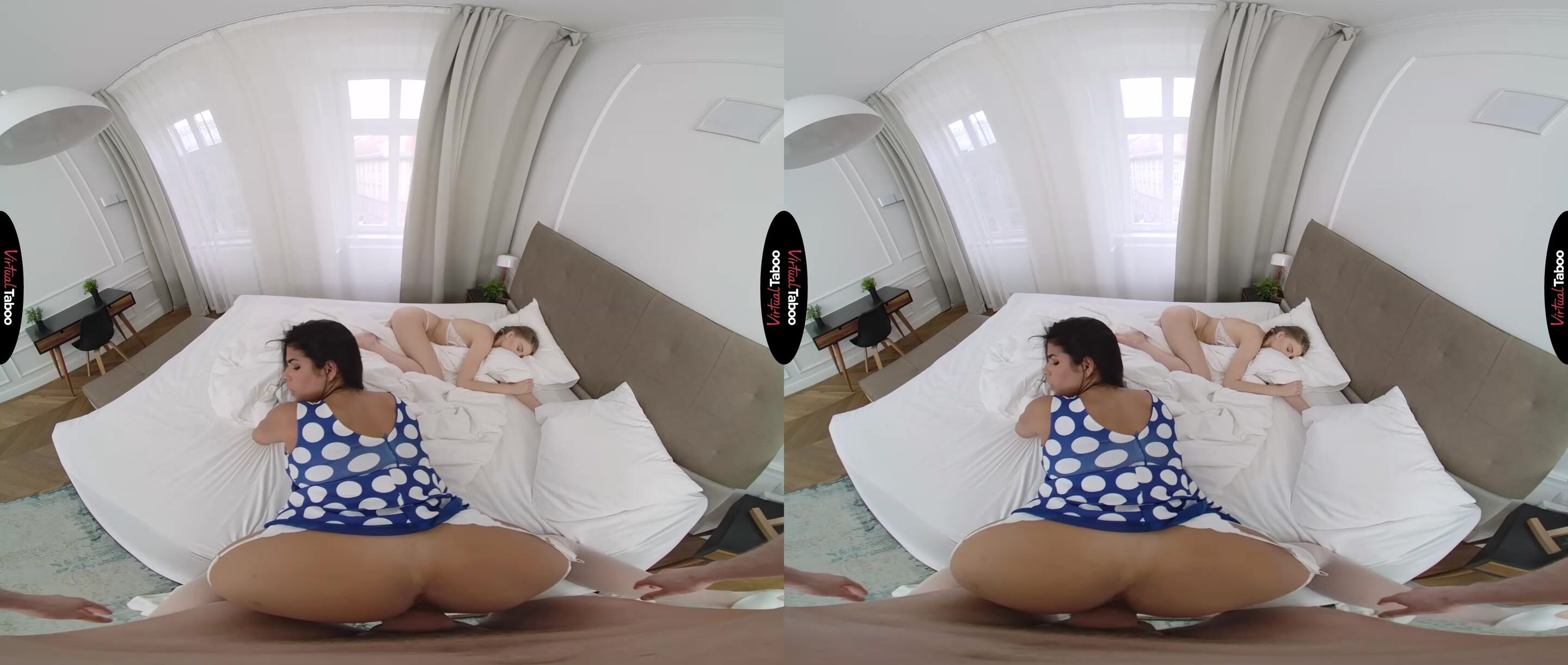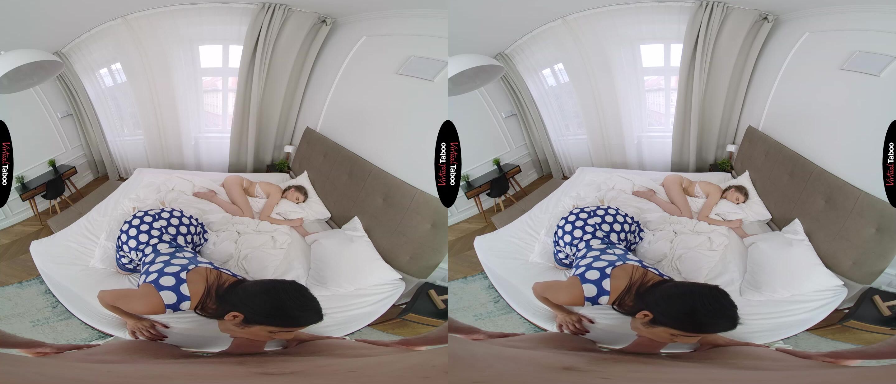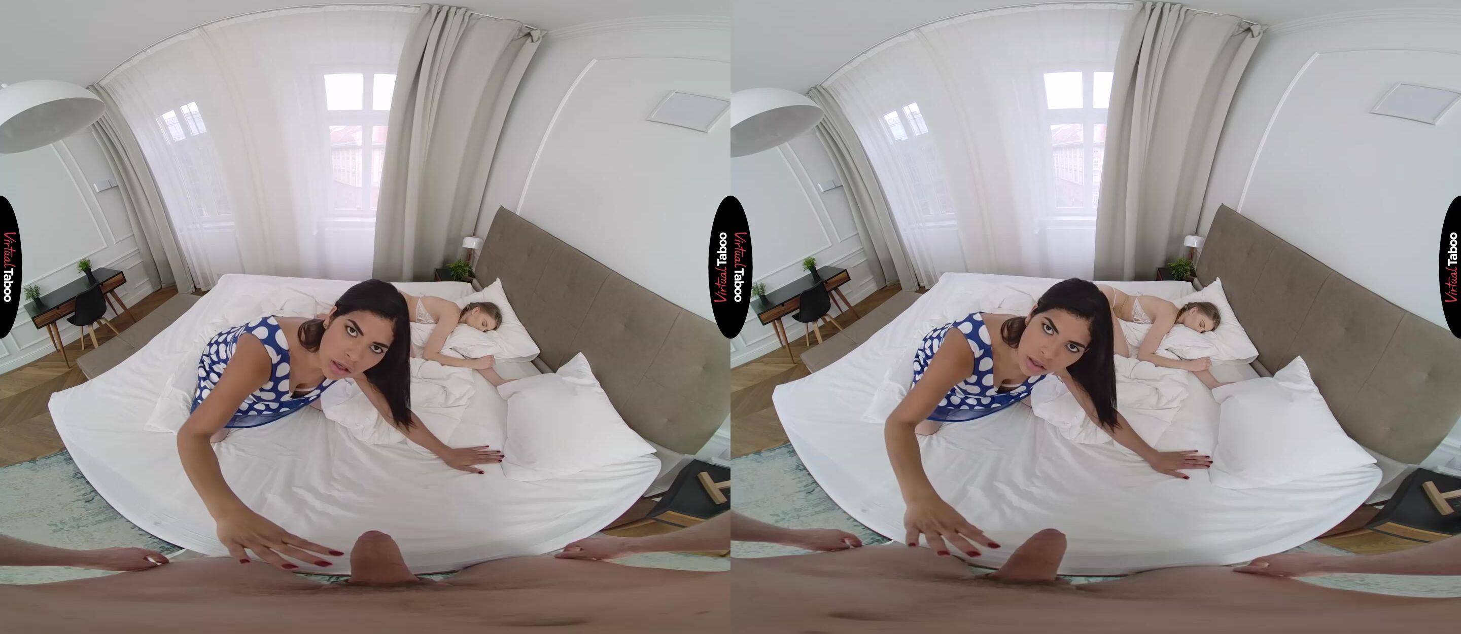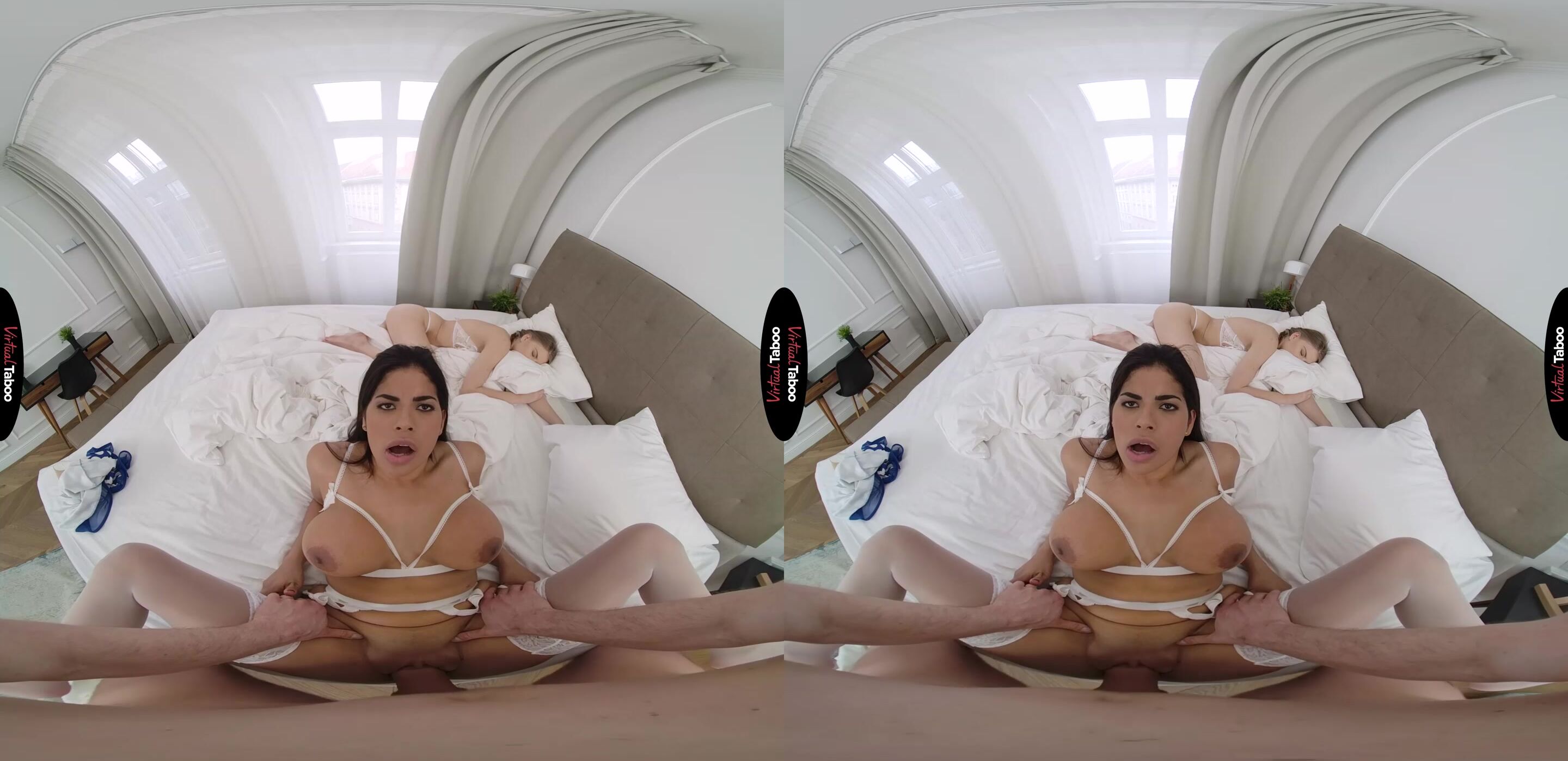 Sheila Orega has always had a high sex drive. When she married her husband, she knew that his sex drive did not match hers, but he was a good man and could afford to give her all the things she thought she wanted. After two years of marriage she has become frustrated with her husband’s lack of sex drive. She won’t cheat on him for fear of losing the lifestyle she has become accustomed to. That doesn’t mean it is always easy. Lately she has been uncontrollably horny and finds herself jealous when she peeks in and finds her stepson’s girlfriend sleeping in bed. Sheila can only assume her stepson fucked her silly the night before. While she is checking out the girl in bed, you get a good look at her big juicy ass and can’t help yourself. In this VR porn video, you reach out and grab her cheeks. She is shocked when she turns around and sees that your cock is out and hard. It is also huge and just the sort that drives Sheila wild. She knows it is wrong, but it has been so long since she has had any cock that she just can’t help herself. You love the way she sucks your cock and even with his girlfriend sleeping inches away you slip your long bone into her neglected hole. It is exactly the sort of fucking she has been missing and as she rides you to orgasm it is difficult for her to stay quiet. They manage to finish with Sheila eating a big load of your cum before you get caught. As she swallows every drop, she knows that she won’t be missing good dick any more. Not when she has such a good one right here at home.