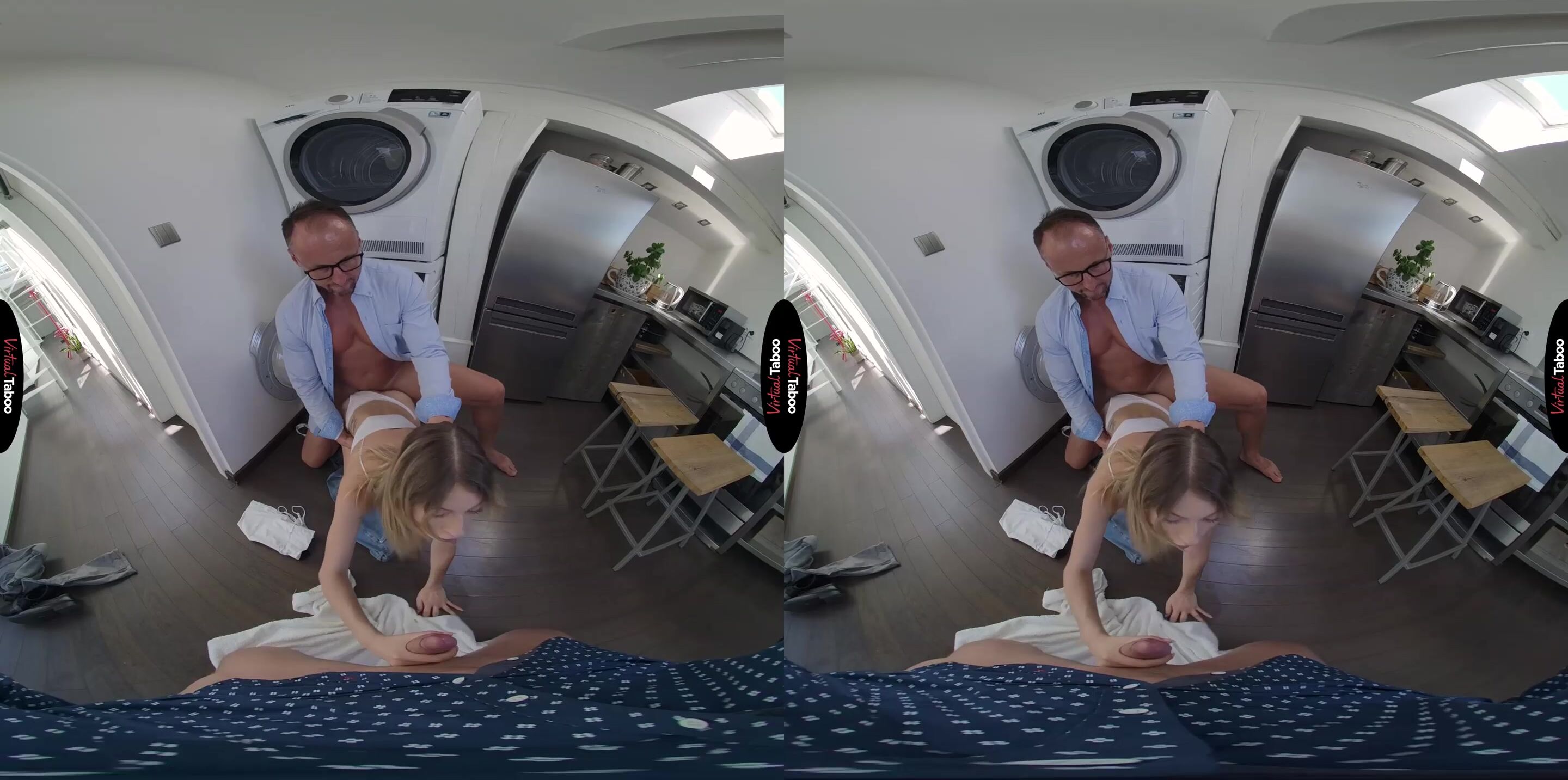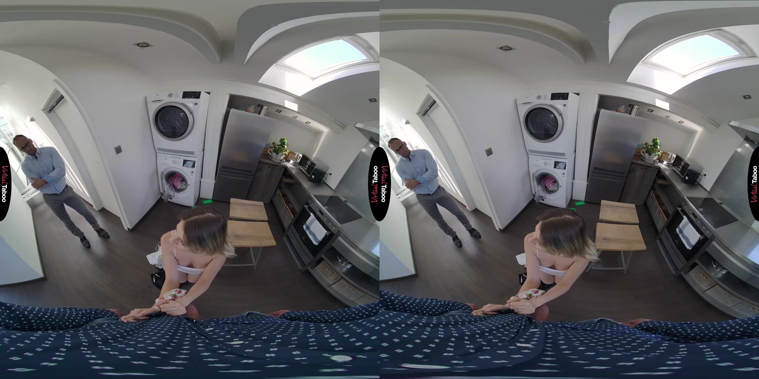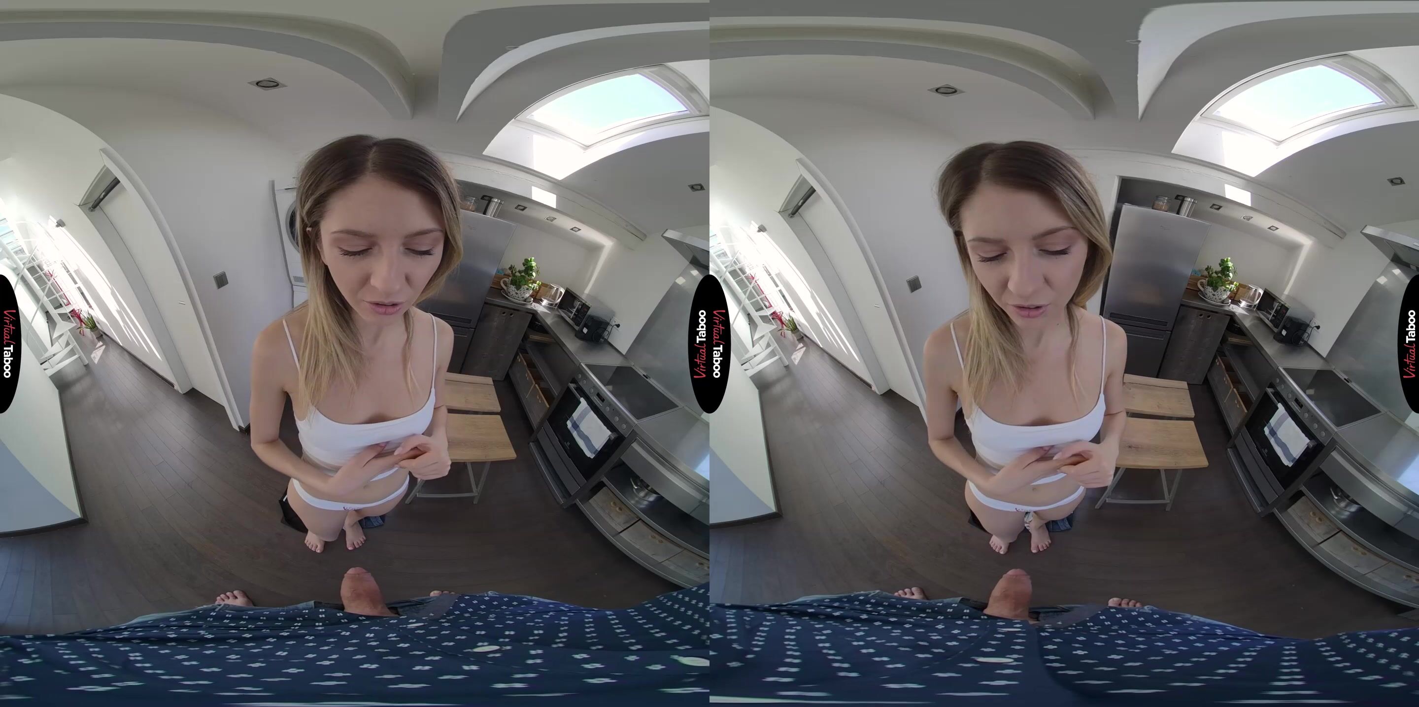 Rebecca Volpetti VR is home from college for break. It is odd being back, living with her mom and new stepdad. To make matters more complicated, his stepbrother is staying with them as well. One morning, Rebecca goes down to do her laundry. Believing she is alone in the house, she doesn’t bother putting on a robe. While she is bent over putting the clothes in the dryer, Rebecca can’t see you come in behind her. You stare at her ass, watching how her panties creep up between her cheeks. She looks just like the hot models you watch in VR Porn Scenes. You can’t help yourself and starts jerking off while looking at her ass. Rebeca turns around and is shocked at what she sees. Shocked, but also impressed. You are packing a fat cock that makes her mouth water. Thinking that they are alone in the house, she crawls over to you and starts sucking your dick. Her stepfather comes in and sees you face fucking his stepdaughter. Instead of being angry, he wants to sample her sweet mouth as well. With no hesitation, she takes his cock from his pants and sucks it while you slide in from behind. The horny guys spun her around, switching holes as they continued to fuck Rebecca at both ends. She felt like such a dirty slut fucking her mom’s new husband and you at the same time. She found herself wondering why she hadn’t tried two men at once before. They kept her busy bouncing on their dicks while her mouth was always full. Working hard, she earns two big loads of cock cream on her pretty face. Rebecca can’t wait for her mom to leave her home with her two favourite men again.