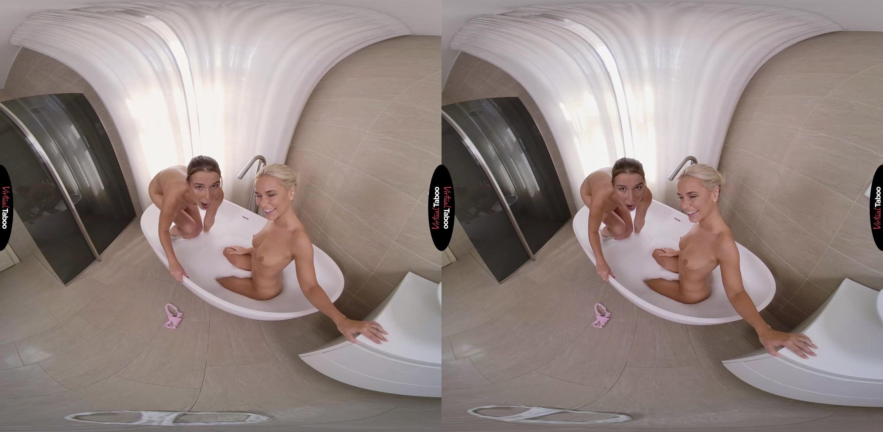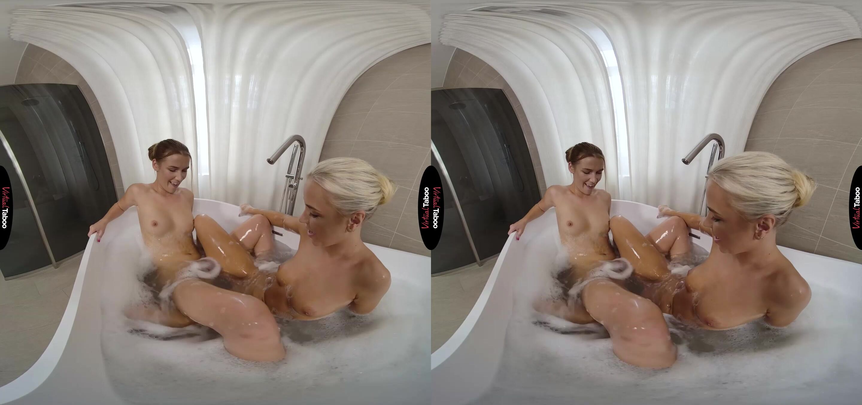 At first, you were happy when your wife found an exercise class that she enjoyed. It was a good chance for her to stay in shape and she seemed happy. Then she started going almost every night and never seemed to be around. Just about the time, you were starting to wonder if she had met a new guy and was seeing him on the side, she gave you a surprise. When you arrive at home you find that your wife has brought home a beautiful blonde from her class. She knows she has been neglecting you and has seen the VR Porn you have been trying to hide. Her friend smiles and begins to play with your wife’s tits through her bra. Sit back, relax and enjoy the special VR show these two hot blondes have planned for you. Both of their bodies are trim and toned from all that time in the gym. They strip and get into a bubble bath, playing with each other and teasing you. Go ahead, take out your cock, your wife has bragged about how big it is and her friend wants to see it. Now stroke it while they finger each other. You watch your wife eating her new friend and having her own pussy licked. It is such a turn on you can barely contain yourself. They are all warmed up and your cock is ready to go. What next? Your wife suggests you put that big cock to use on their horny pussies. Do you think you have earned more than a show?