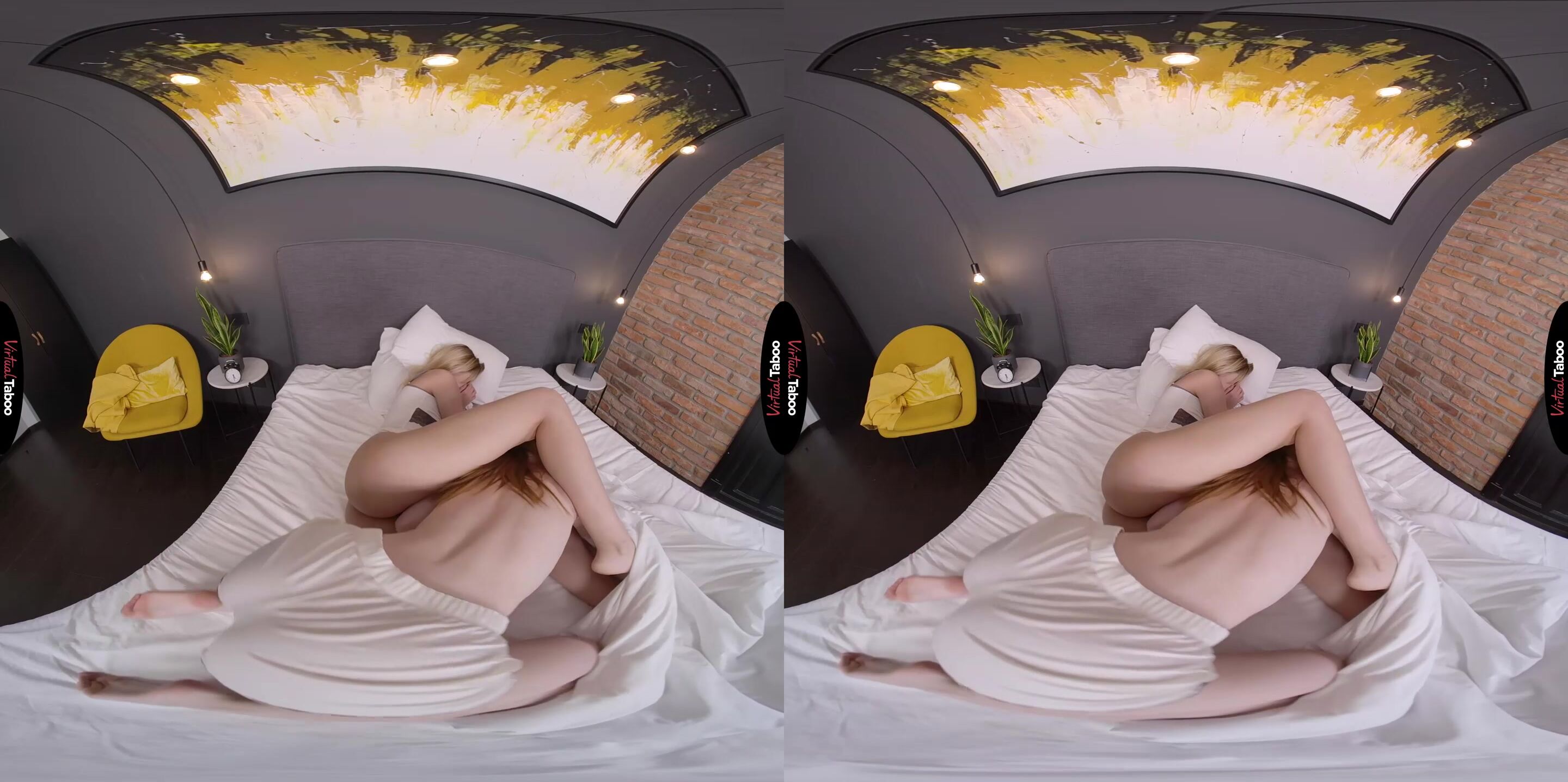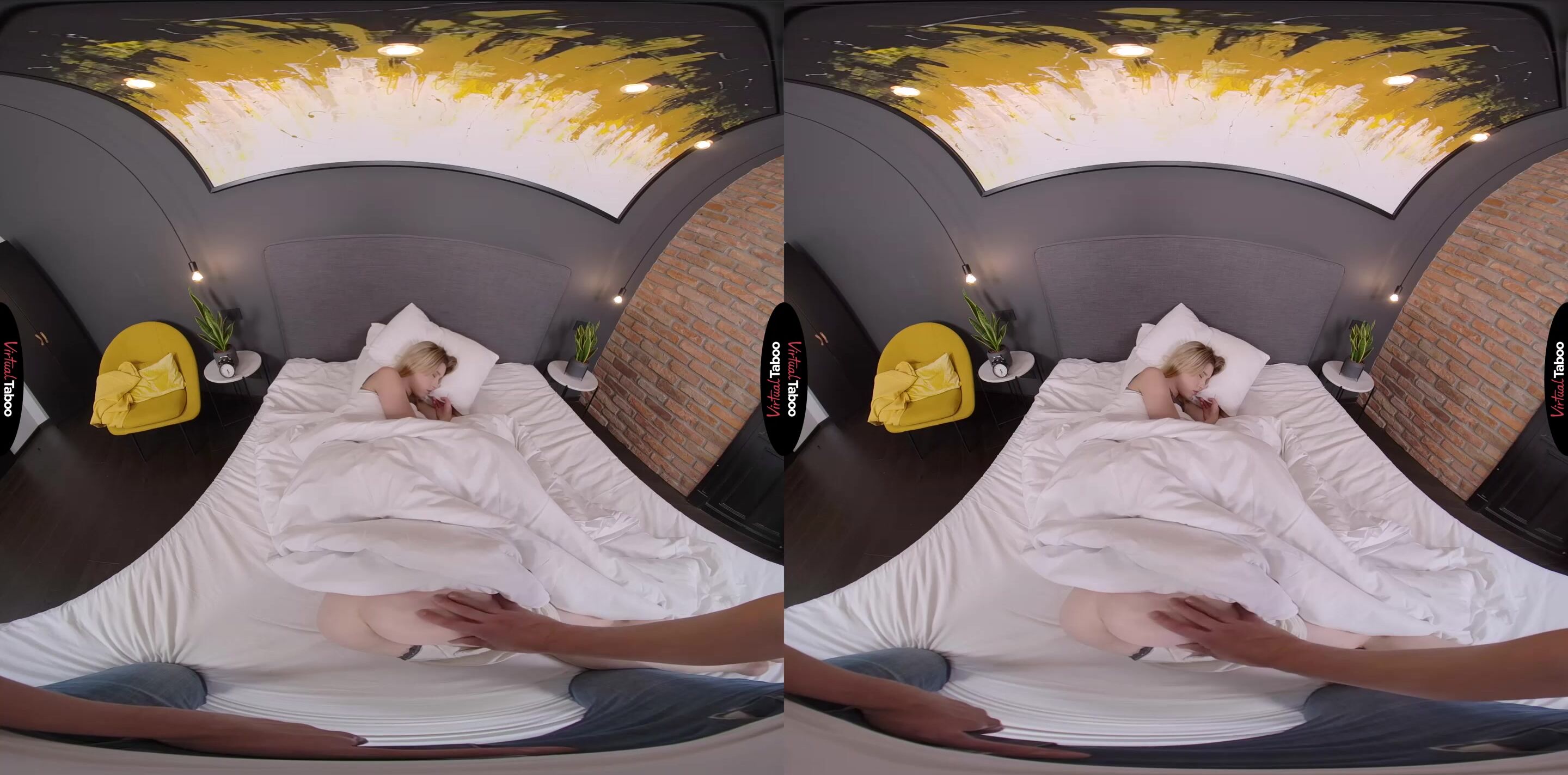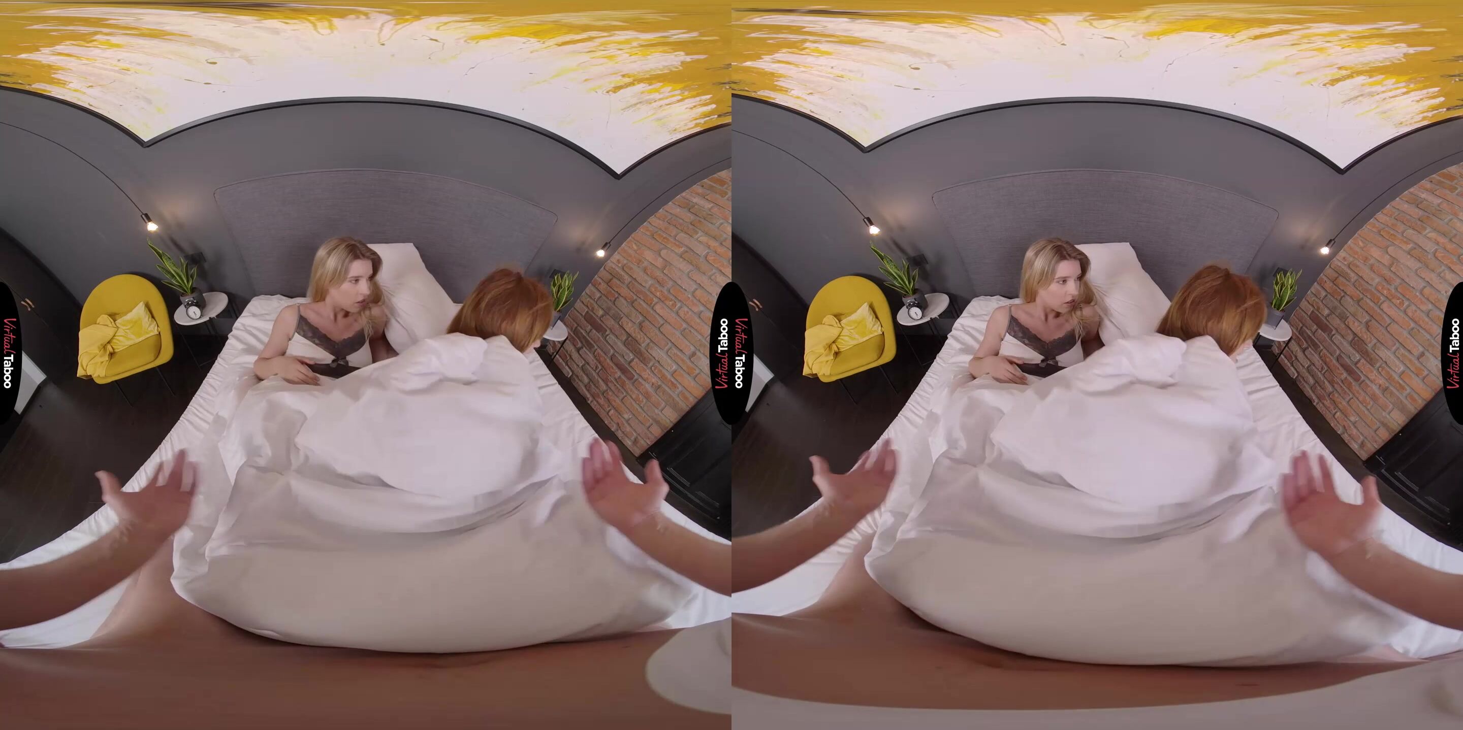 Lottie Mange has had her eyes on her stepbrother’s girlfriend Freya for some time. The mischievous redhead was waiting for the perfect time to make her move. One morning she passed her stepbrother’s room and found him gone. Freya was alone in the bed sleeping. It was too good a chance to pass up. At first, she just sat next to the bed and stared at Freya while she slept. This was even hotter than a VR Fantasy, but eventually, Lottie got bolder and pulled back the covers. Hearing her brother return home, she decided to live out one of her taboo fantasies and trick brother into fucking her. She slides under the blankets and sticks her ass out. He gets one look at that exposed flesh and just has to have some. Feeling his big cock slide into her tight pussy, Lottie lets out a moan that wakes Freya. Shocked and angry to find her boyfriend with his dick another woman, she tries to leave the room. Lottie grabs her and convinces her to stay, confessing her feelings for her friend and her desire to see her get fucked by her stepbrother’s big dick. The two adorable teens share his cock, passing it back and forth while he watches his own in-person VR Porn Fantasy. Freya takes to the plan quickly, enjoying the way Lottie’s tongue feels on her clit and having fun watching her boyfriend fuck his slutty step-sister. They take turns getting pounded by his big dick and then share his cream, kissing one another. Freya promises to share her boyfriend so long as Lottie promises to join them in bed for long threeway fuck sessions.
