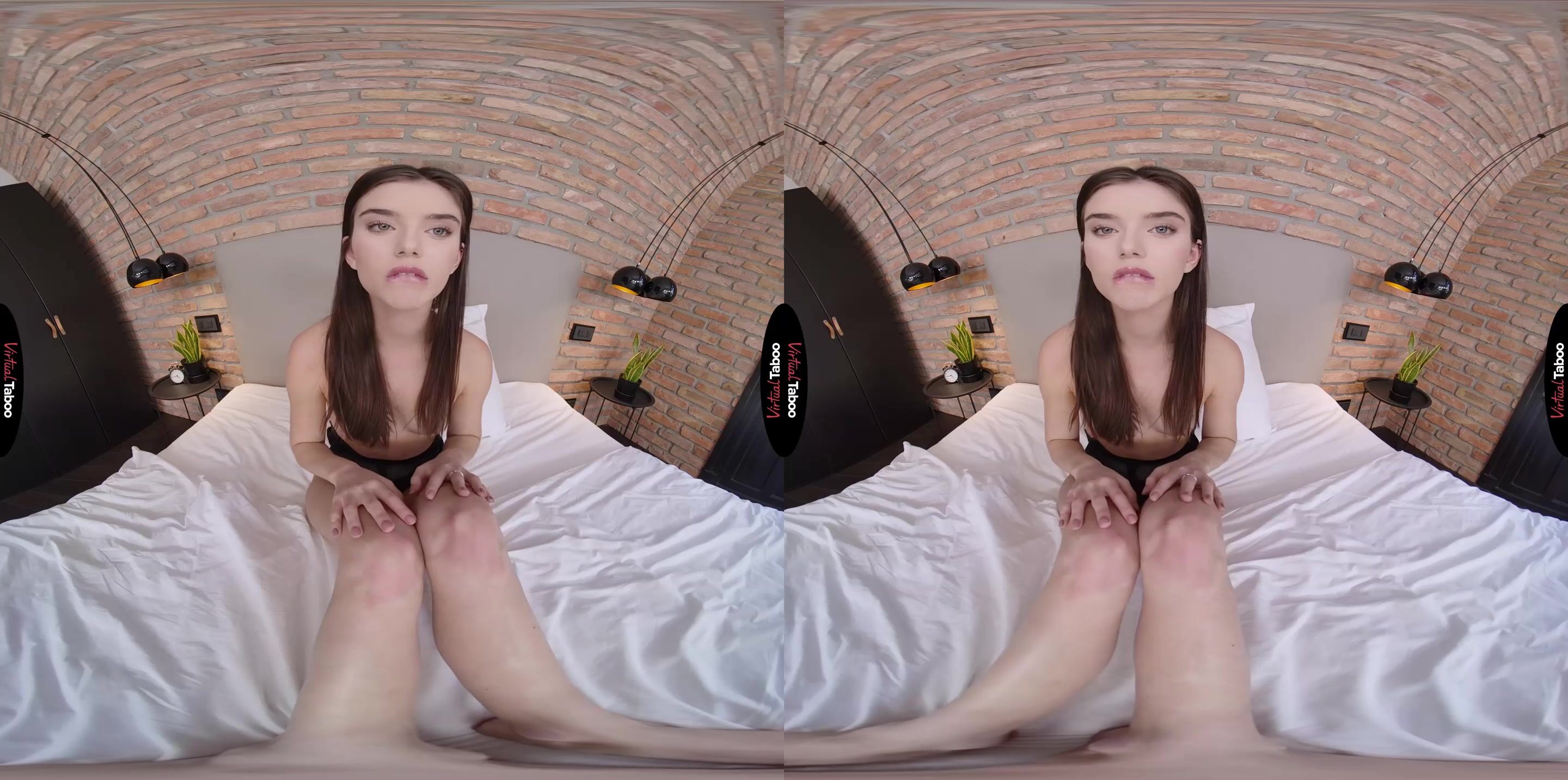 Living under quarantine has put a strain on everything. Living at home with your new wife and her daughter, Stefany has made things cramped. To make matters worse, your wife is hours away stuck on a business trip. Things have been rough on Stefany as well. Her boyfriend is away at college and you sometimes hear them having virtual sex over webcam. Usually, you are quite content to stay in your room with your VR Headset on watching hot porn. As much as you missed your wife, that was enough to keep you out of trouble. Until one day when you walk by Stefany’s room and find her on her bed in a black fishnet body stocking. You turn away, but she invites you in, showing off the garment that leaves nothing to the imagination. She wants your opinion on the outfit. Do you think her boyfriend will like it when they have their next video chat? Is it sexy? Is it as sexy as the girls in the taboo VR scenes you jerk off to? You know you should leave, but she keeps exposing a little more of her body until she is completely naked. You can’t take your eyes off of her perky little tits and her firm ass. She tells you that she is lonely without her boyfriend and knows that you are horny without your wife. This is perfect, your hard cock, her tight wet pussy and no one needs to know. Stefany promises not to tell anyone. Just slip your cock into her and fuck her hard. It will be your secret. Can you give your horny stepdaughter the fucking she needs?