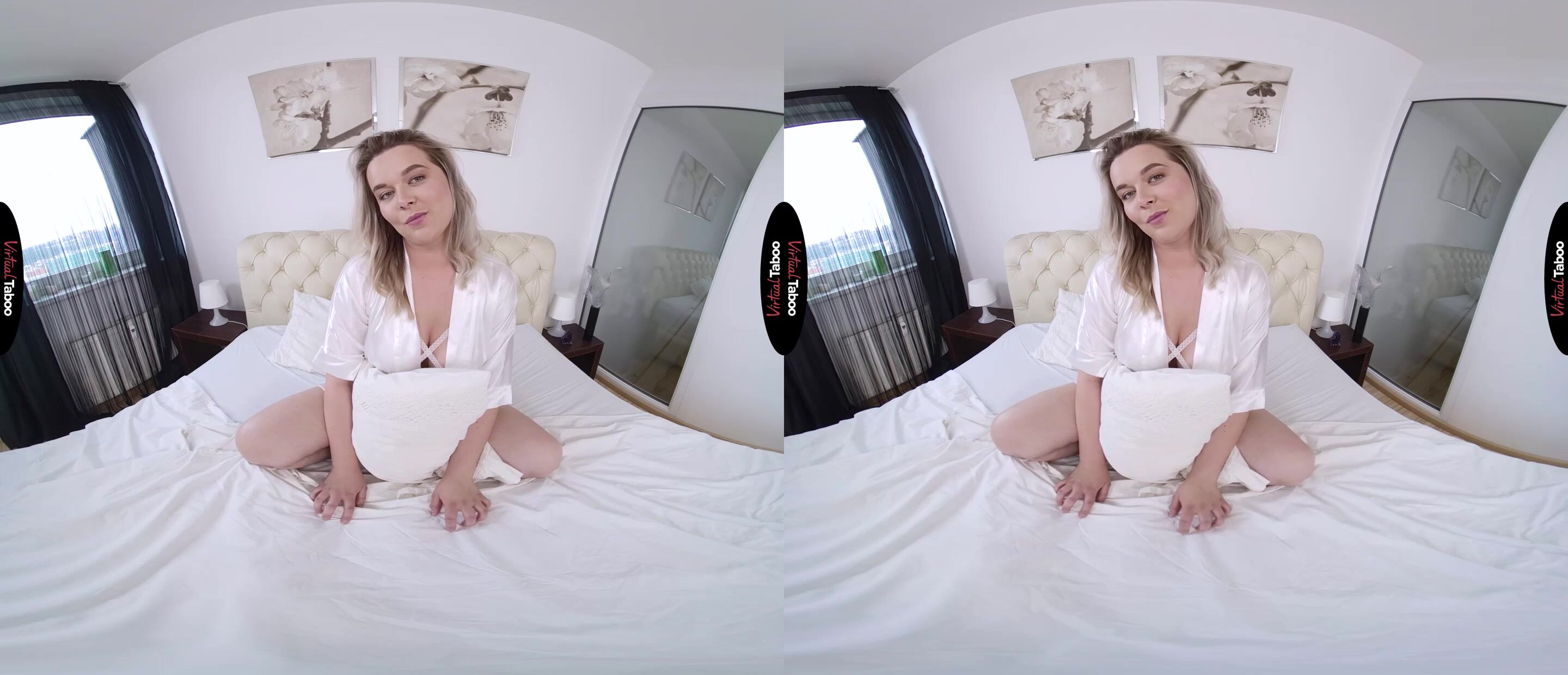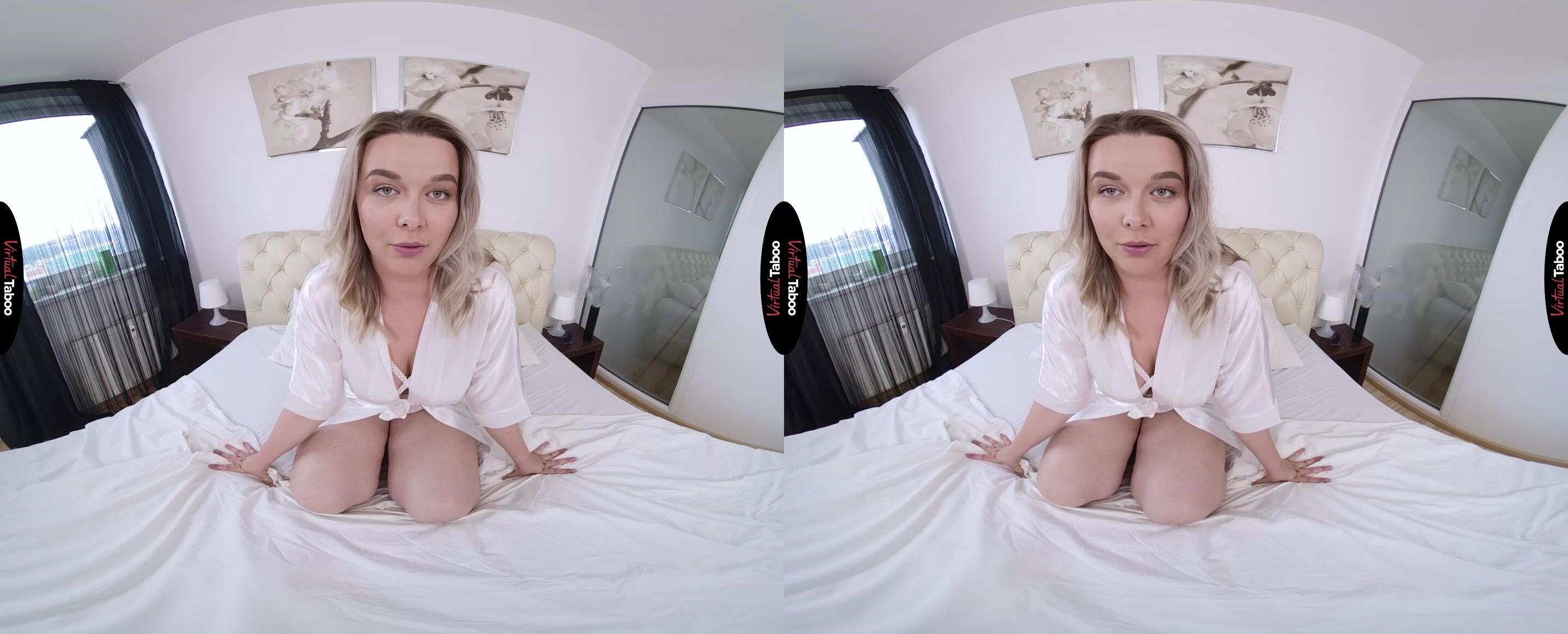 In this latest VR Porn Scene, Nikky Dream finds herself lost in naughty fantasies about her much older, married boss. Grab your VR Headset and enjoy the sexy fun the blonde VR Porn Star shows you just how dirty her mind can be. Nikky comes home from a day at the office. It is her first job out of college and her boss is a handsome married man who she can't get out of her mind. Watch through your VR goggles as she climbs into bed and fantasizes about him. She can picture his lusty stares when she bends over to show her big tits and creates her own VR Porn Movie in her mind. Nikky can almost feel his hands running over her body, sliding under her skirt and rubbing her wet pussy. She knows it would be unprofessional, but in this Virtual Reality Porn fantasy, she can do anything she wants to him. She imagines getting on her knees to taste her boss' cock, making it grow big and hard so he can fuck her. Thanks to this hot VR Porn Scene and with the help of your VR Headset you can get an up-close look at just how wet her dirty thoughts make her. Watch all of the hot and horny action in High Definition Virtual Reality for the best angles and the most realistic experience VR Porn Movies don't get any hotter than this.