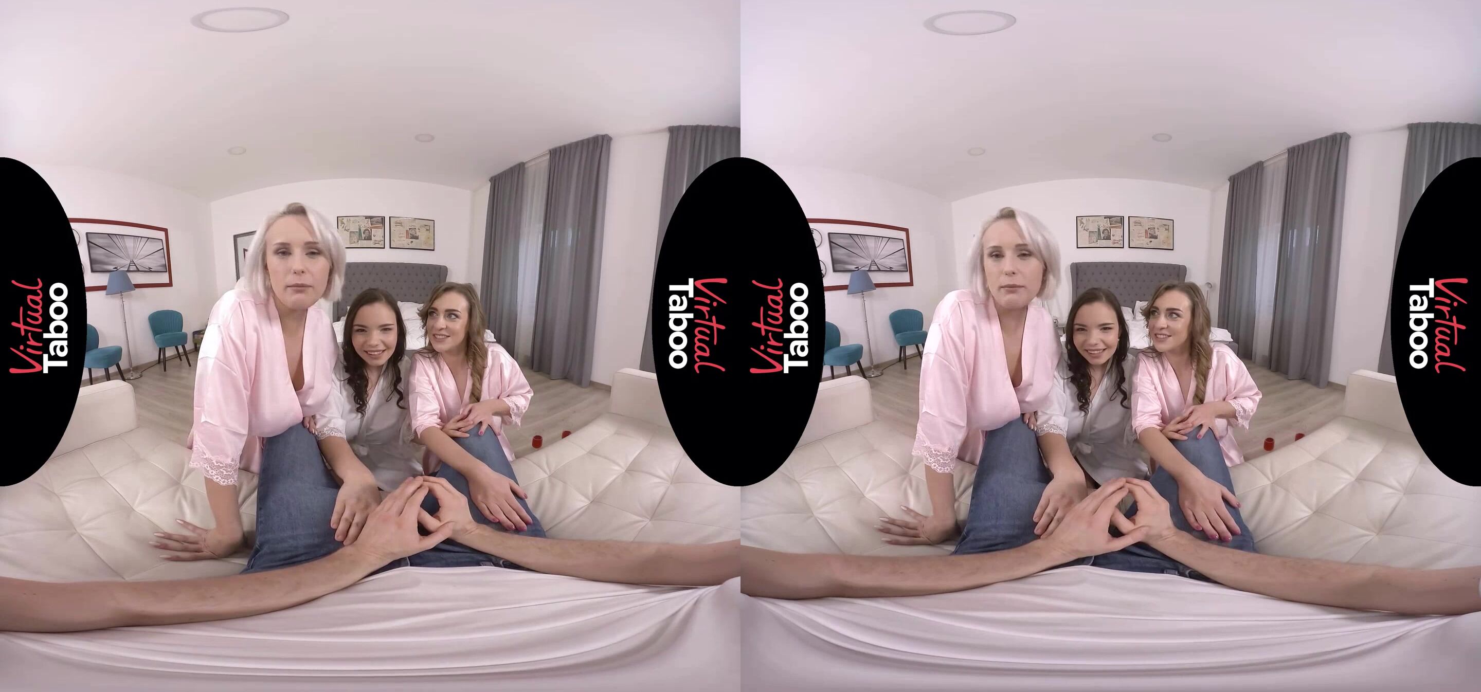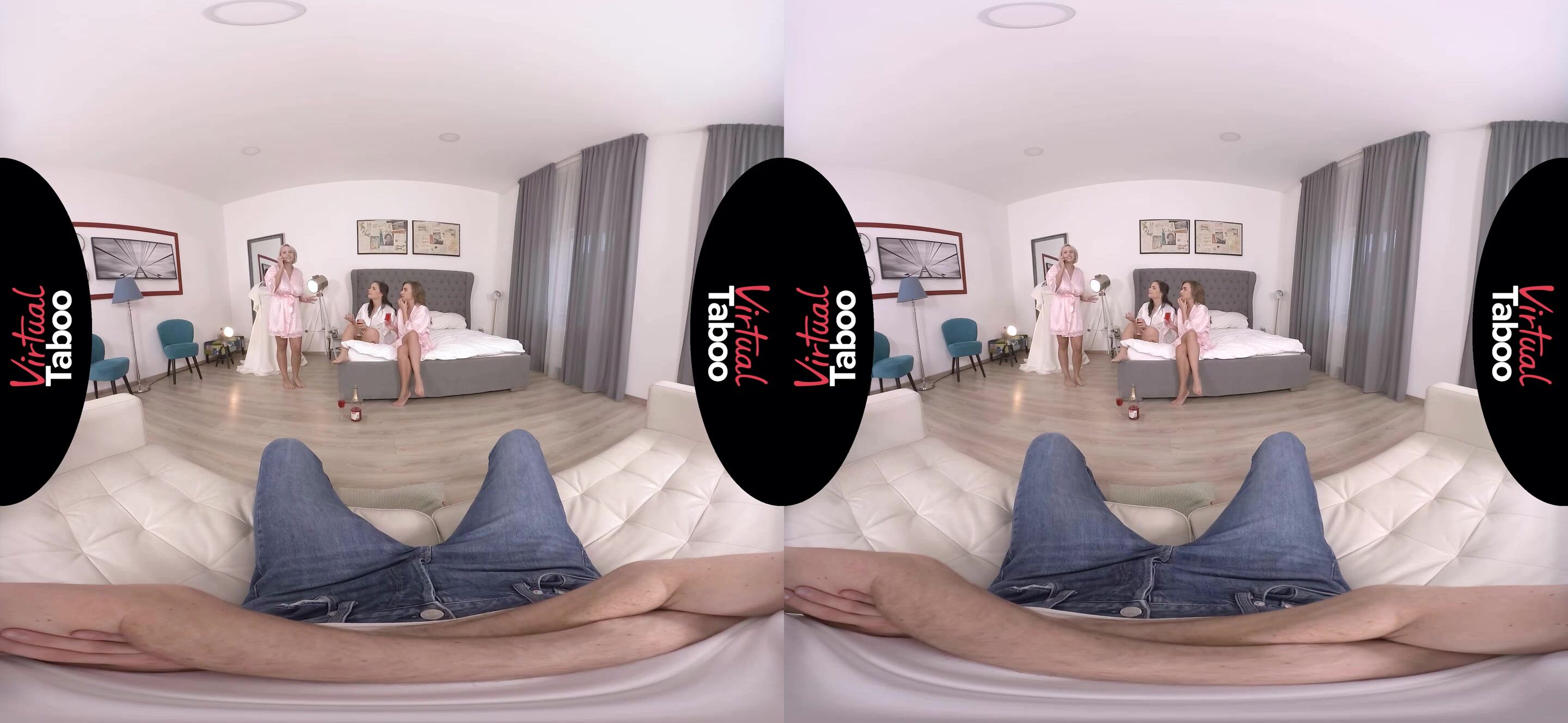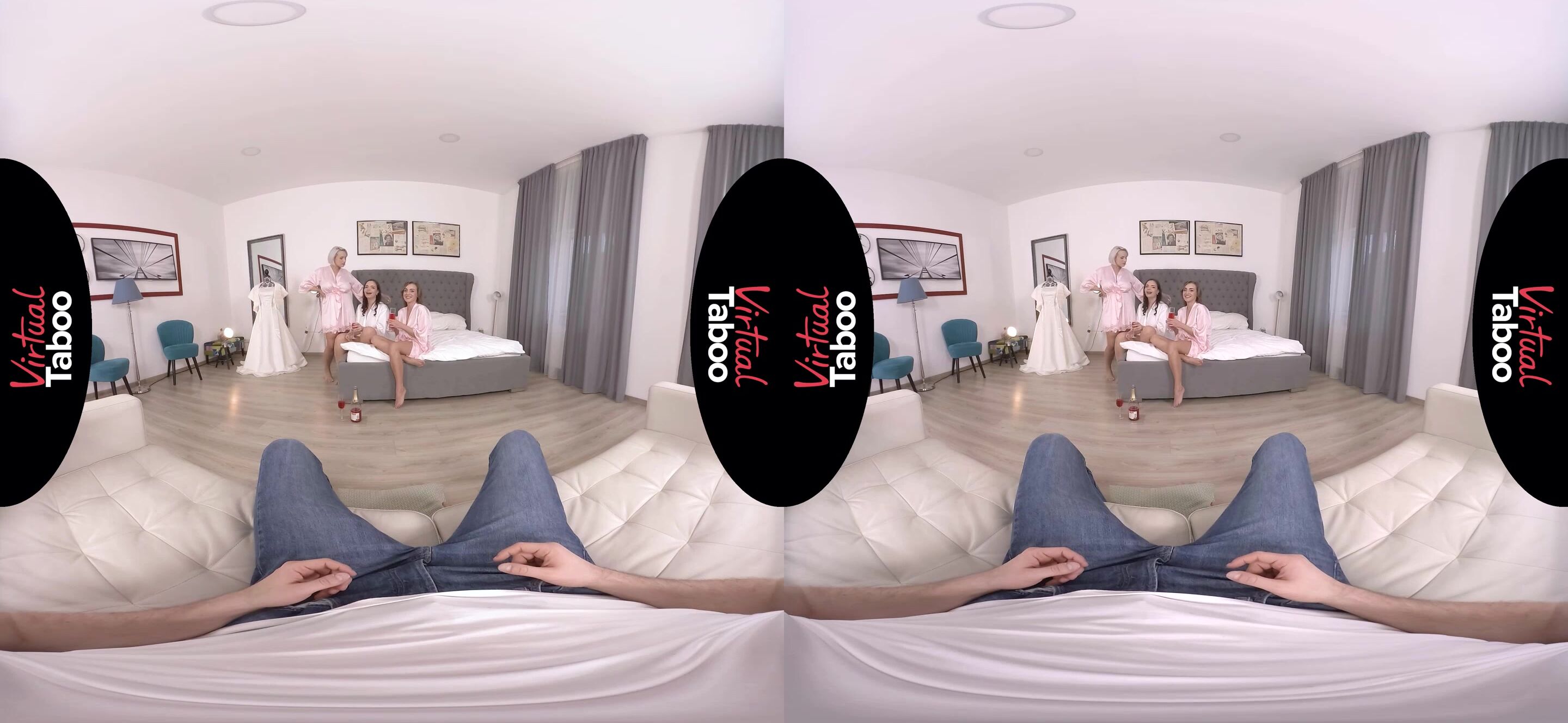 It is the night bеfore Sofia Lee's wedding and her favoritе Aunt wants to help her celebratе her last night of freedom in style. She invites hеr friend Josephine over to share the fun. The older women give Sofia a sexy silk white "bride" robe to wear and have pink ones to match. They play music and pour wine to get Sofia nice and relaxed for her big surprise. Angel has ordered a hunky stripper to send Sofia off into married life with a bang. The plans run into a snag however, when the stripper does not show up. Drunk and horny from dancing around in their robes, Angel and Josephine are desperate to find a substitute. There is only one solution, to have Sofia's stepbrother fill in for the stripper. Sofia has just enough wine to go along with aunt and her horny friend. He is happy to go along with the plan, but Aunt Angel wants to see if he has the right equipment for the job. They are shocked to see that he has a big, thick cock that is already hard for them. Sofia wraps her soft, warm tits around brother's dick and rubs up and down. Josephine and Angel help the bride to be into the bed where she takes his fat cock in her pussy from behind. It is the biggest she has ever felt and he makes her cum in record time. He gives slutty Aunt and her friend a turn and the experienced women ride that young dick like they never want him to stop. Sofia recovers in time to jerk brother off over all six huge tits. She may be getting married in the morning, but now that she has tried his cock, Sofia plans to fuck brother as often as possible.